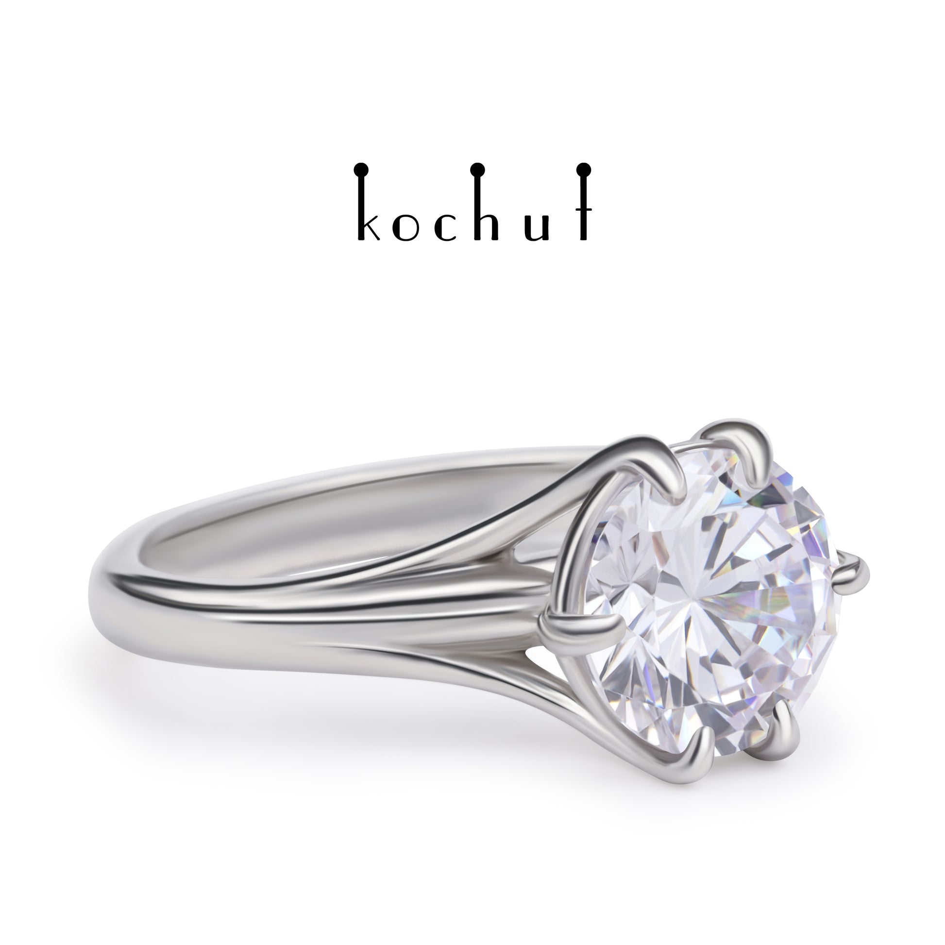 Melian — Verlobungsring aus Weißgold mit einem Diamanten, rhodiniert mit Weißrhythm.