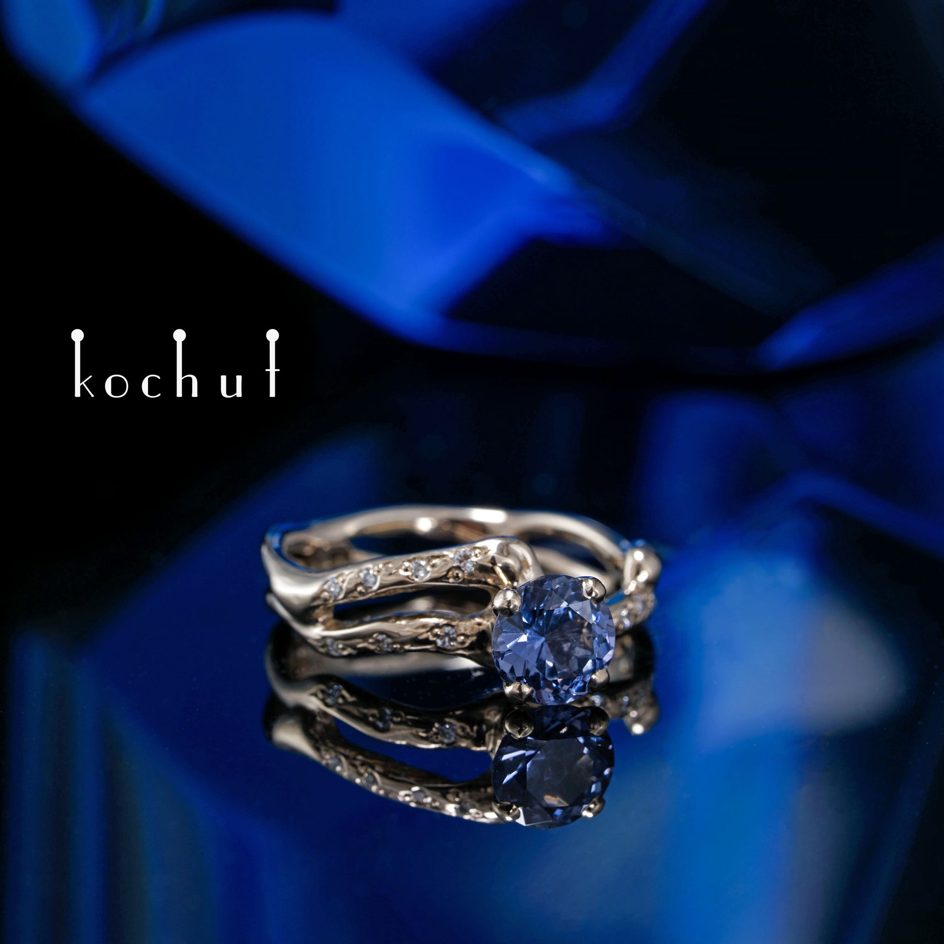 Mermaid — Verlobungsring aus Palladium-Gold mit Spinell und Diamanten