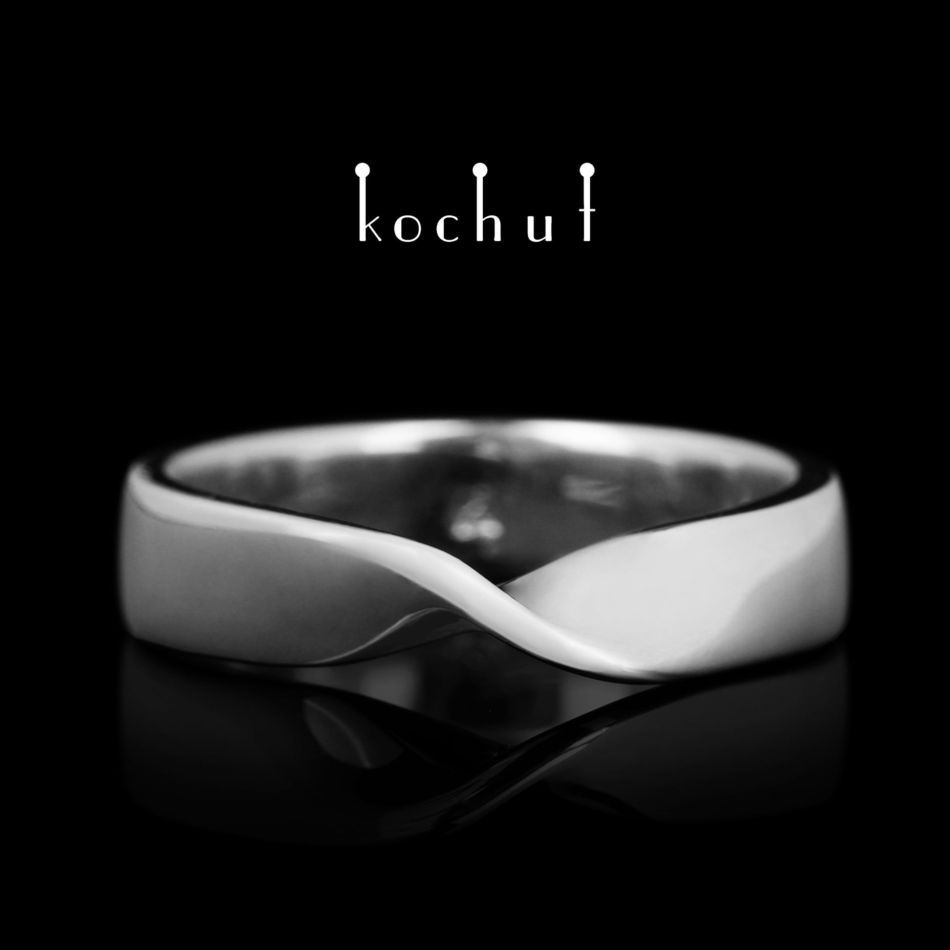 Mobius-Band: breit — Ehering aus Silber, beschichtet mit weißem Rhodium