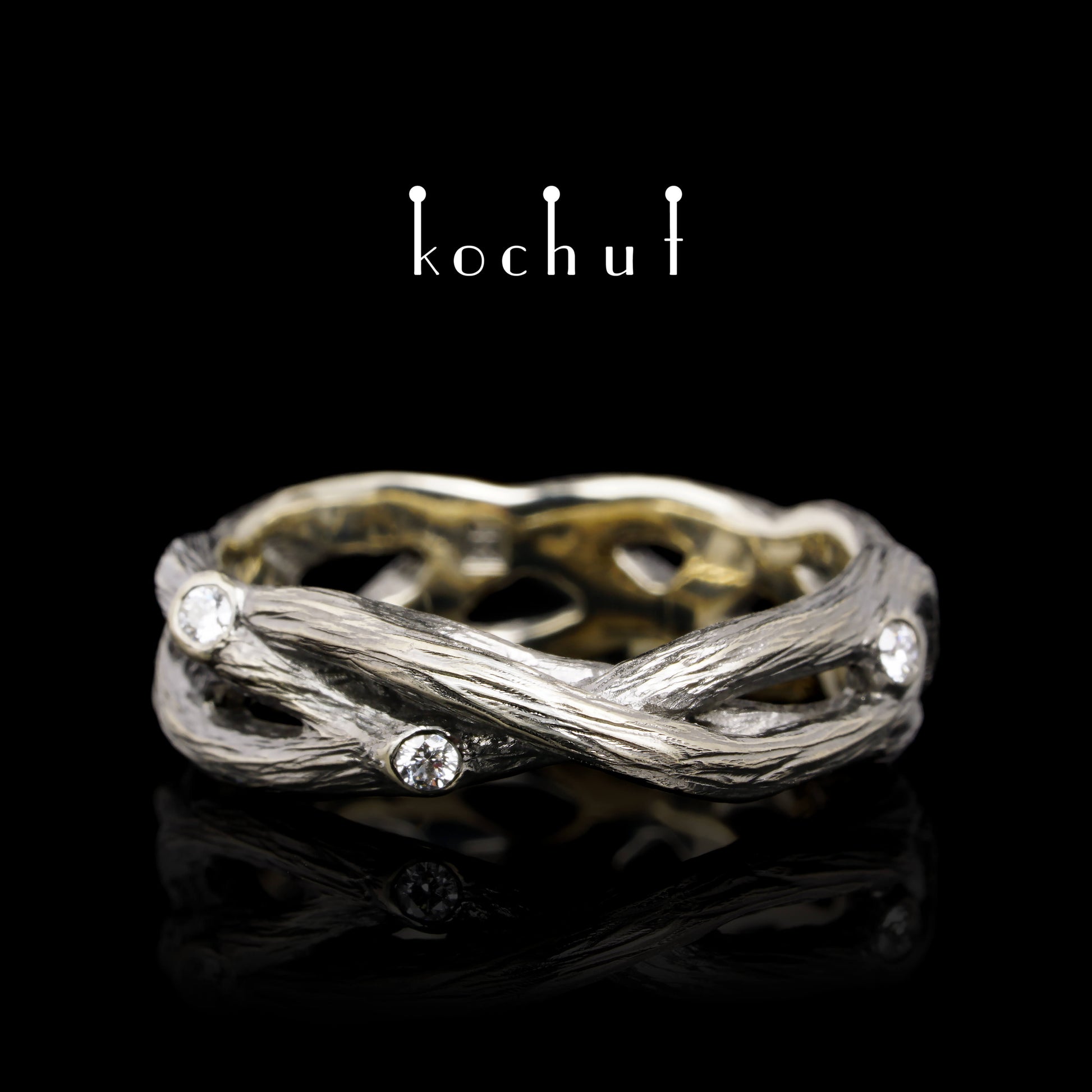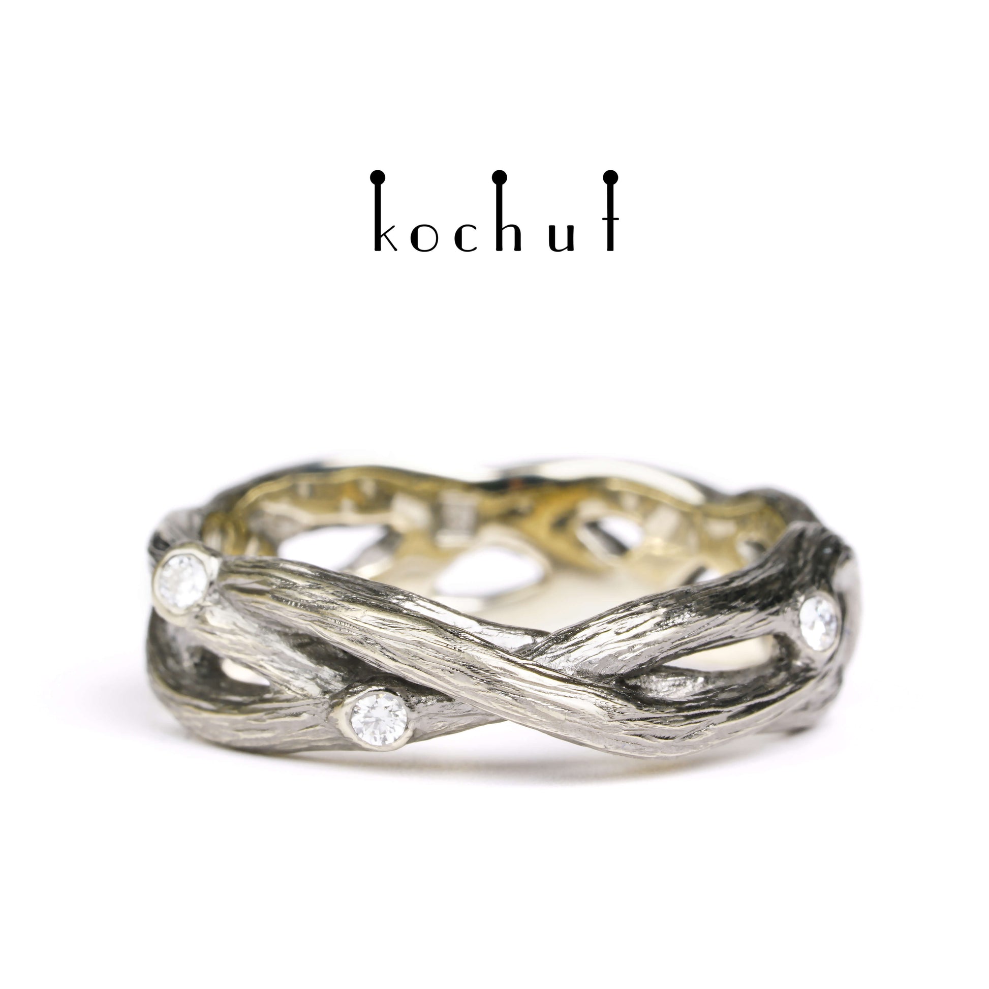 Mobius Forest Ribbon — Ehering aus Weißgold mit Diamanten, überzogen mit schwarzem Rhodium