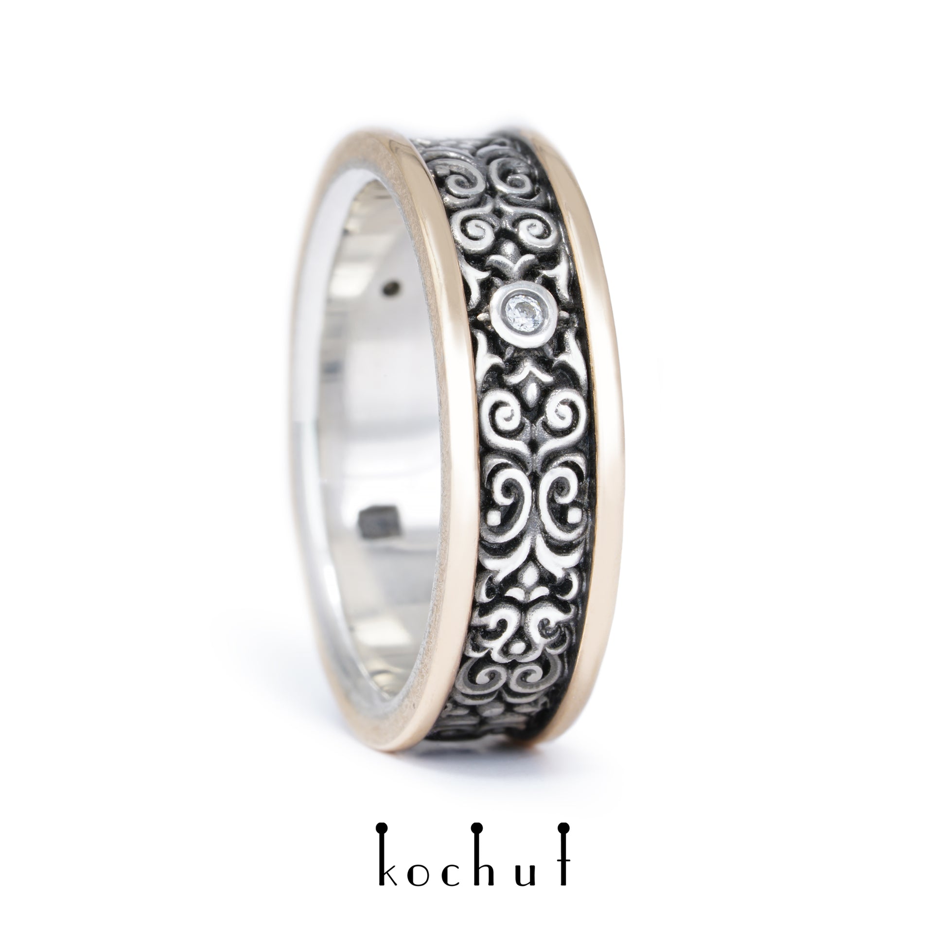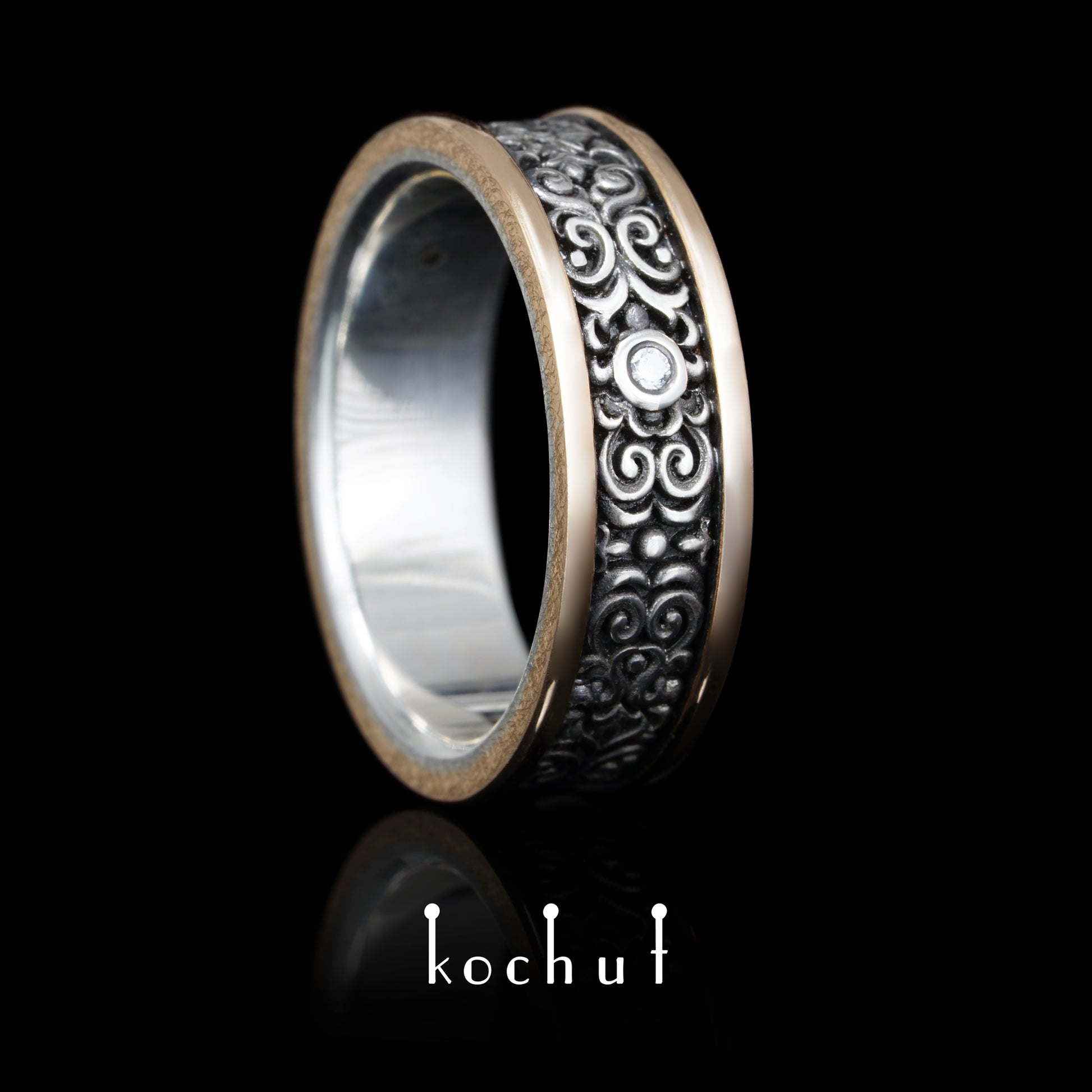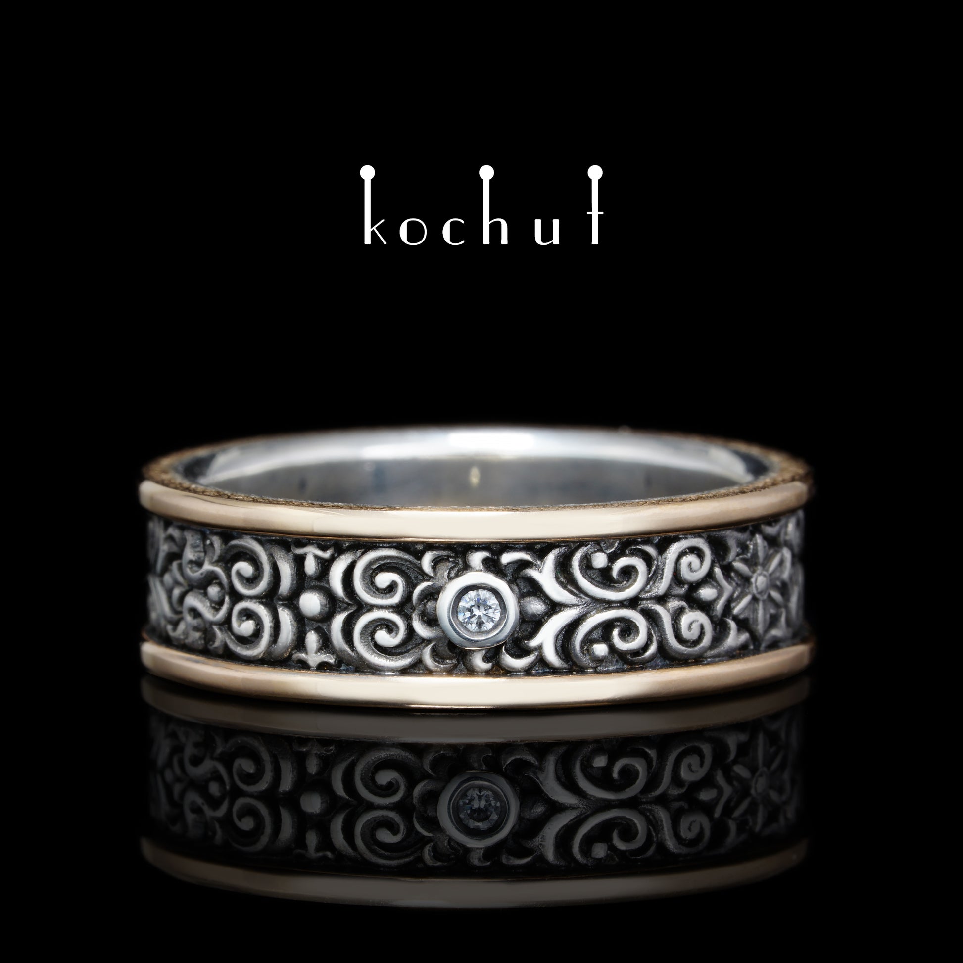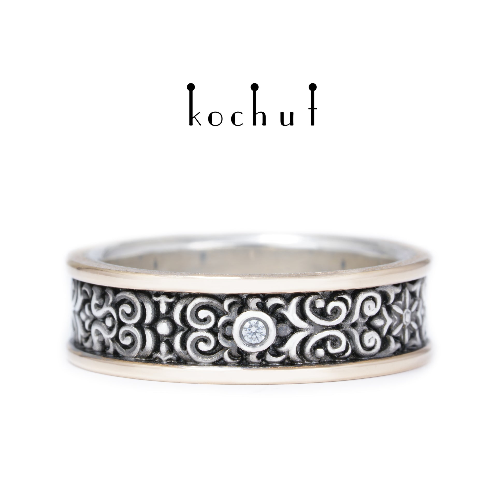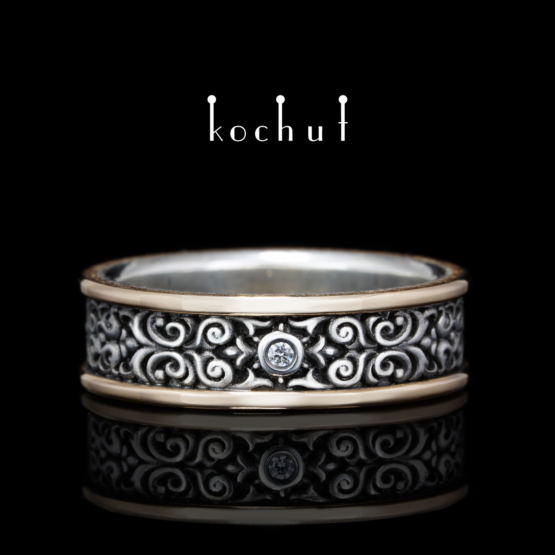 Notre Dame — Ehering aus Silber und Rotgold mit Diamanten, überzogen mit schwarzem Rhodium