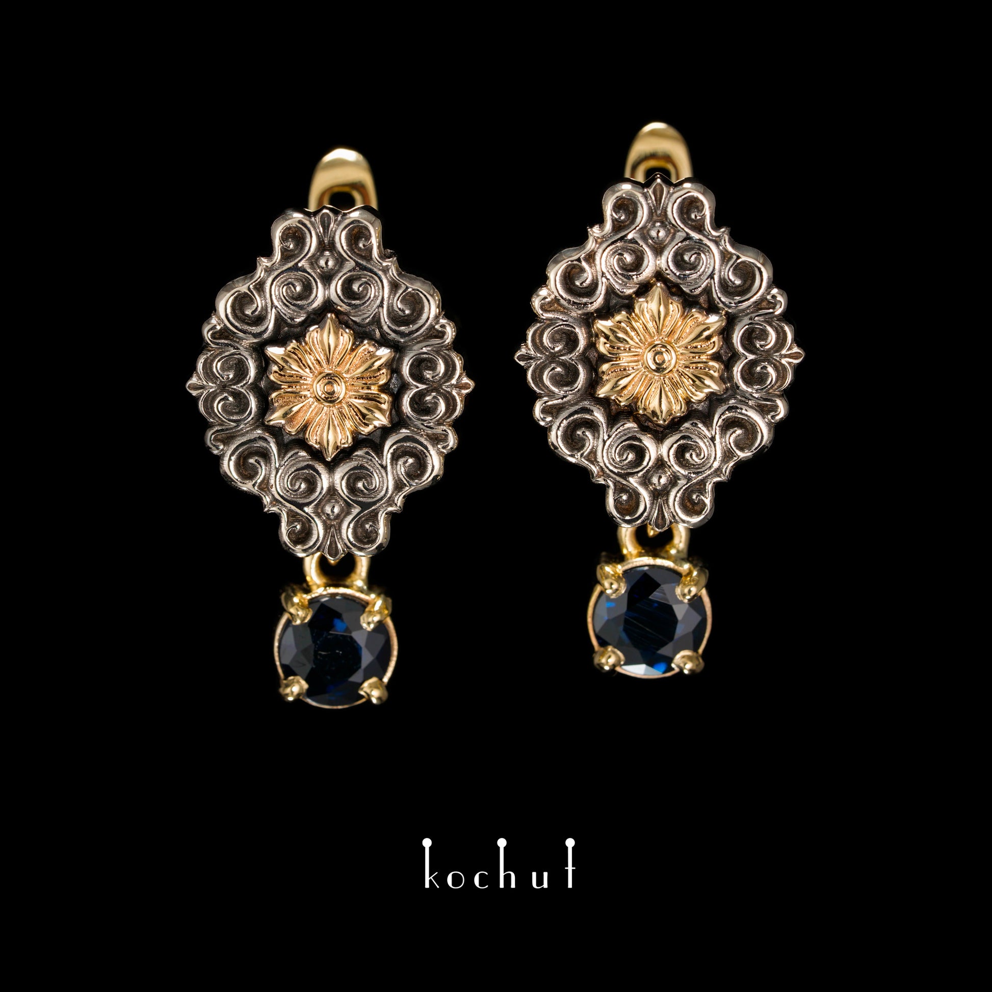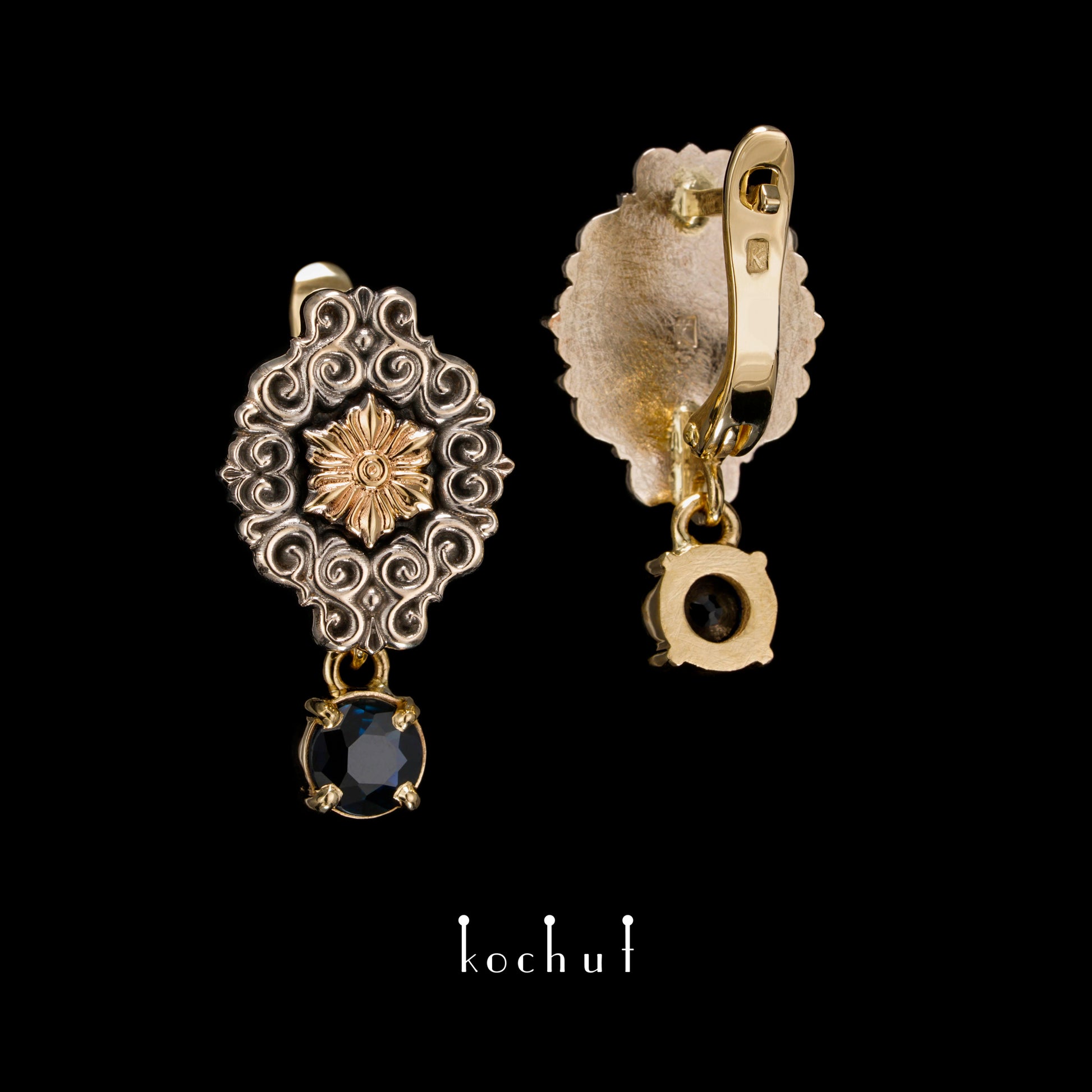 Notre-Dame — Ohrringe aus Weiß- und Gelbgold mit Saphiren, bedeckt mit schwarzem Rhodium