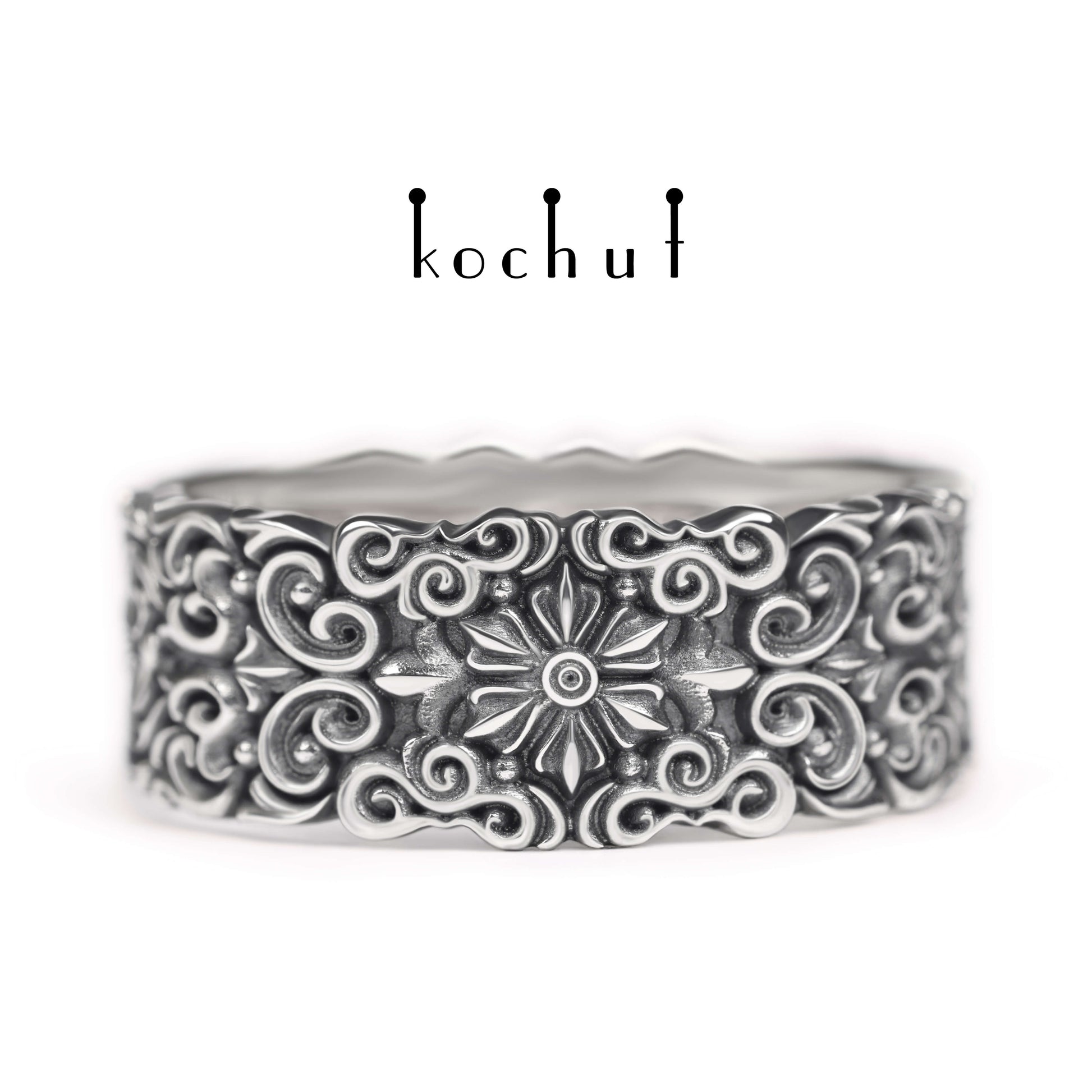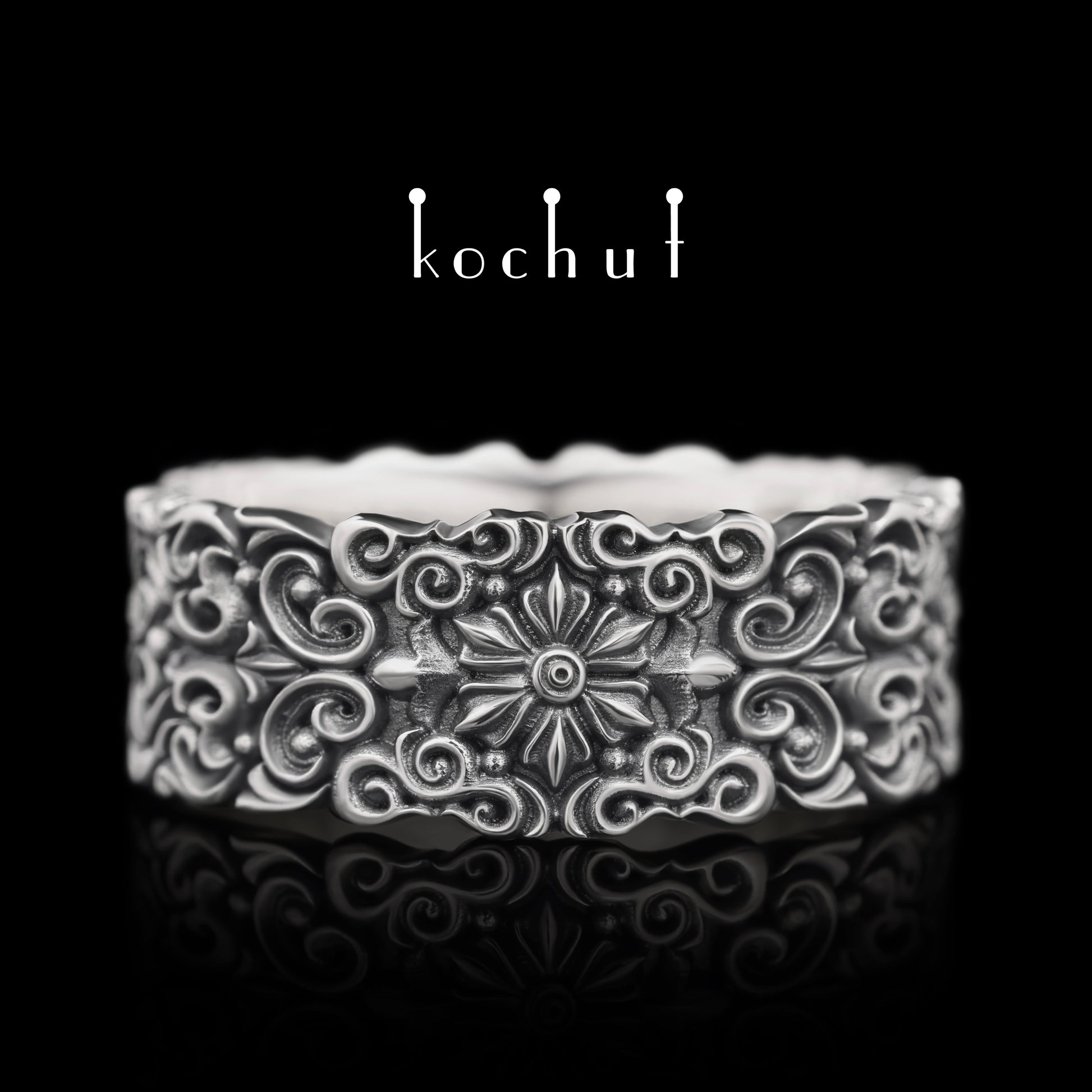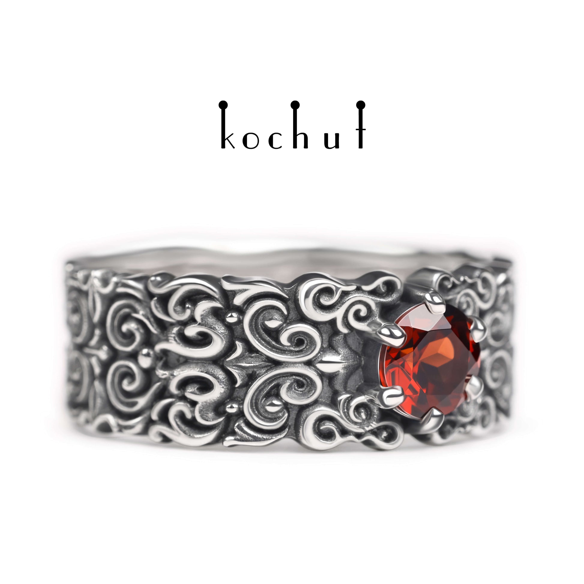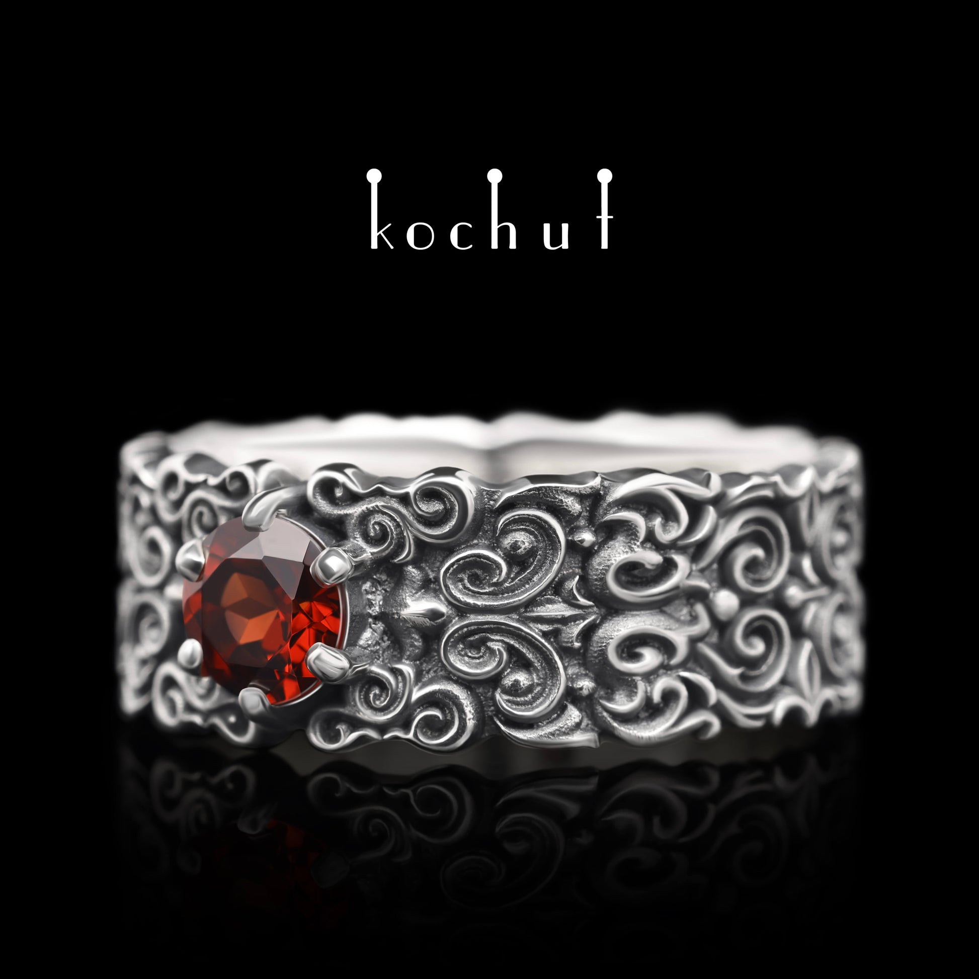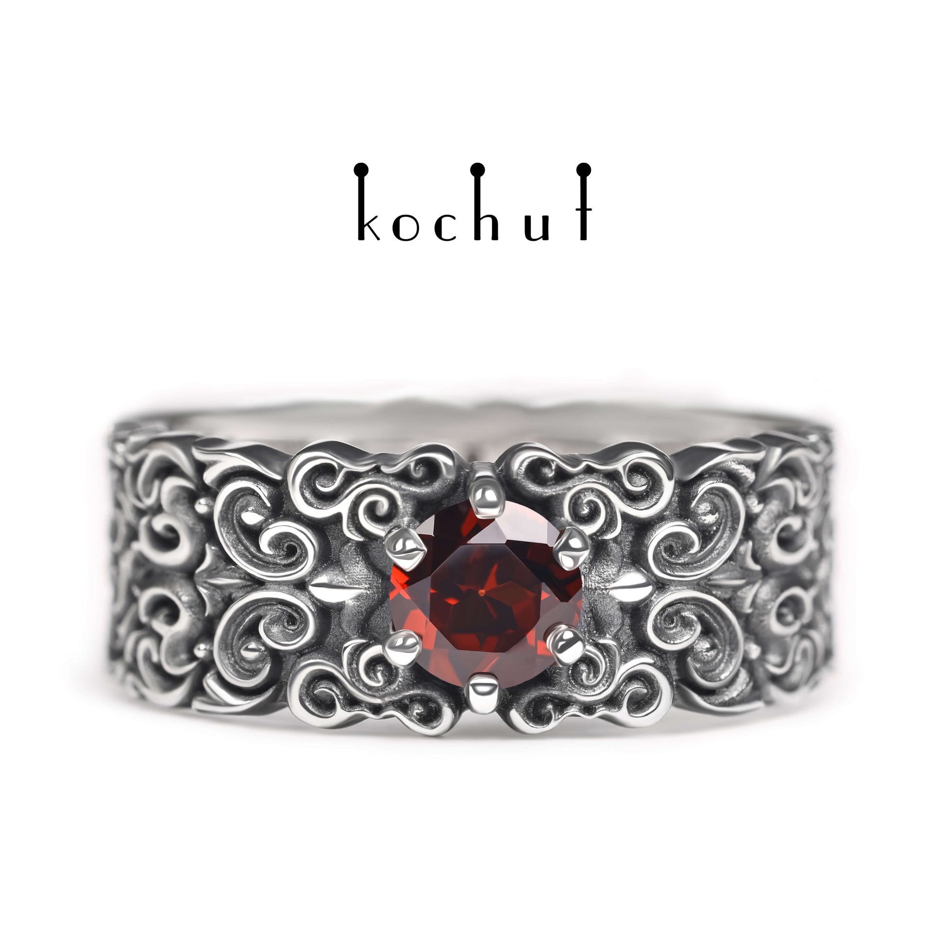 Notre-Dame — Ring aus oxidiertem Silber mit Granat