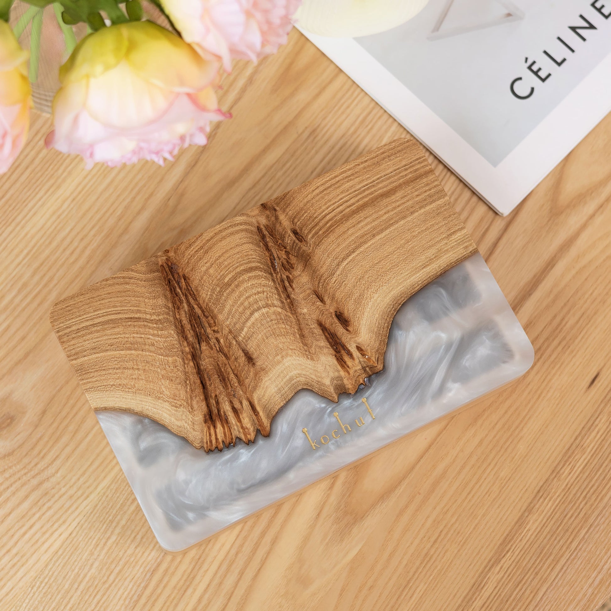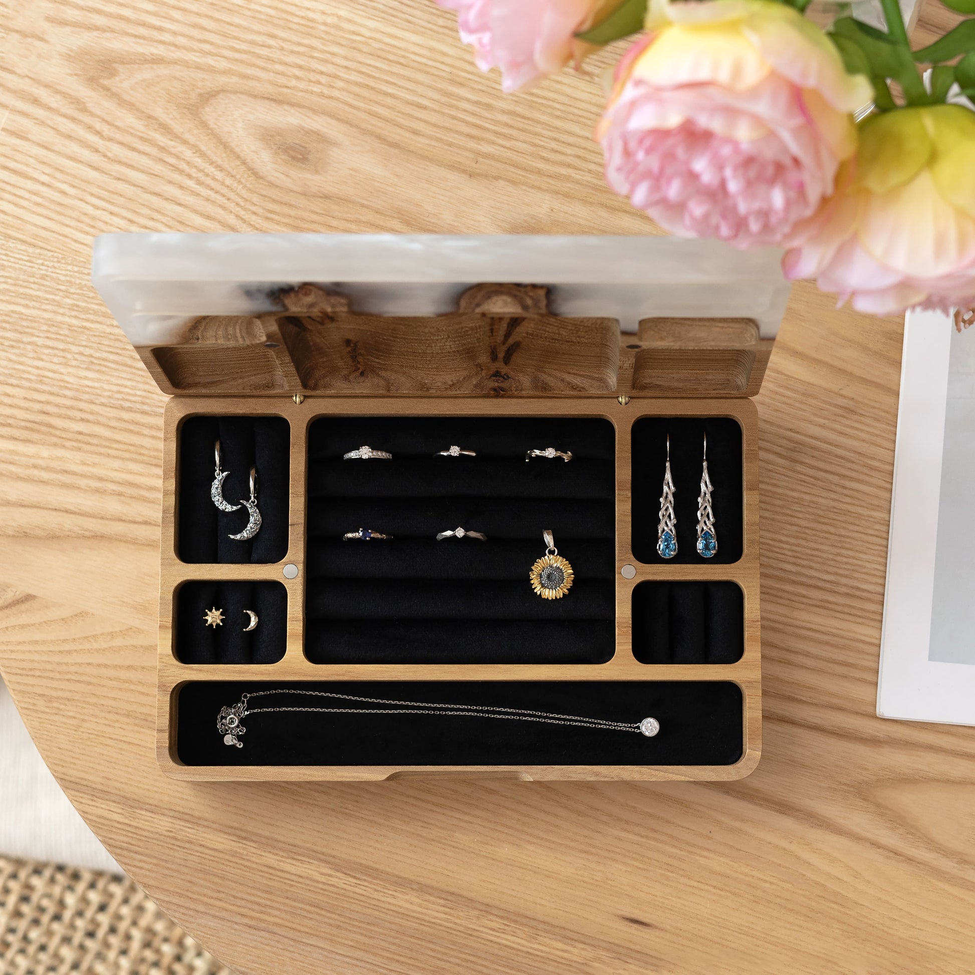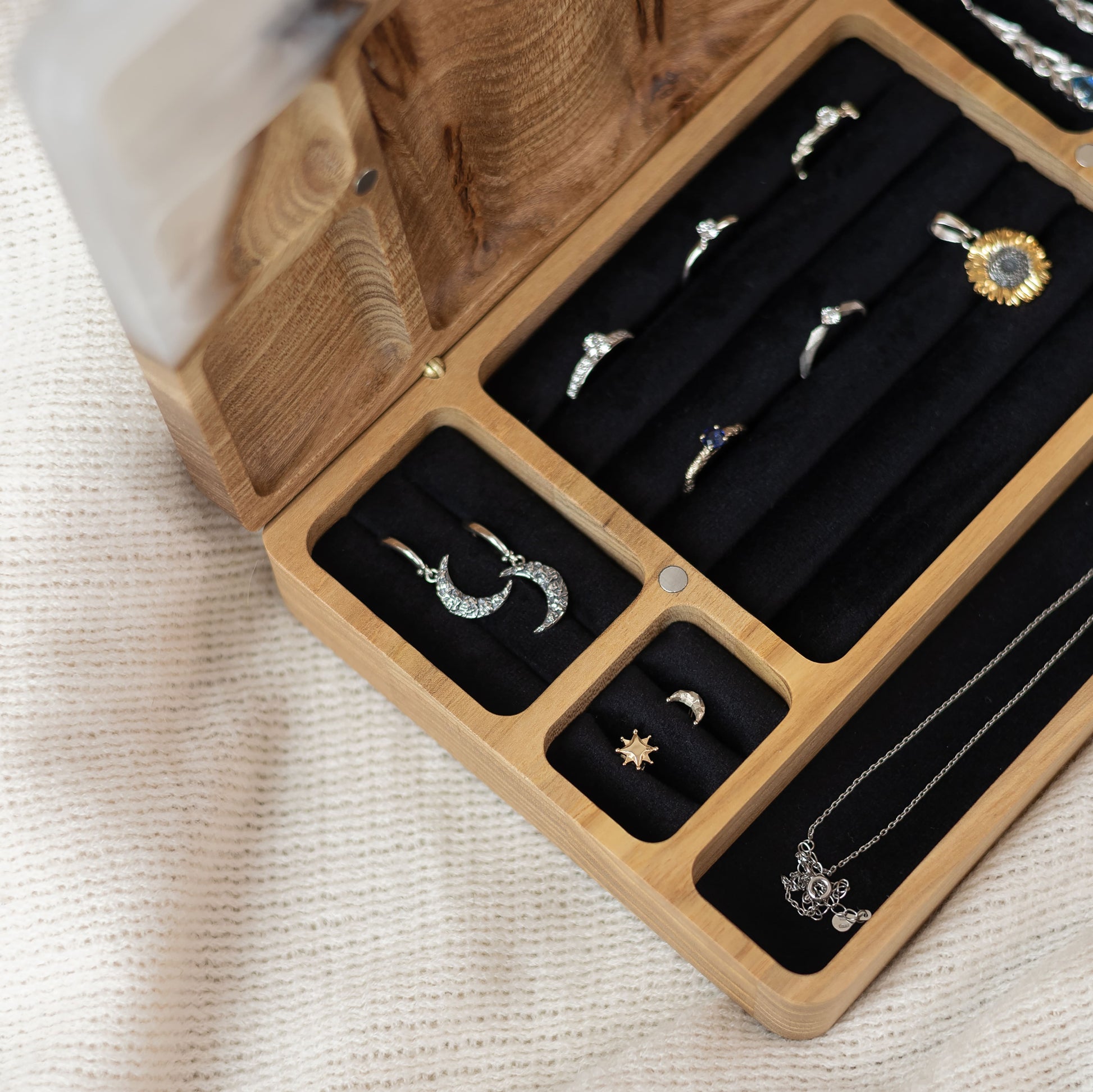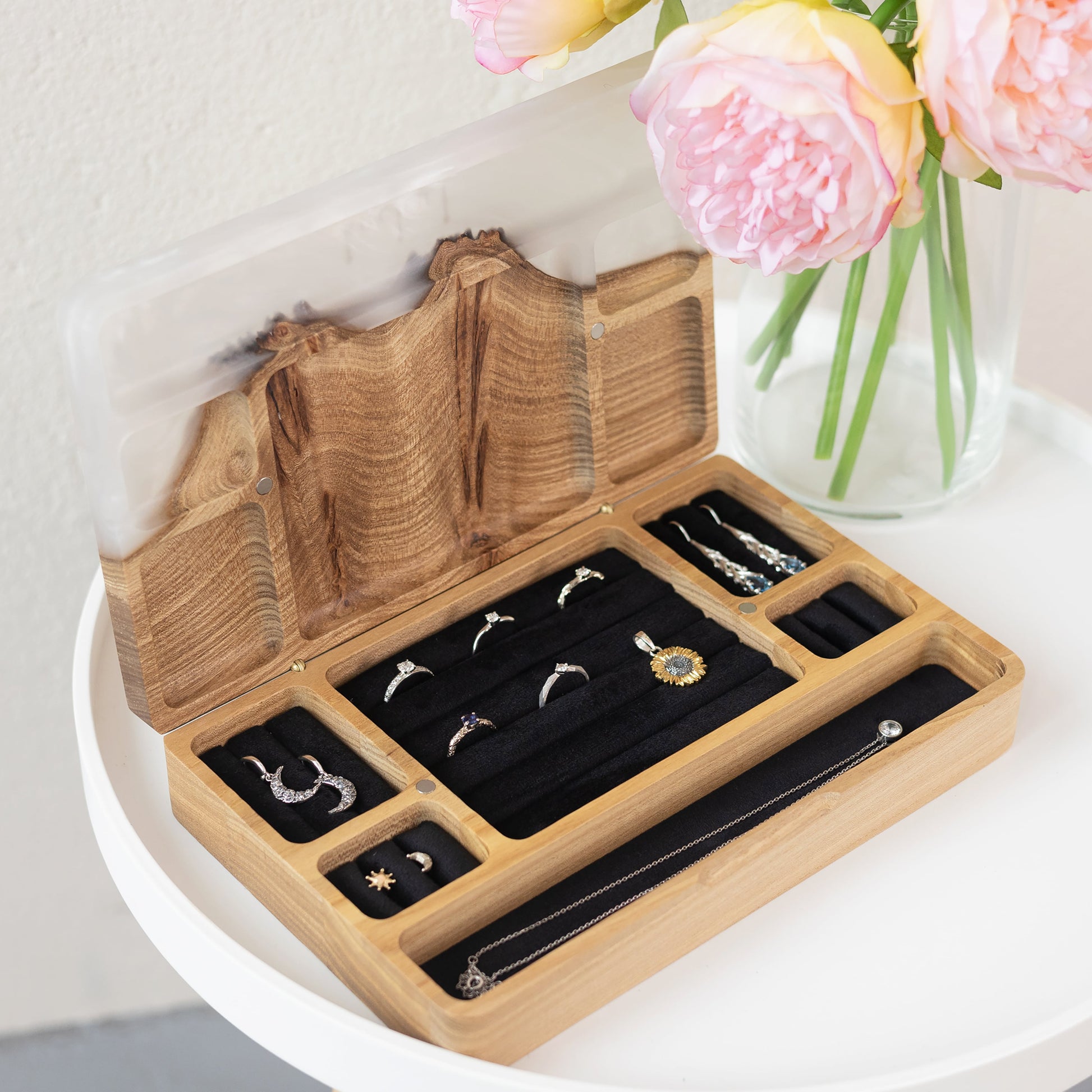 Ornament. Platin - Holz- und Epoxidharz-Schmuckkästchen (Maxi-Größe)