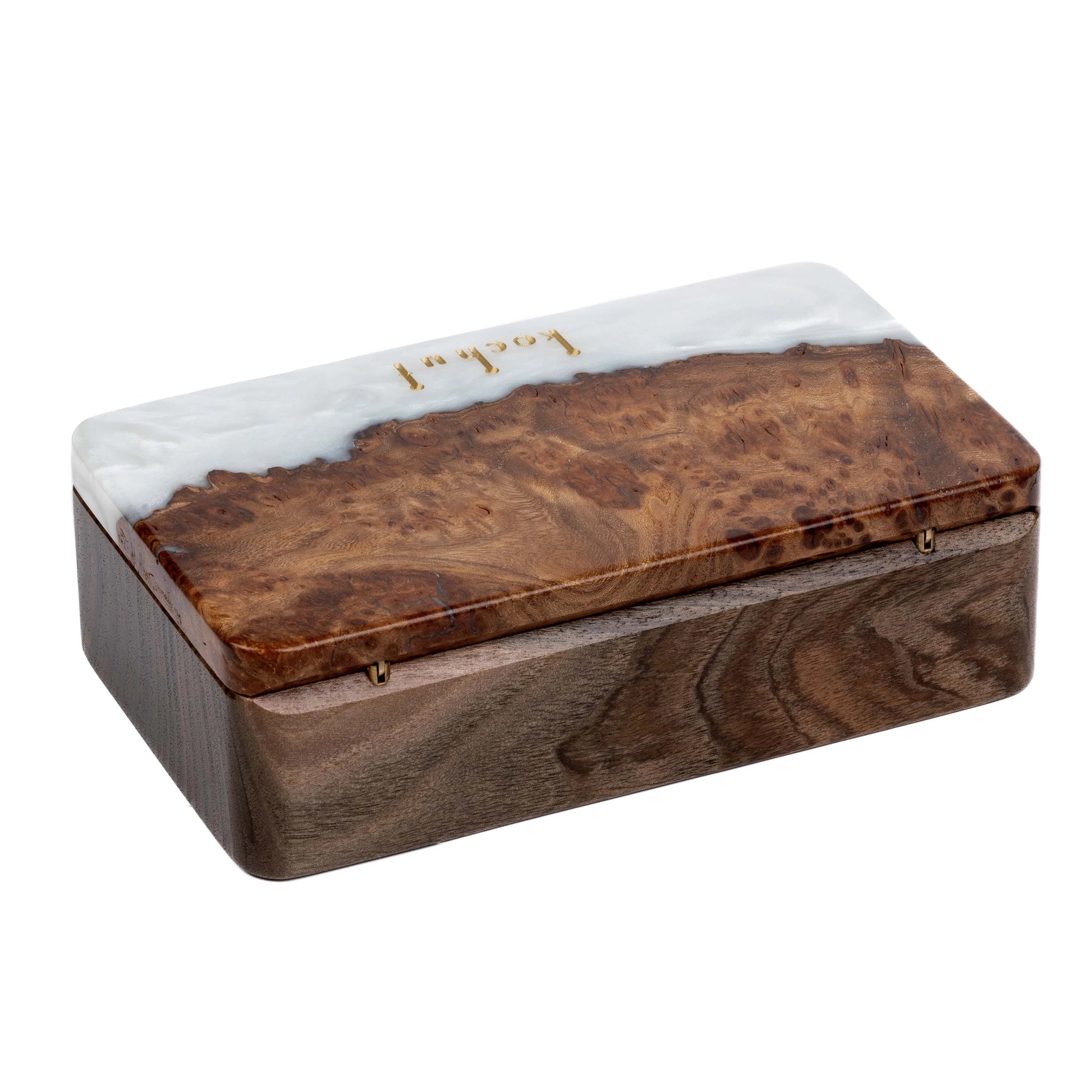 Ornament. Platin — Holz- und Epoxidharz-Schmuckschachteln (Mini)