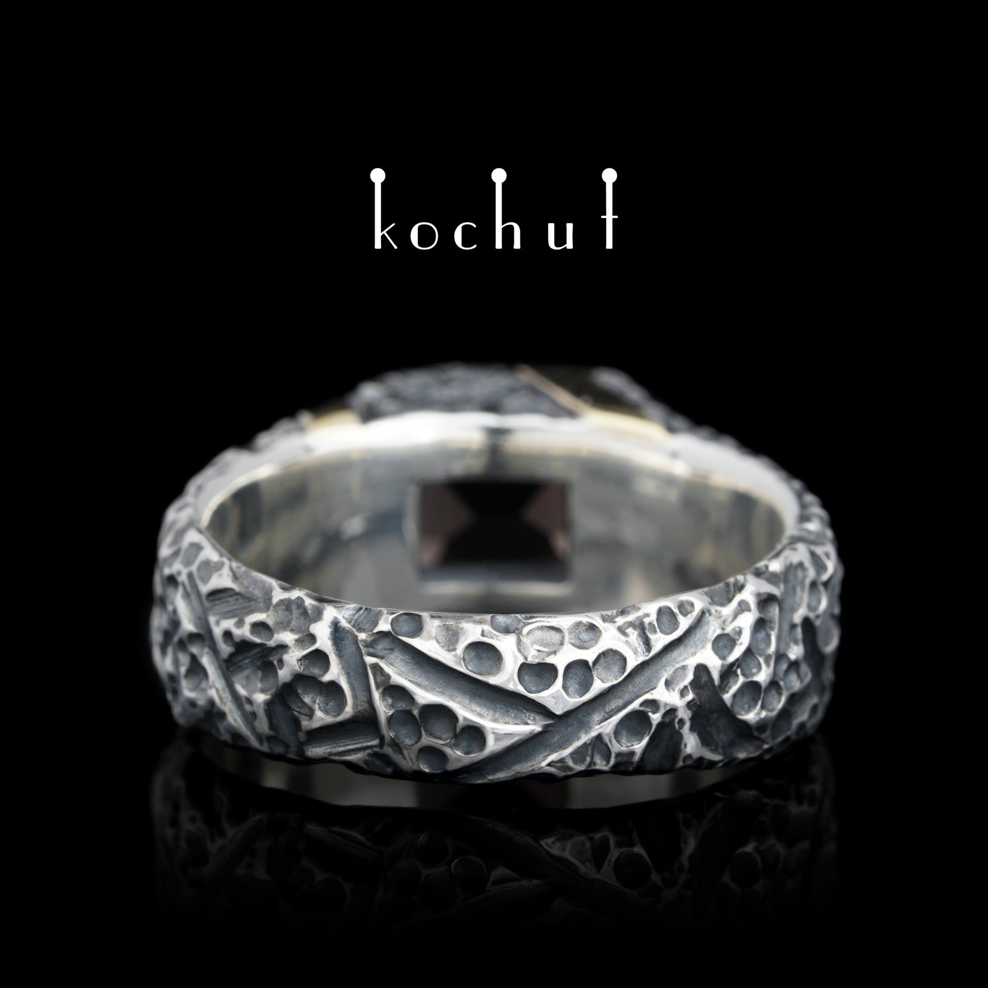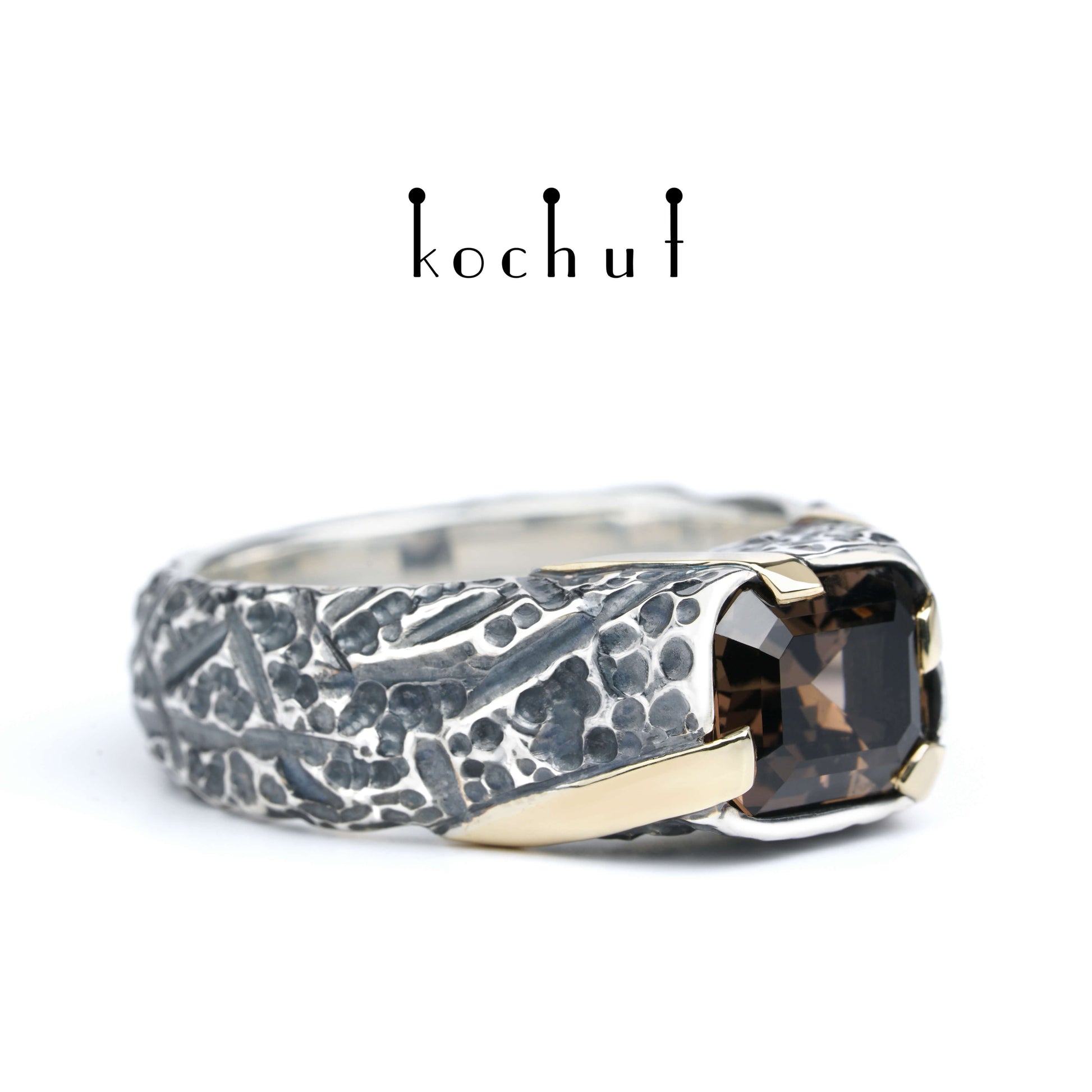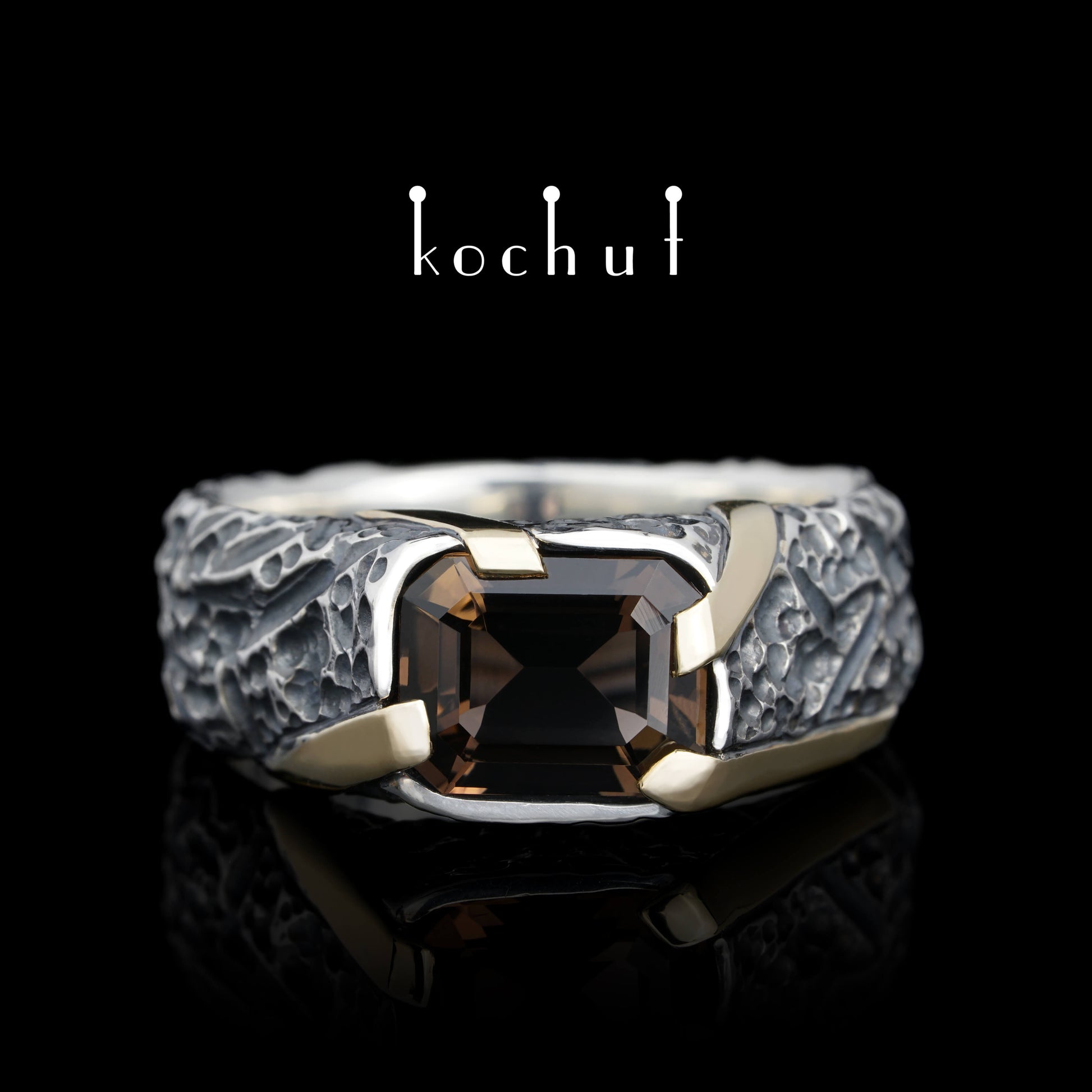 Overlord — Ring aus oxidiertem Silber und Gelbgold mit Rauchquarz