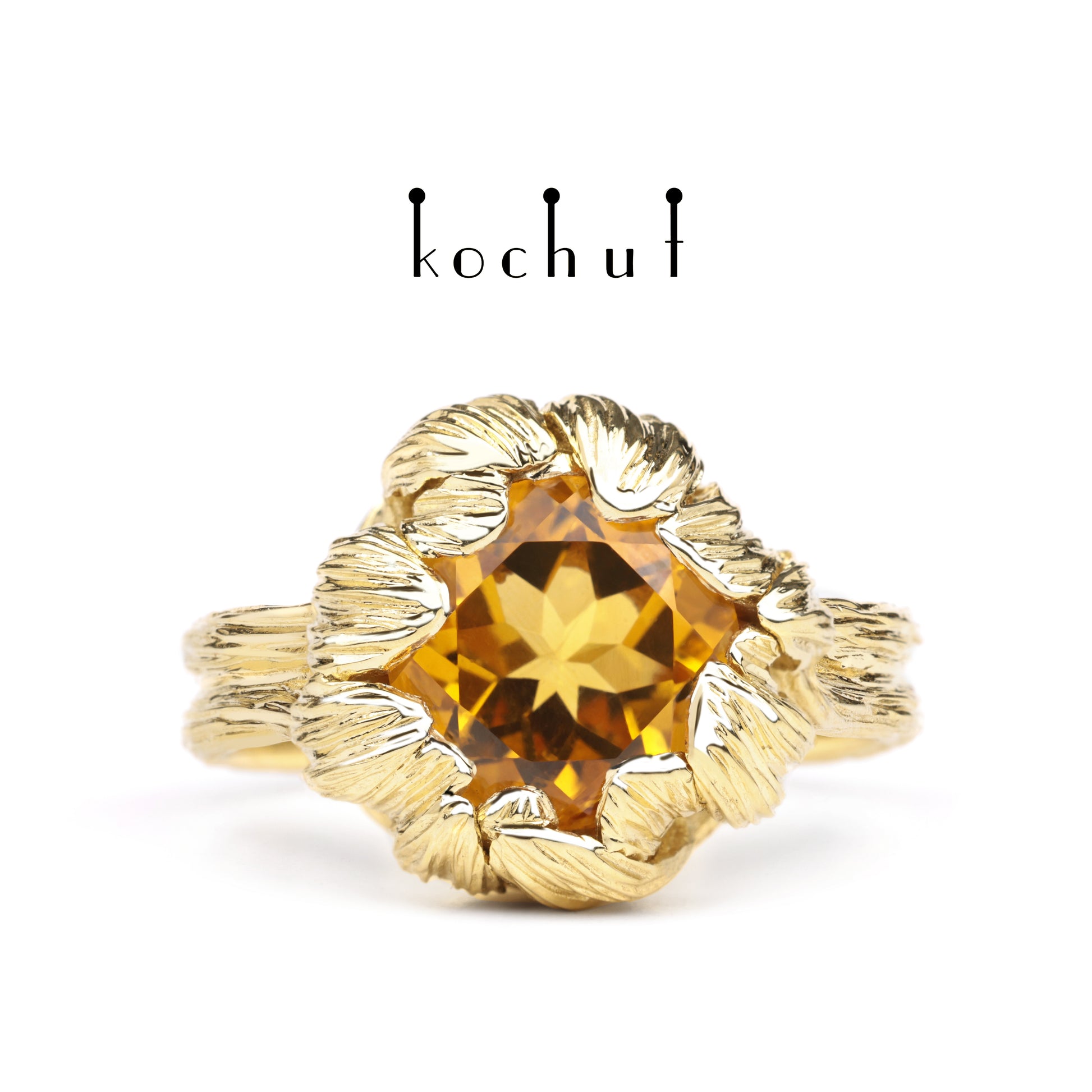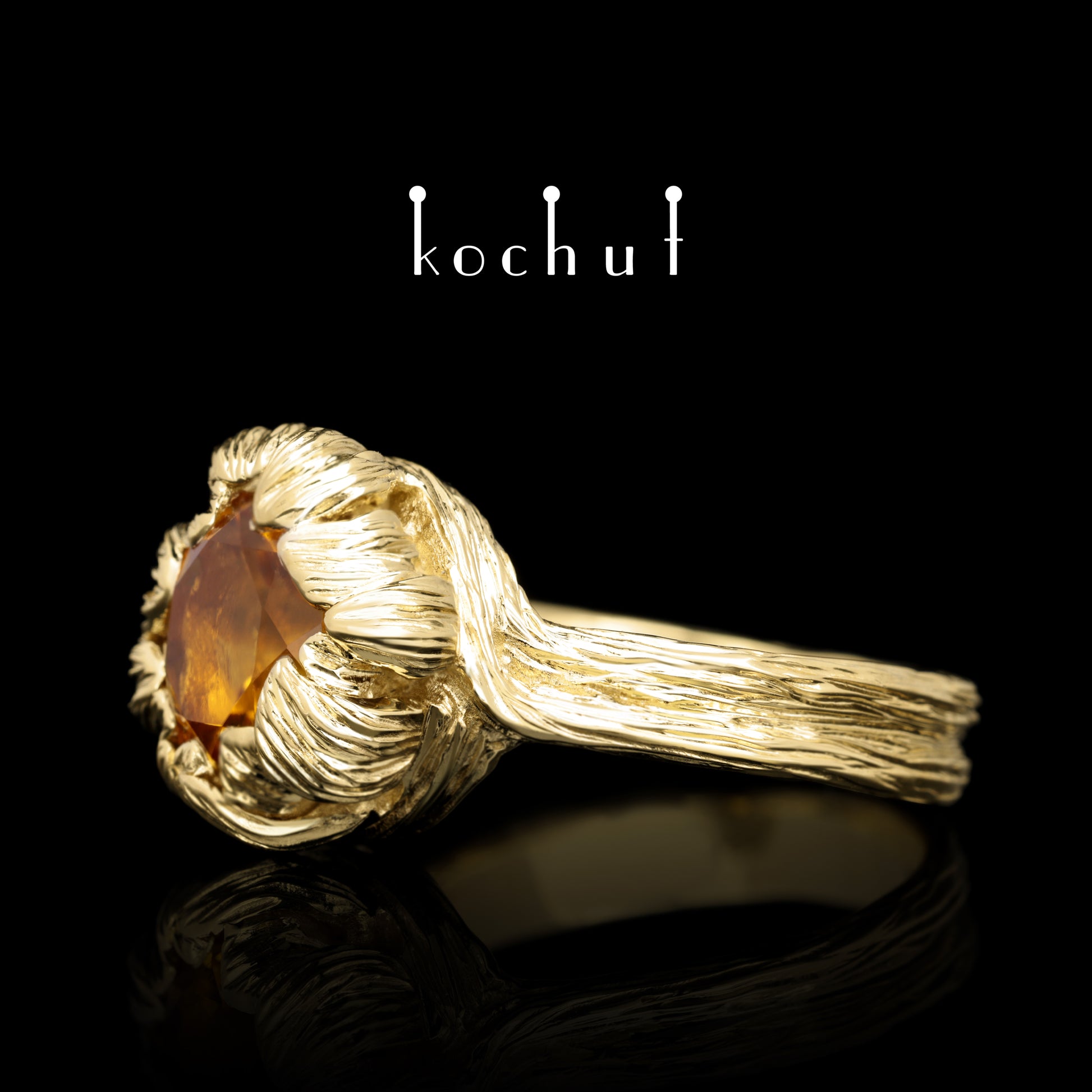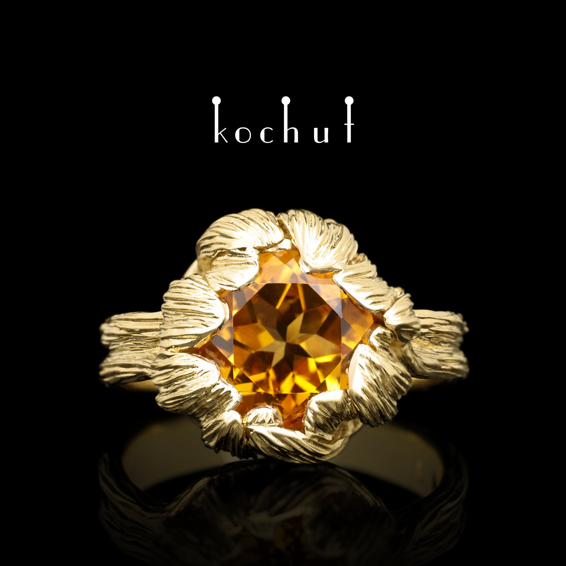 Pfingstrose — Ring aus Gelbgold mit Citrin