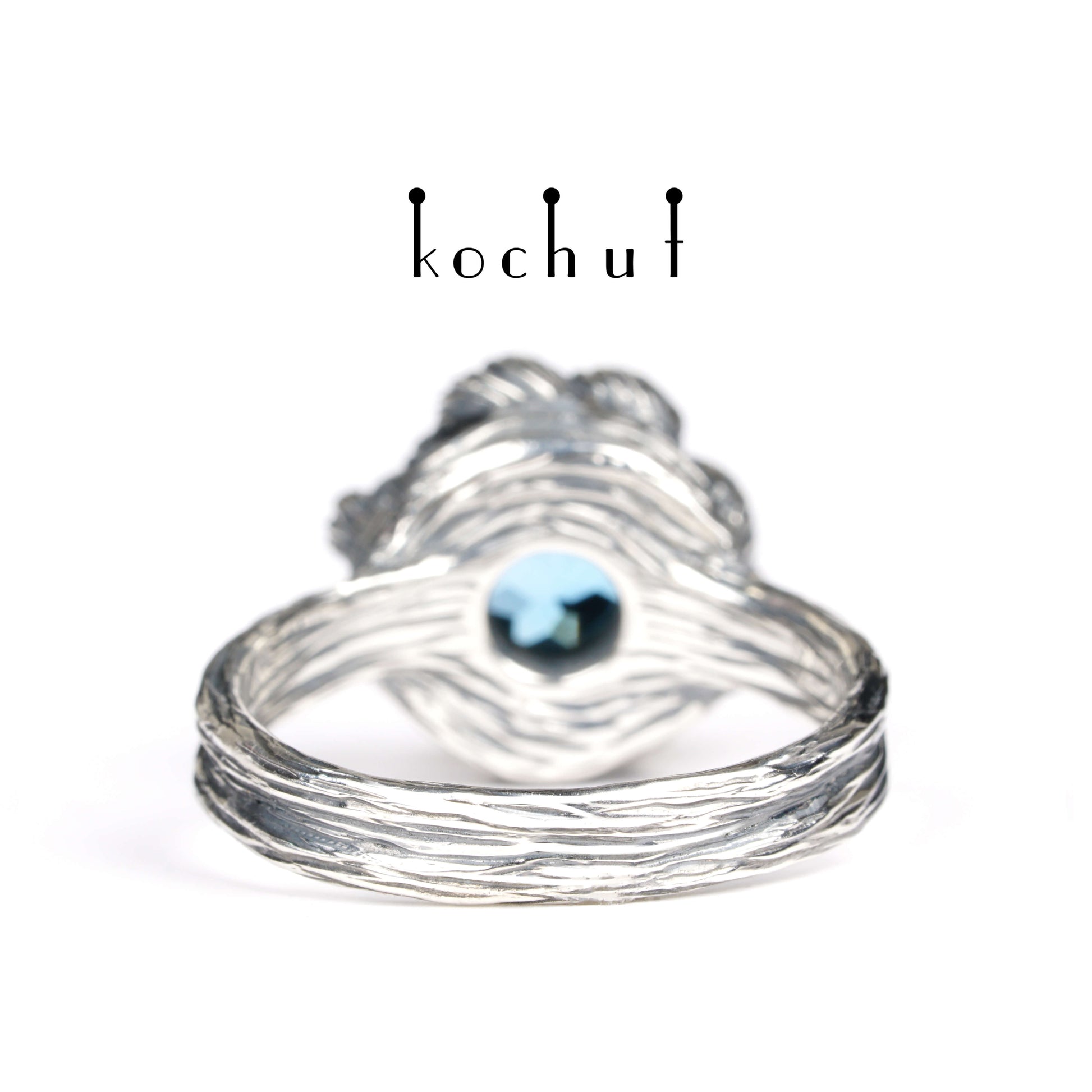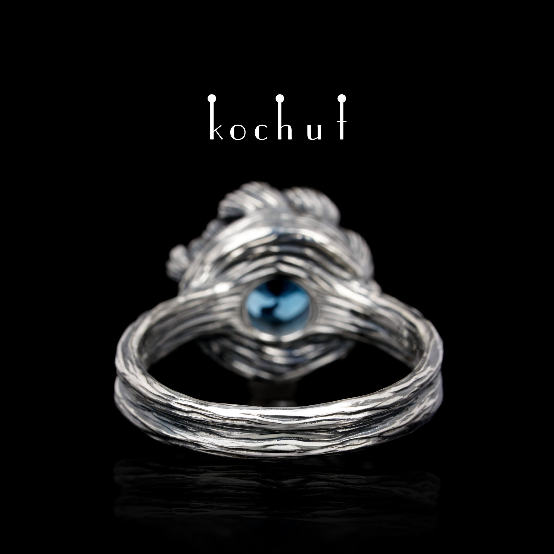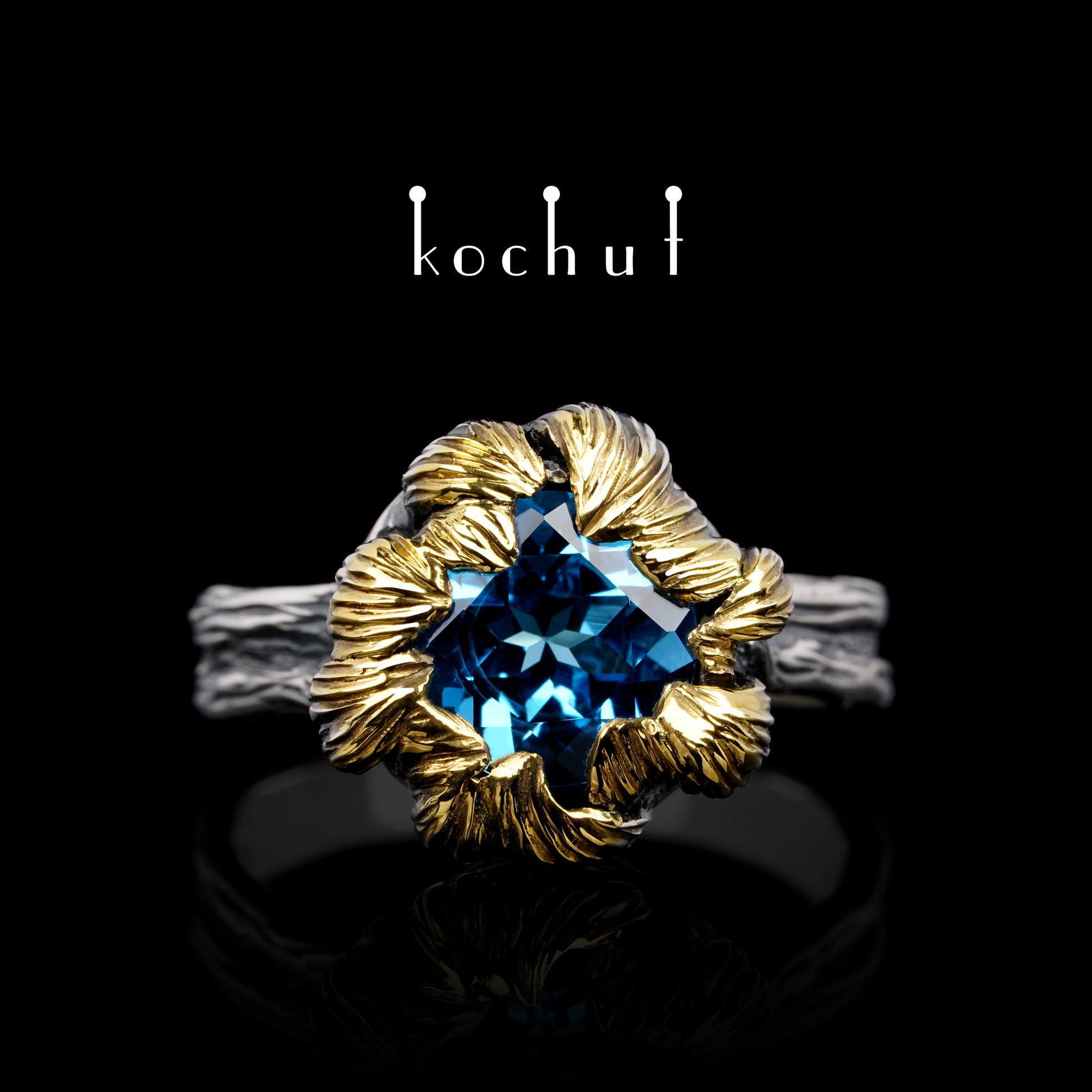 Pfingstrose — Ring aus oxidiertem Silber mit Topas und Vergoldung