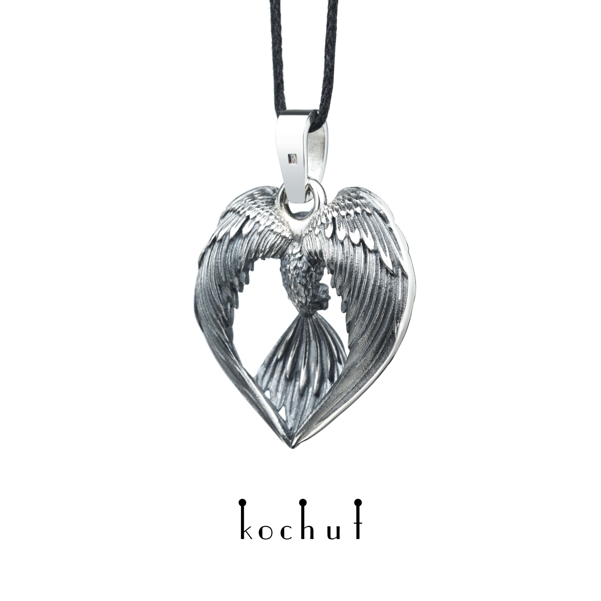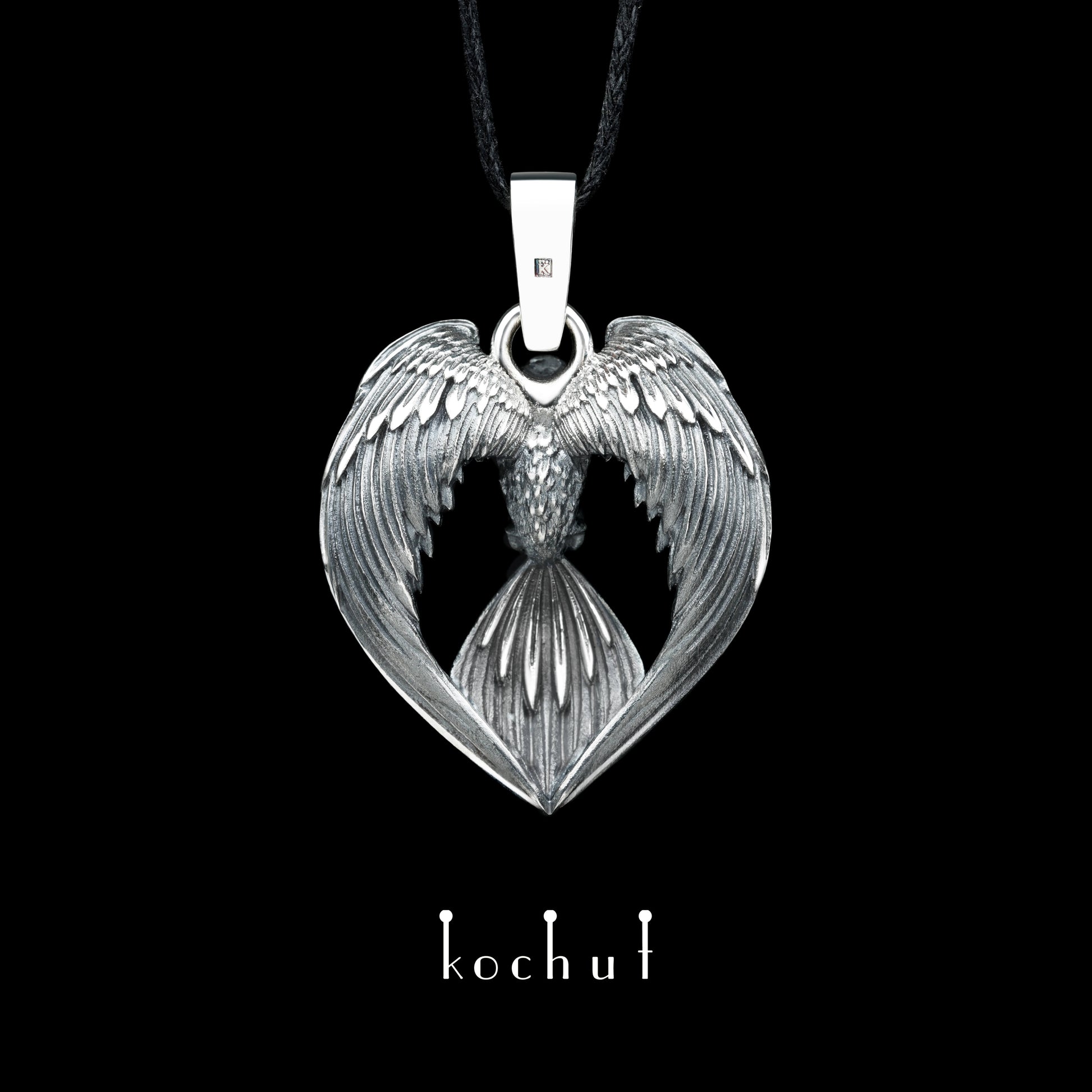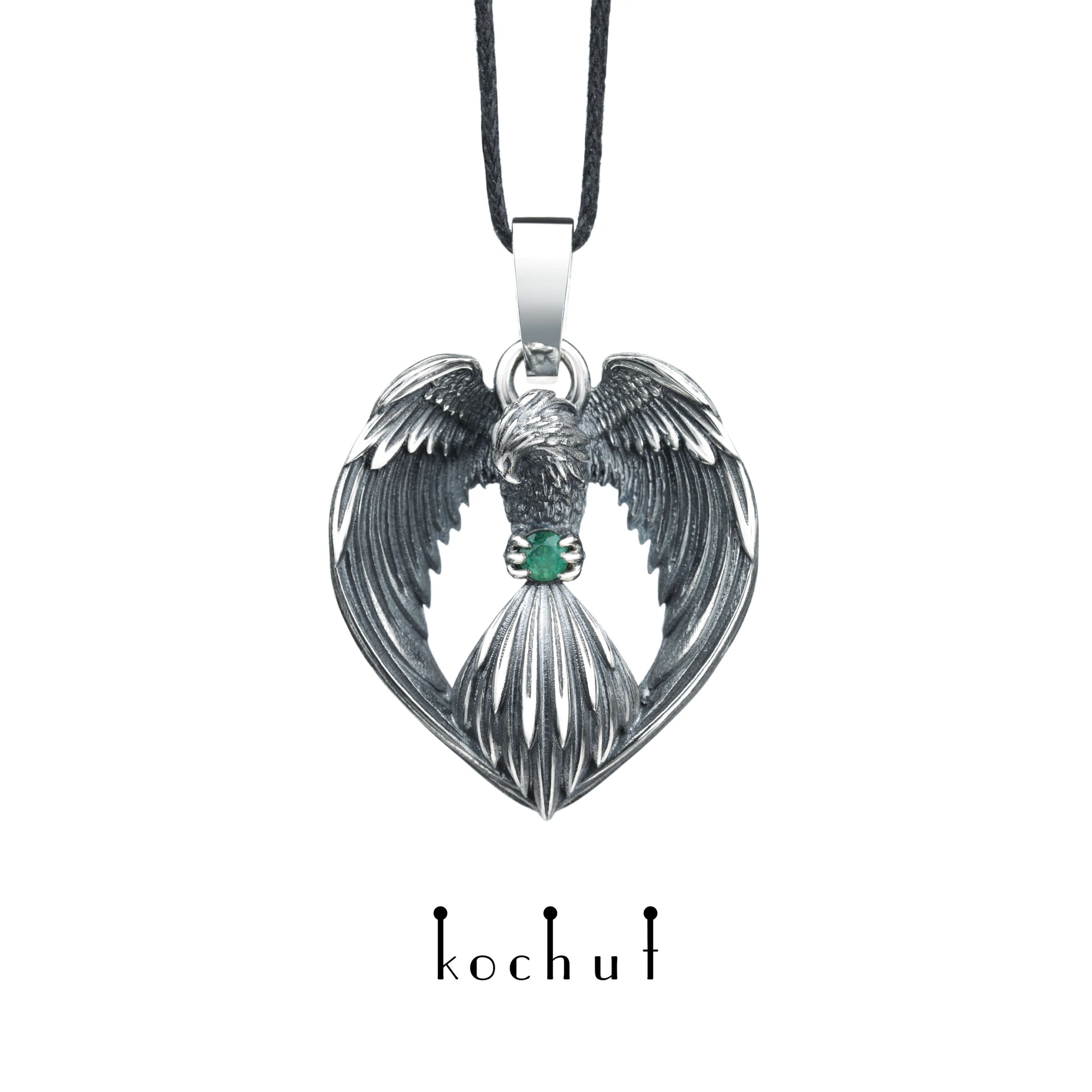 Phoenix — Anhänger aus oxidiertem Silber mit Smaragd