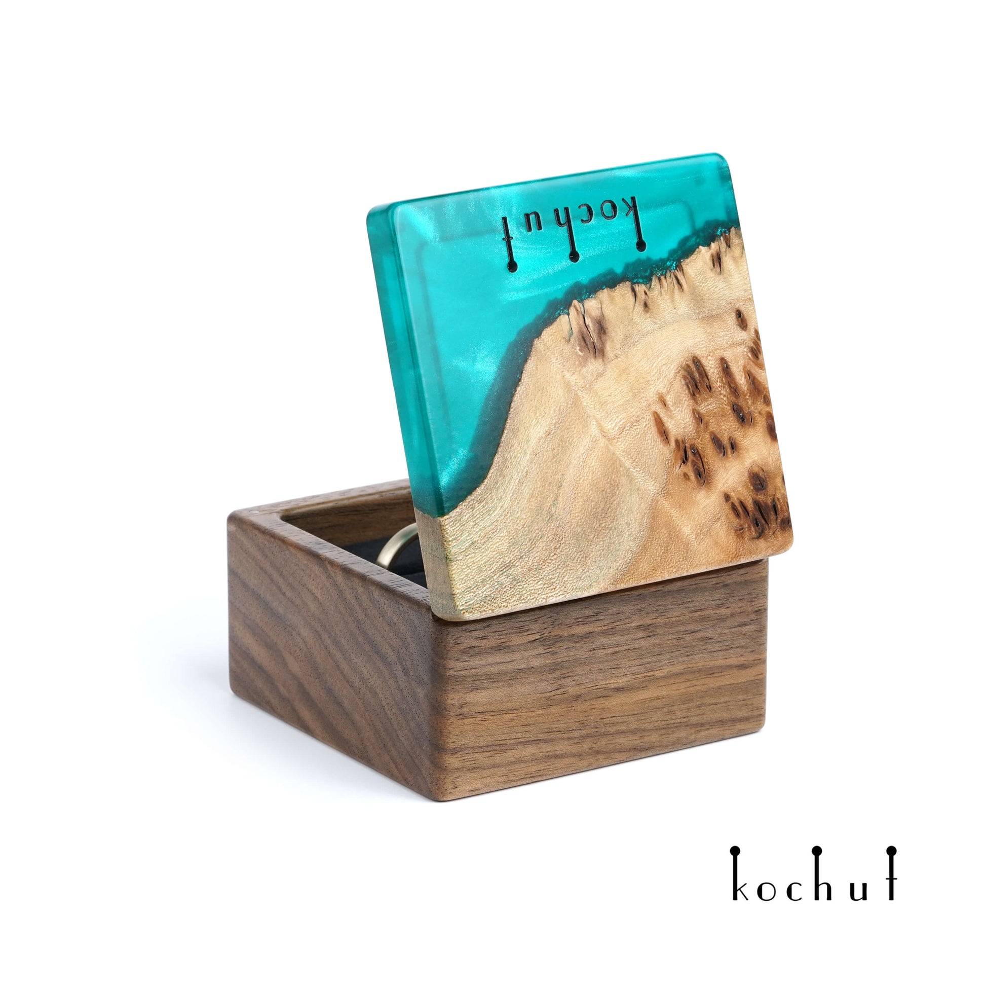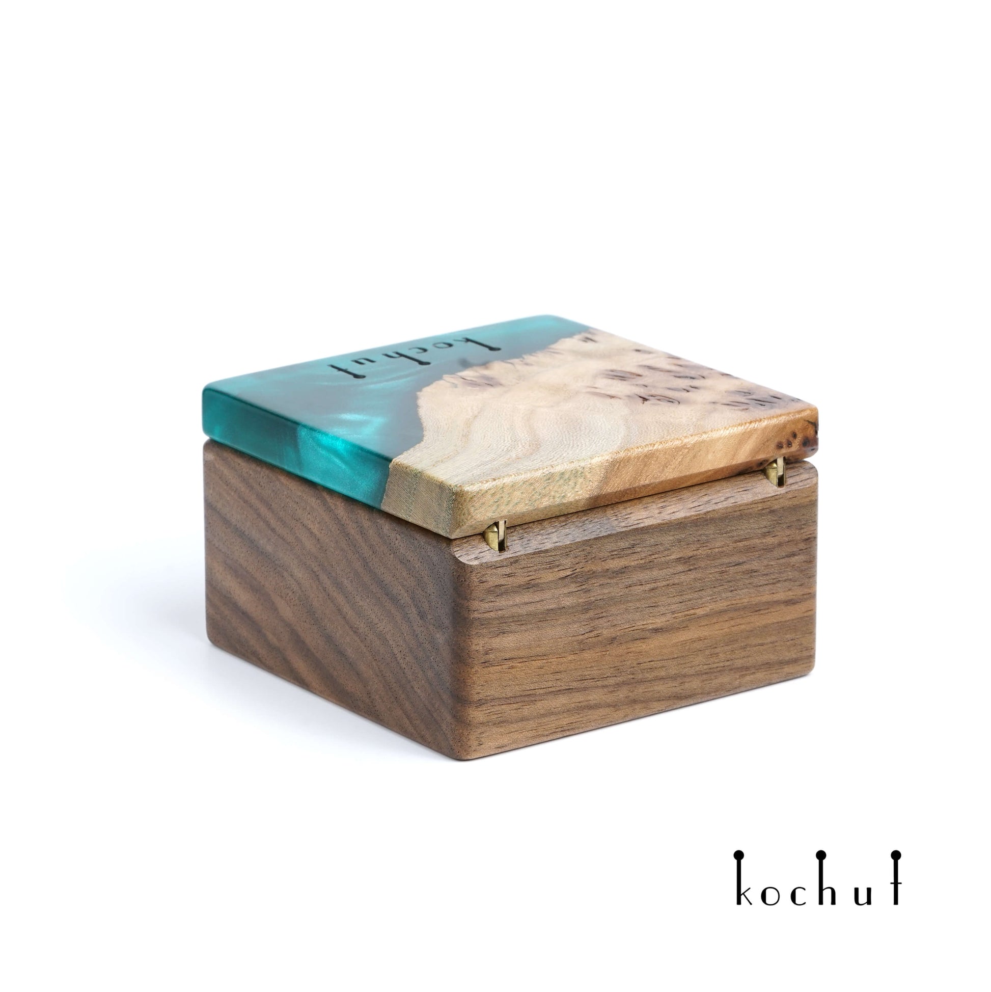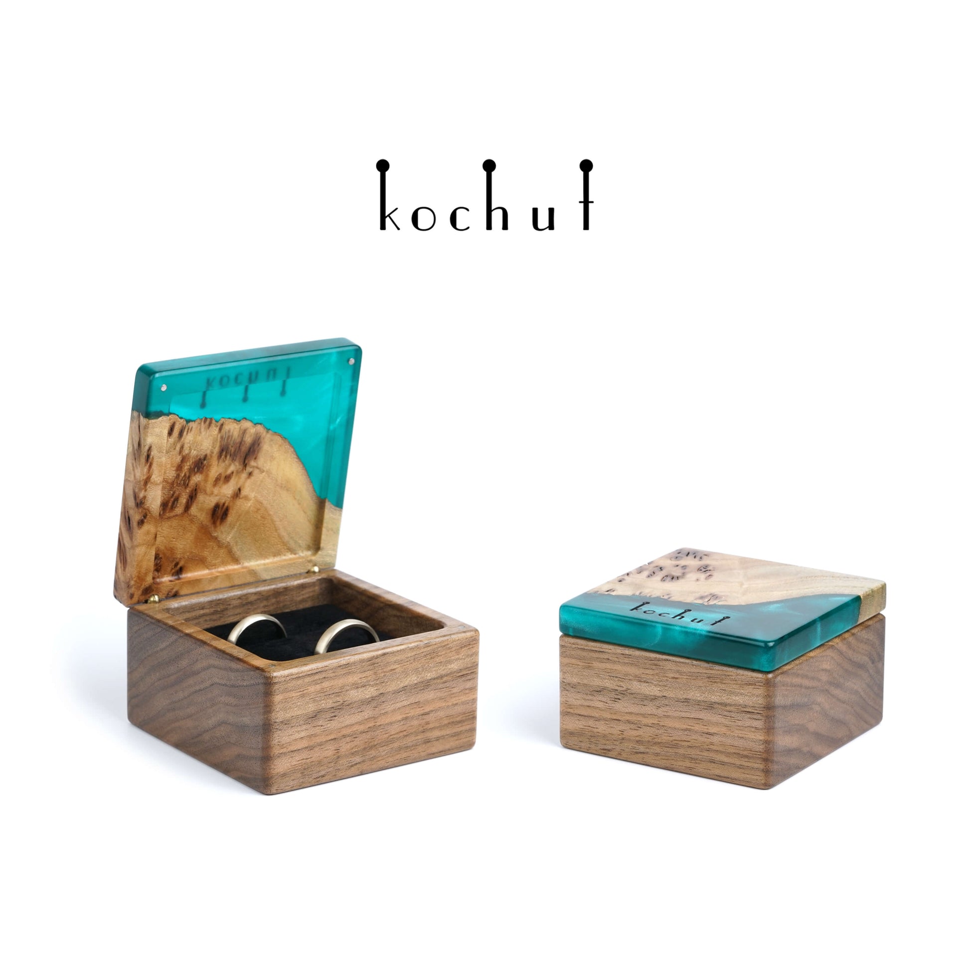 Quadrum — Schmuckkästchen aus Walnuss, Olive und grünem Epoxidharz