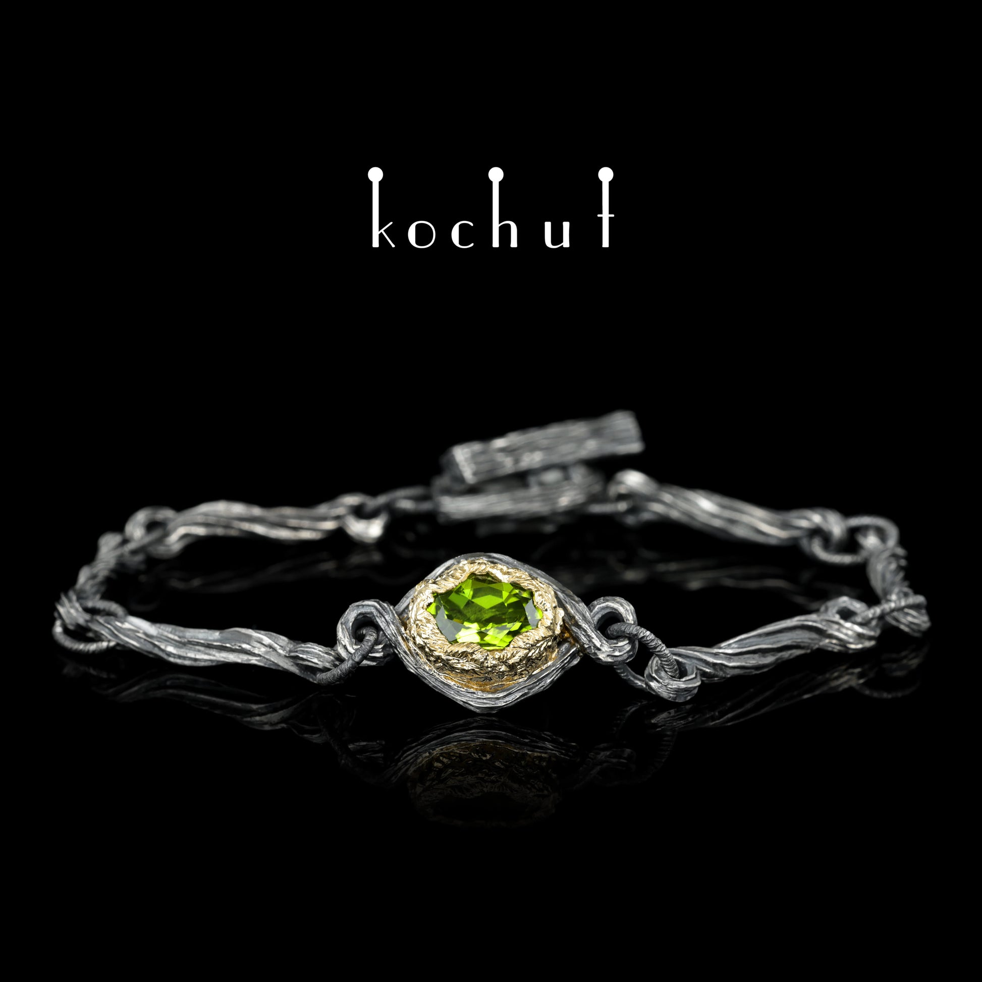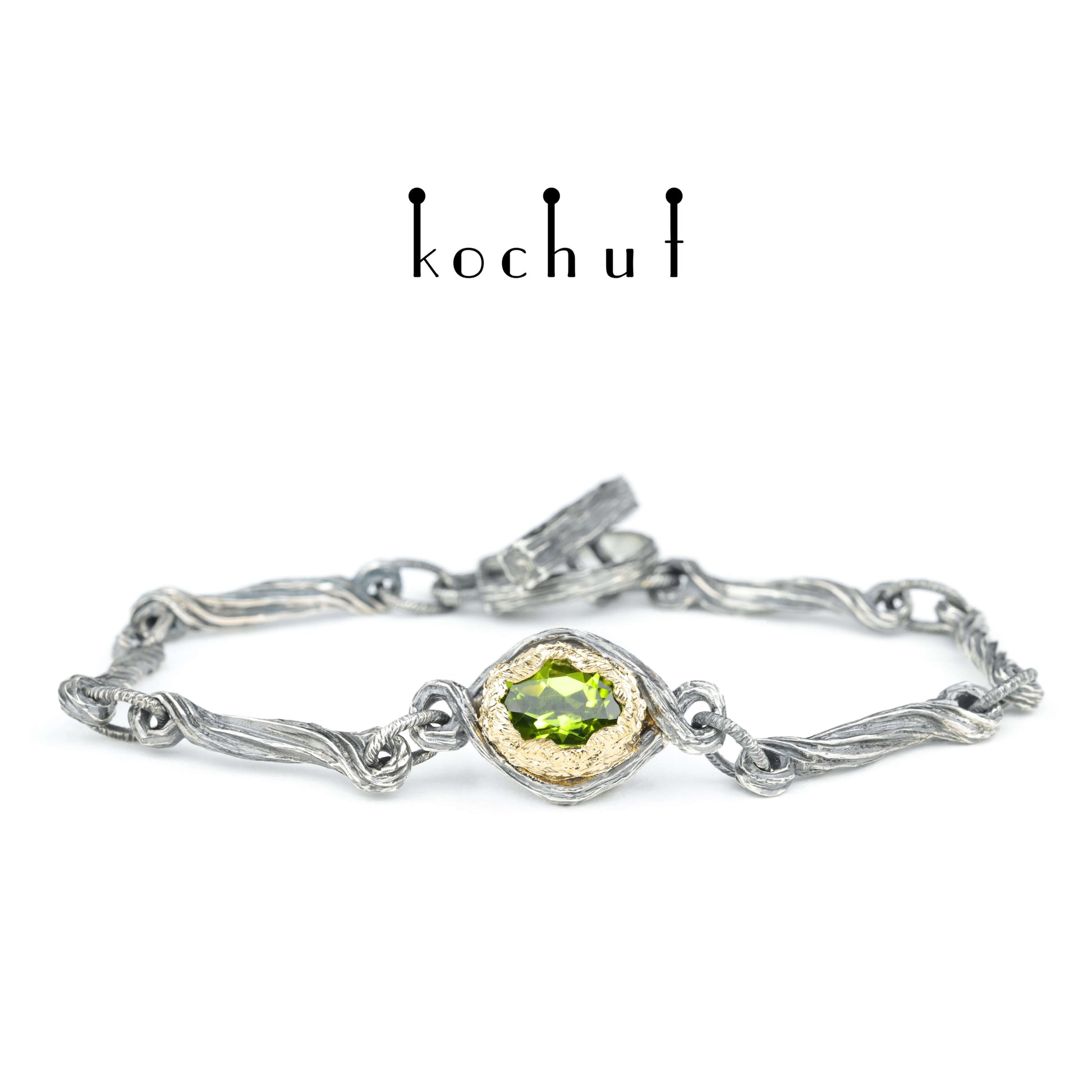Quelle des Lebens — Armband aus oxidiertem Silber und Gelbgold mit Chrysolith