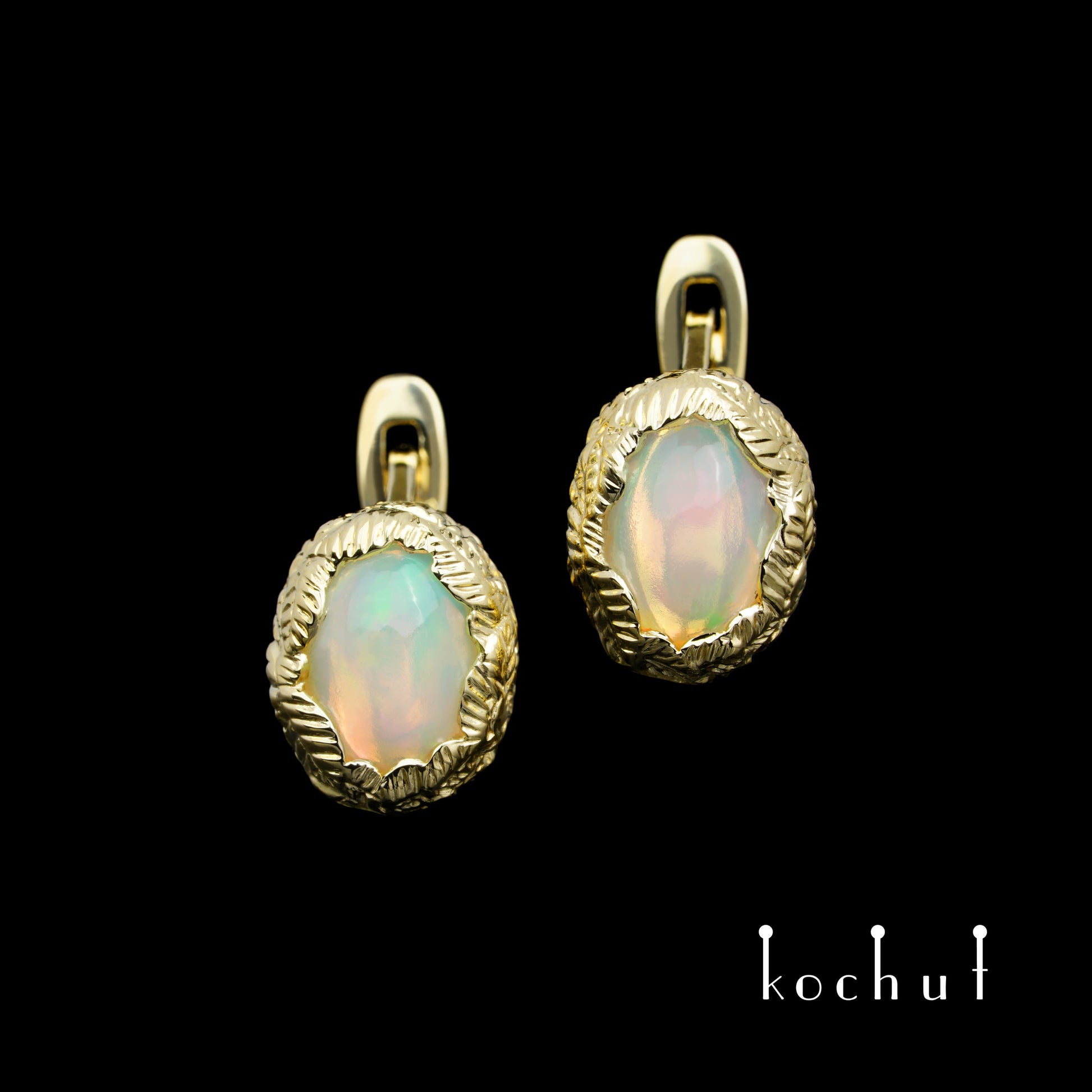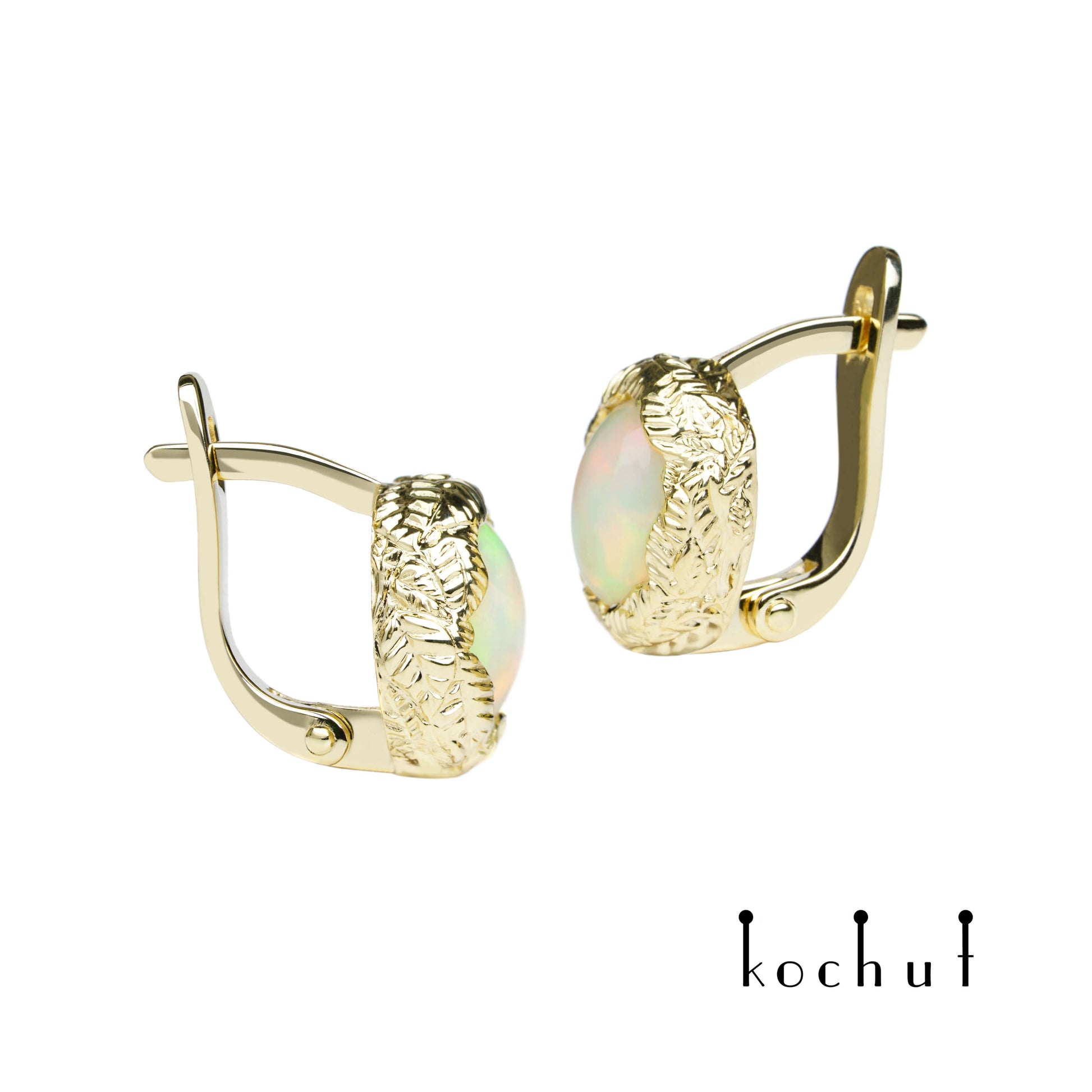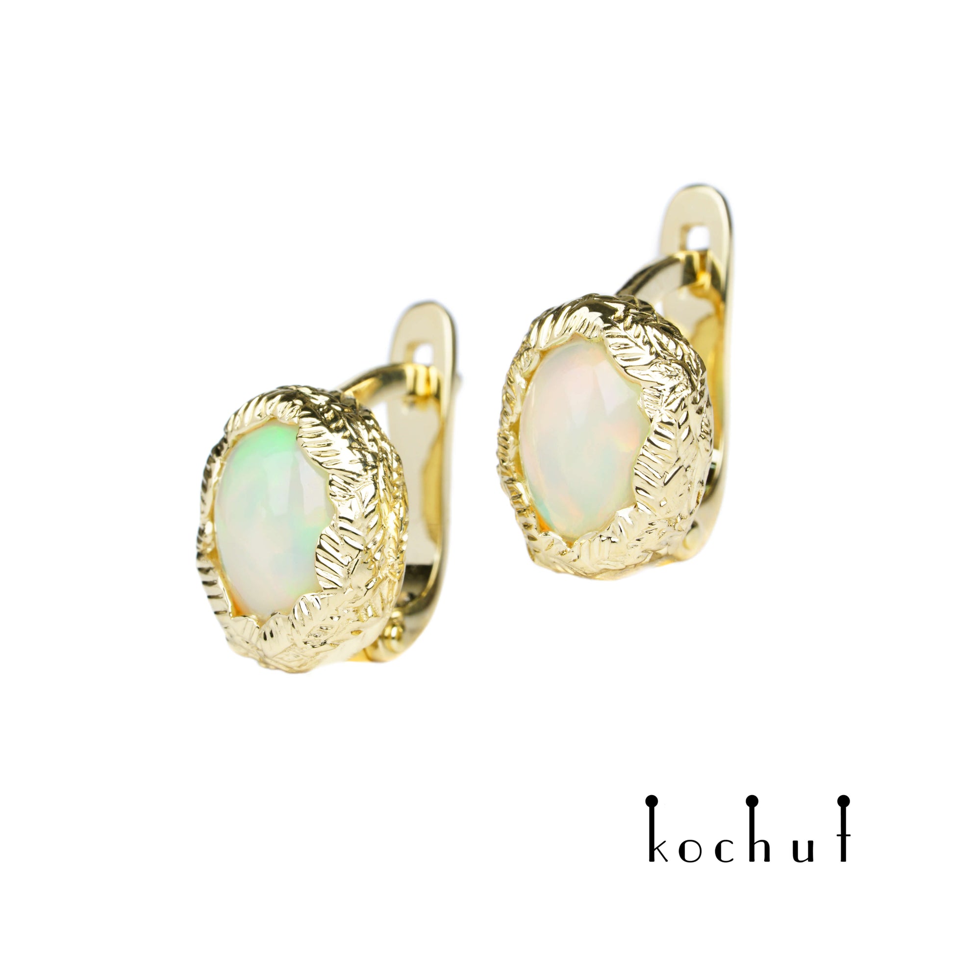Quelle des Lebens — Ohrringe aus Gelbgold mit Opalen