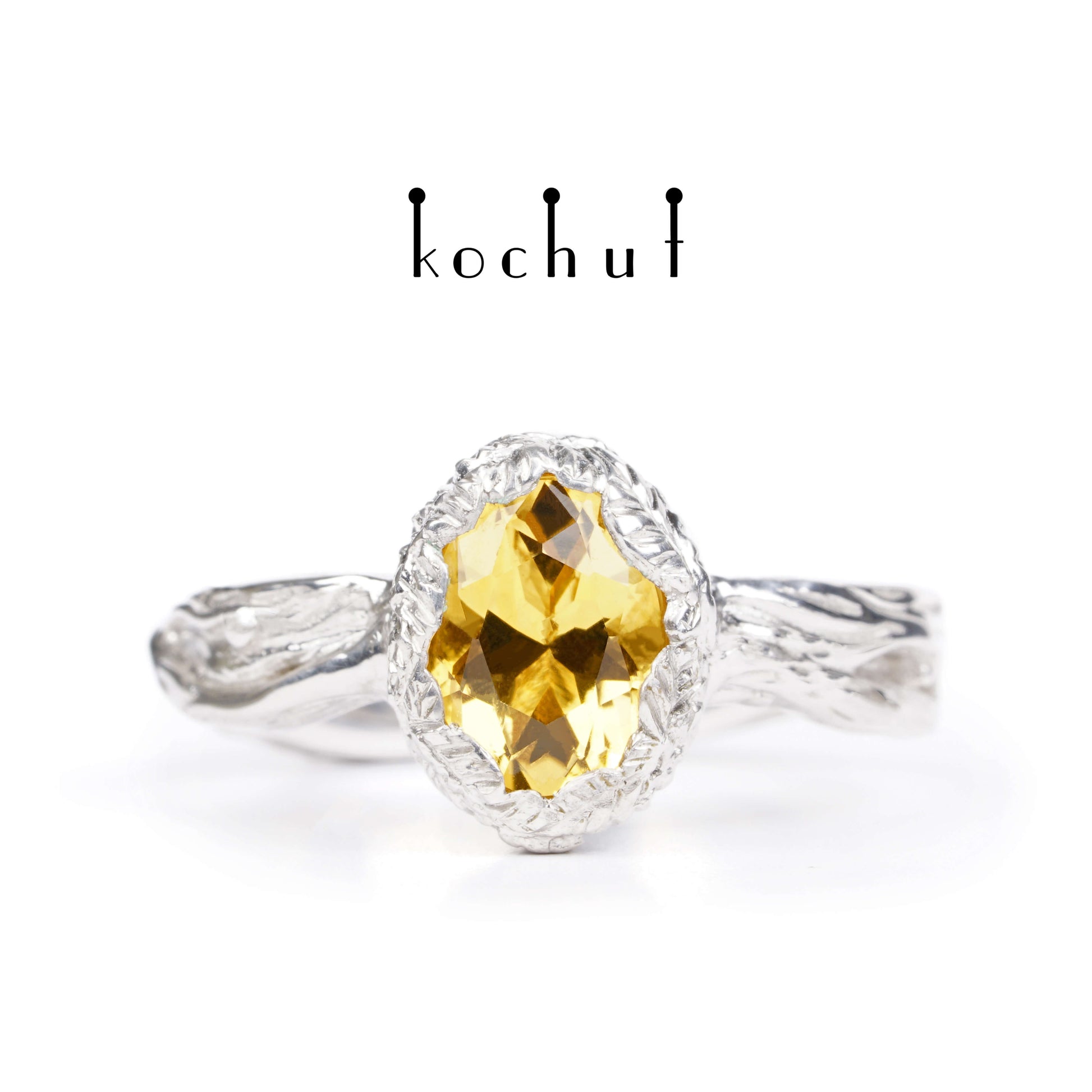 Quelle des Lebens — Ring aus Silber mit Citrin, überzogen mit weißem Rhodium
