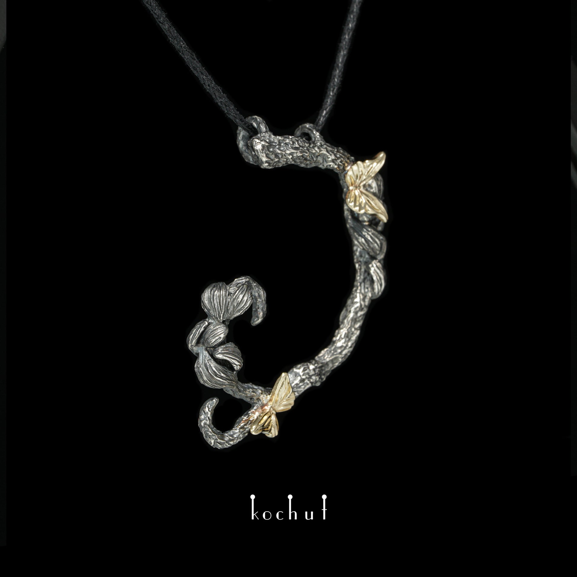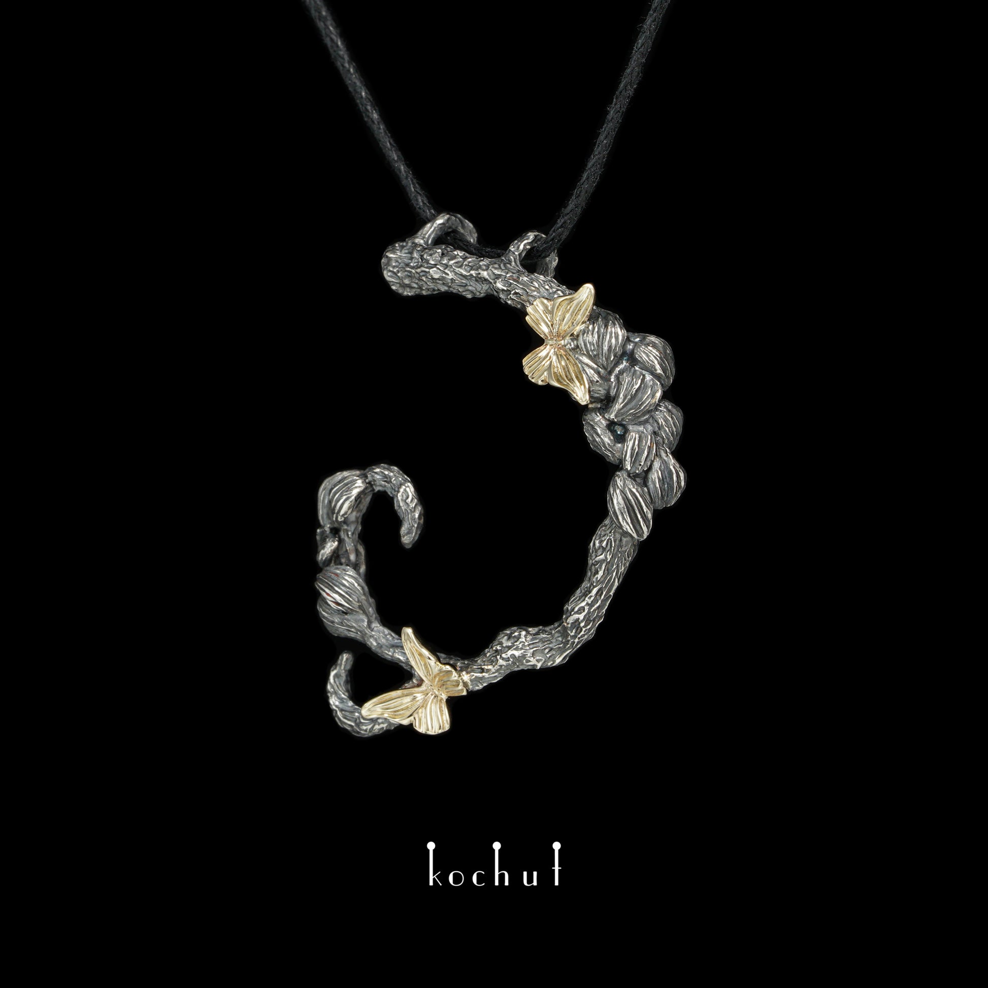Schmetterling des Lichts — Anhänger aus oxidiertem Silber und Gelbgold