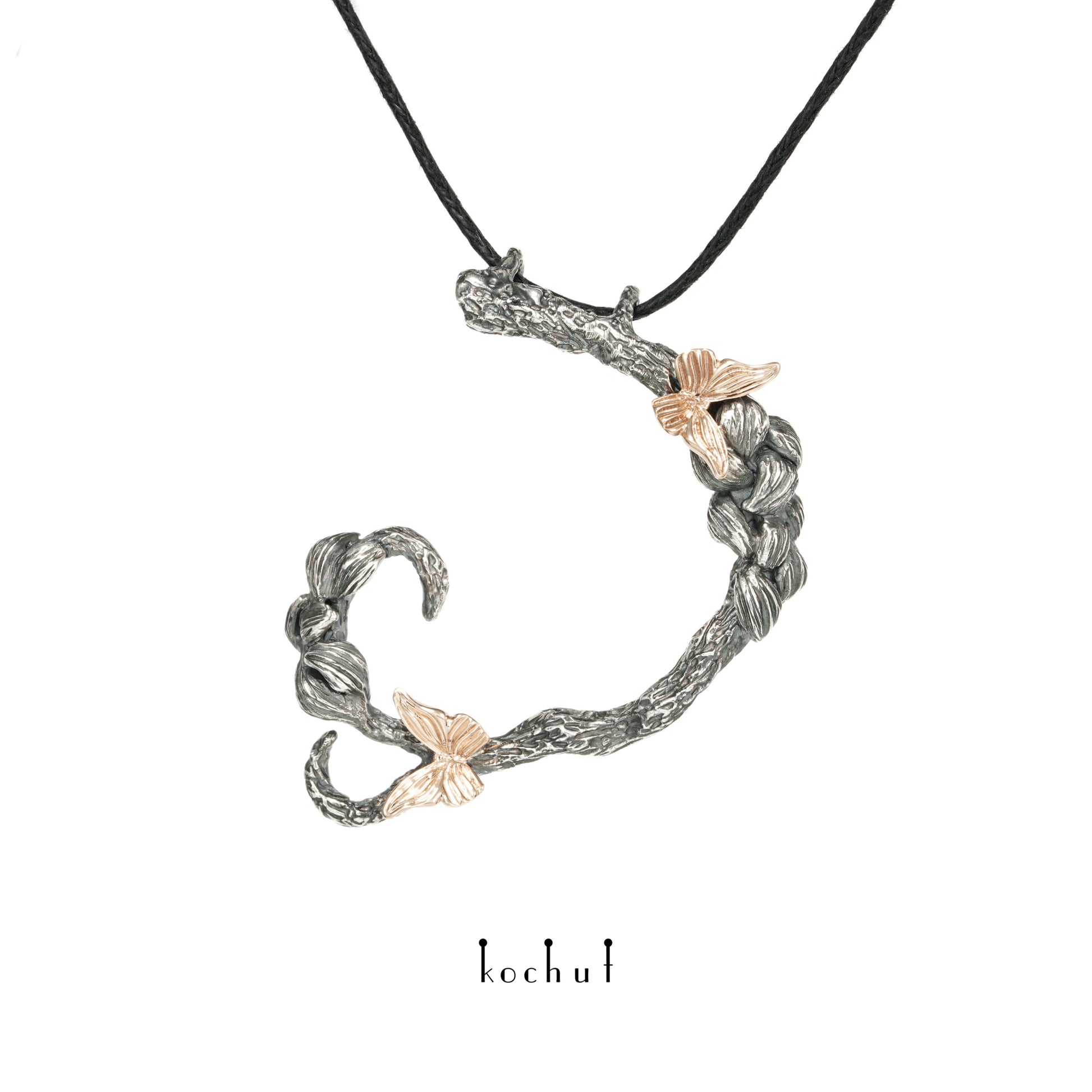 Schmetterling des Lichts — Anhänger aus oxidiertem Silber und Rotgold
