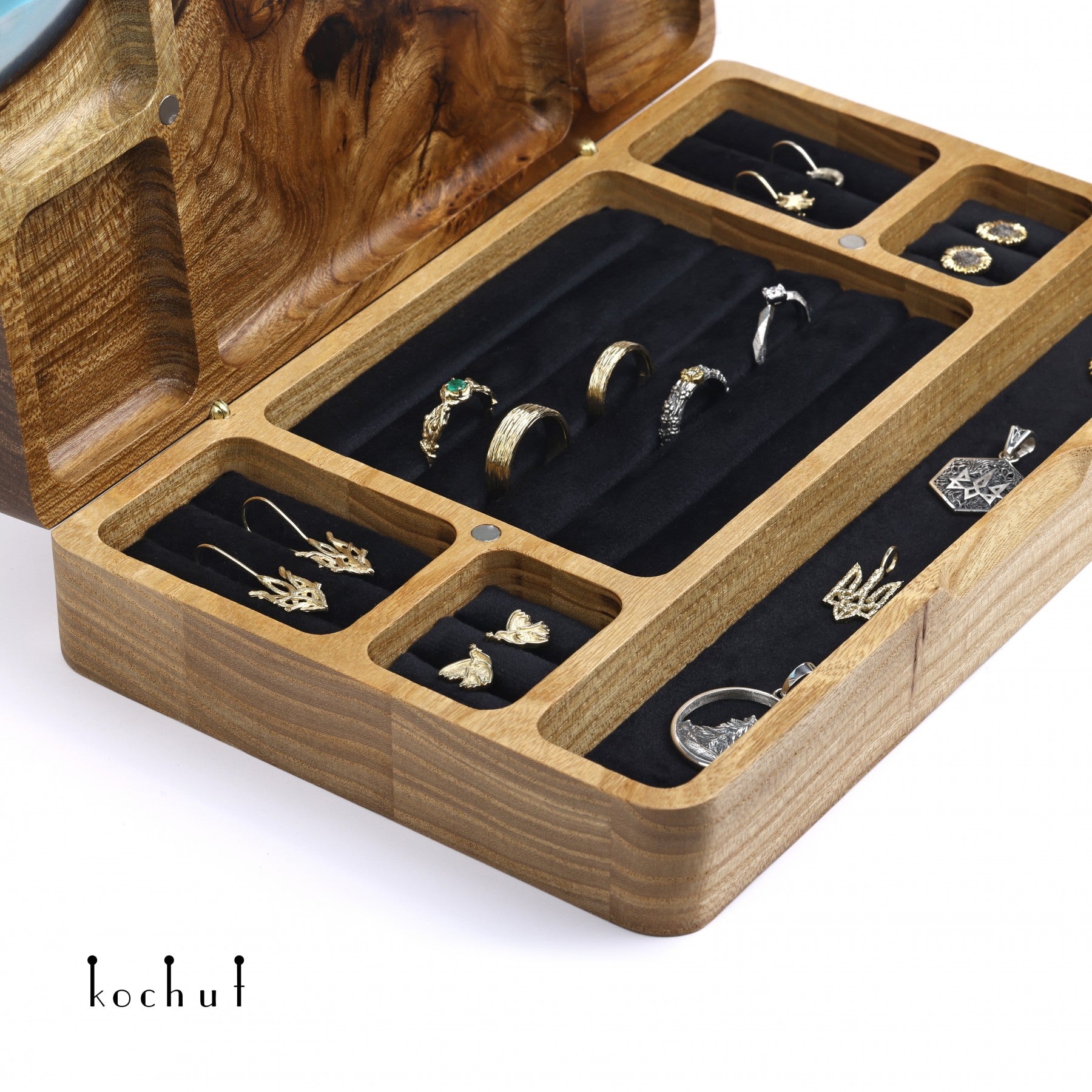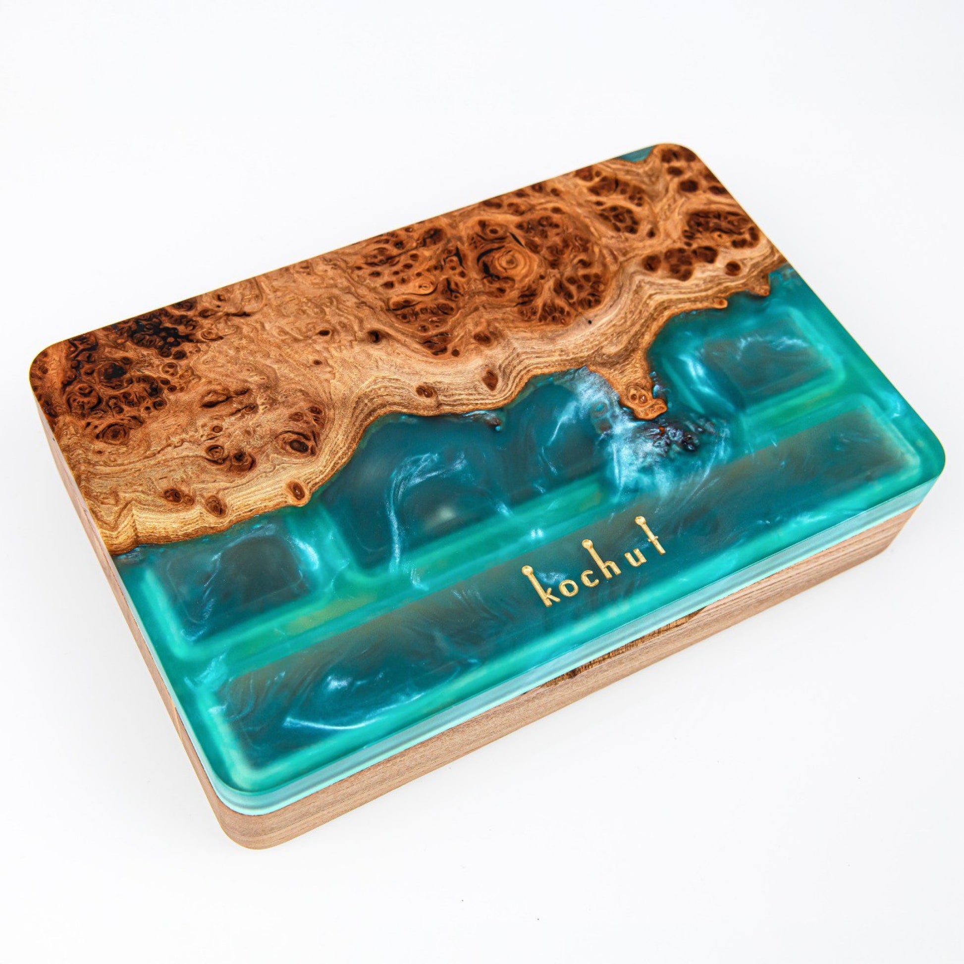 Ornament. Aquamarin — Holz- und Epoxidharz-Schmuckkästchen (Maxi-Größe)