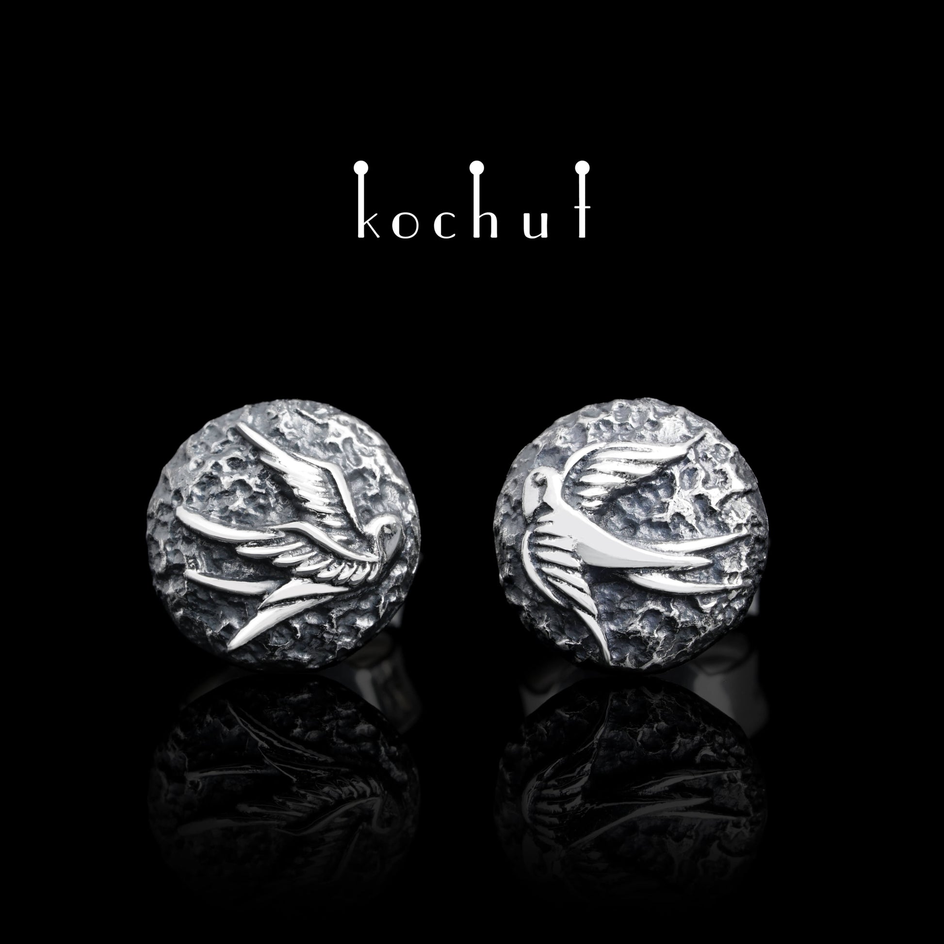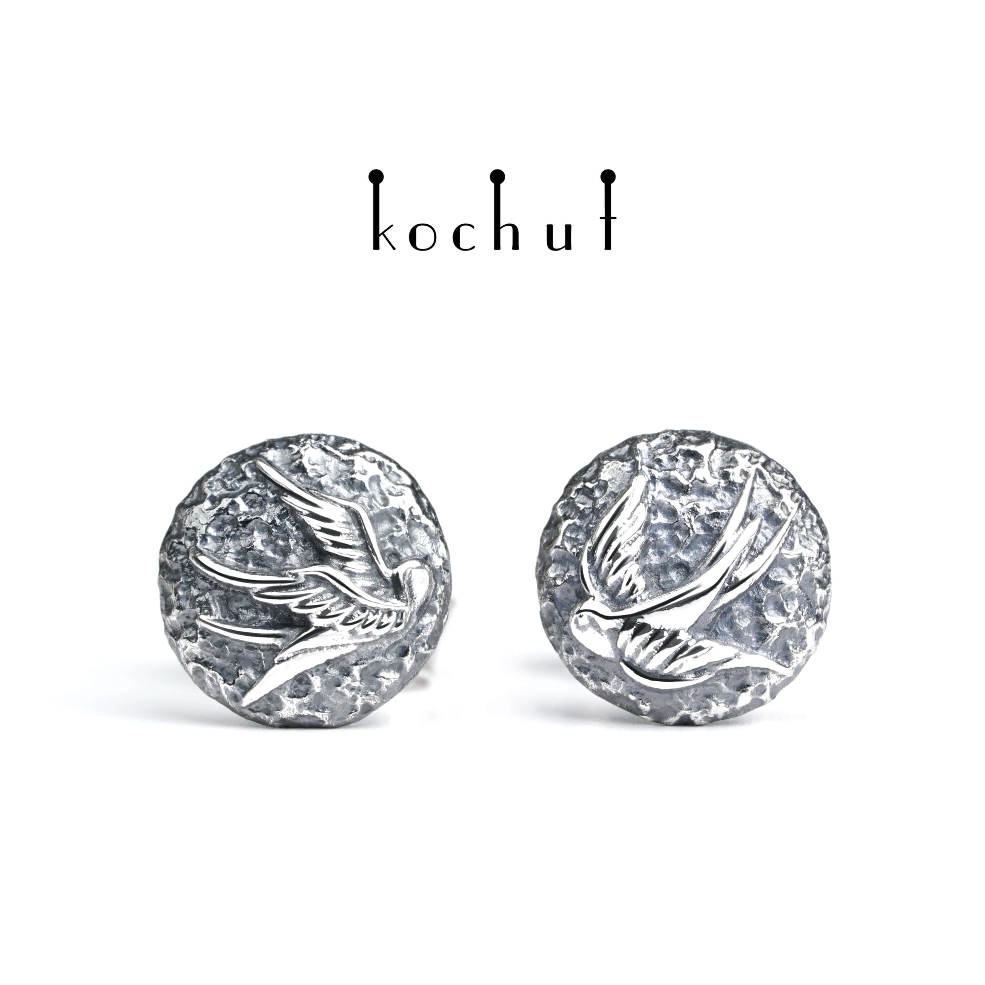 Unsere Ohrringe „Schwalbe“ sind aus oxidiertem Silber gefertigt, mit einer authentischen Textur ihrer Oberfläche.