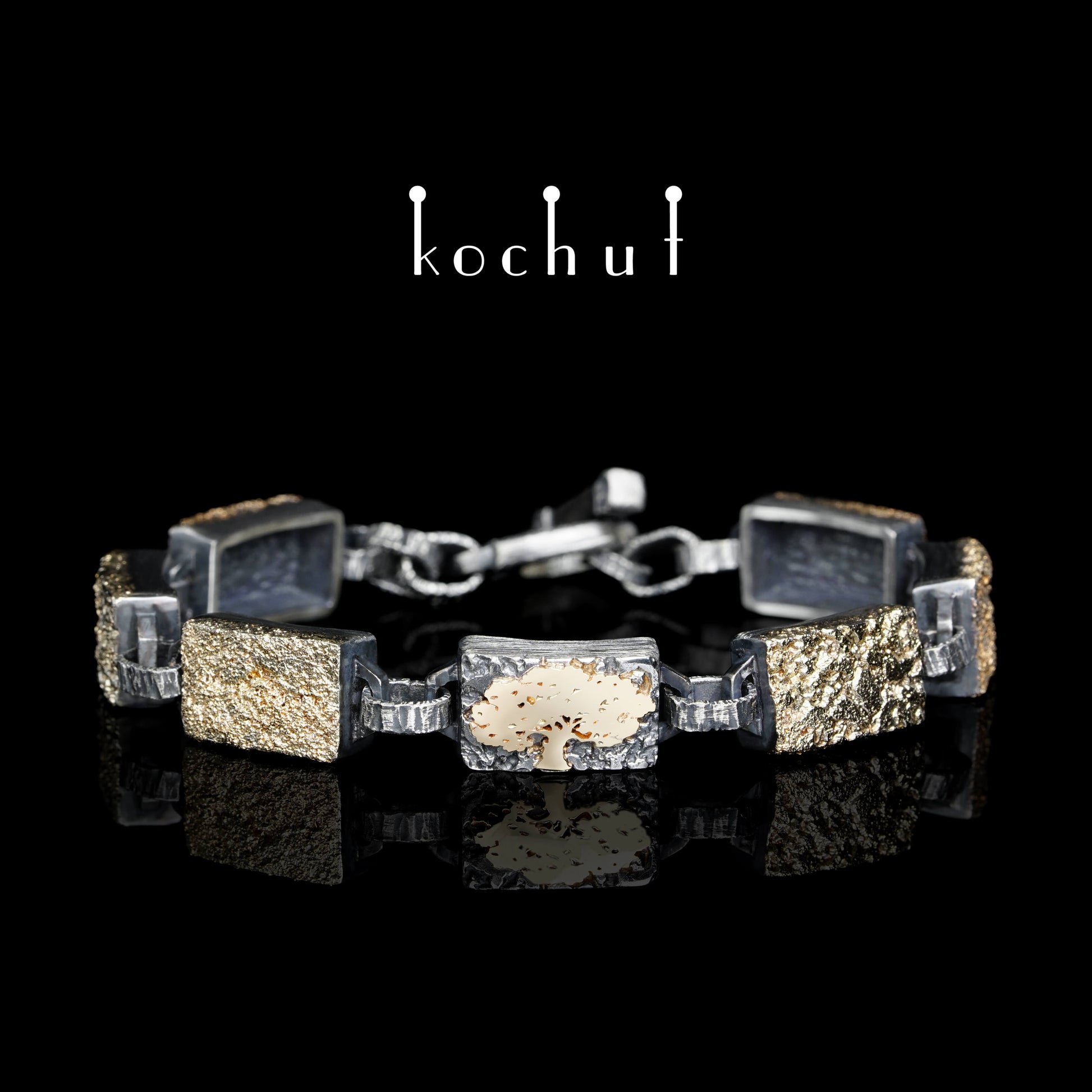 Leib und Seele: Baum des Lebens — Armband aus Gelbgold und oxidiertem Silber