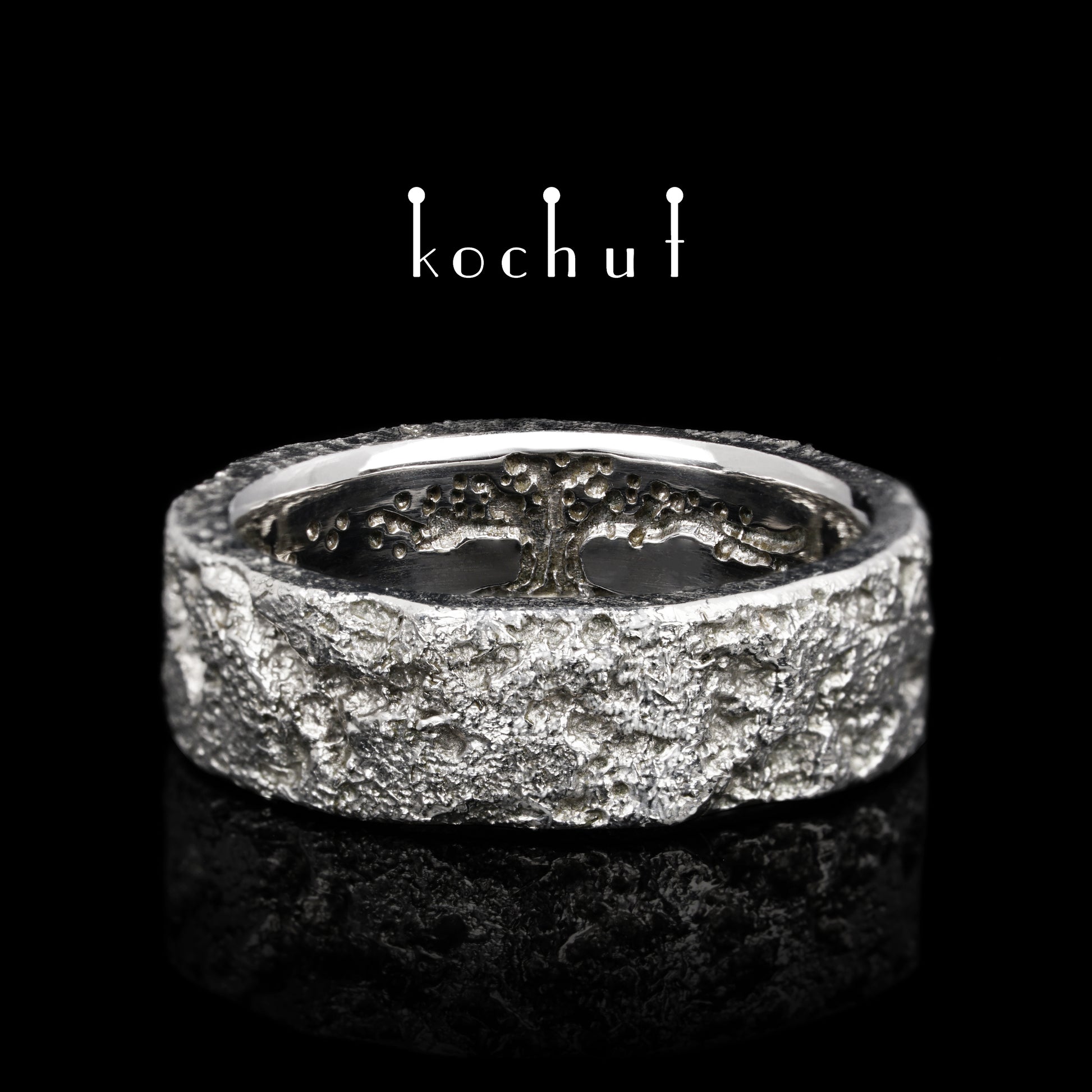 Seele und Körper mit dem Baum des Lebens — Silberring mit Weißgoldbeschichtung, überzogen mit WeißrhODIUM