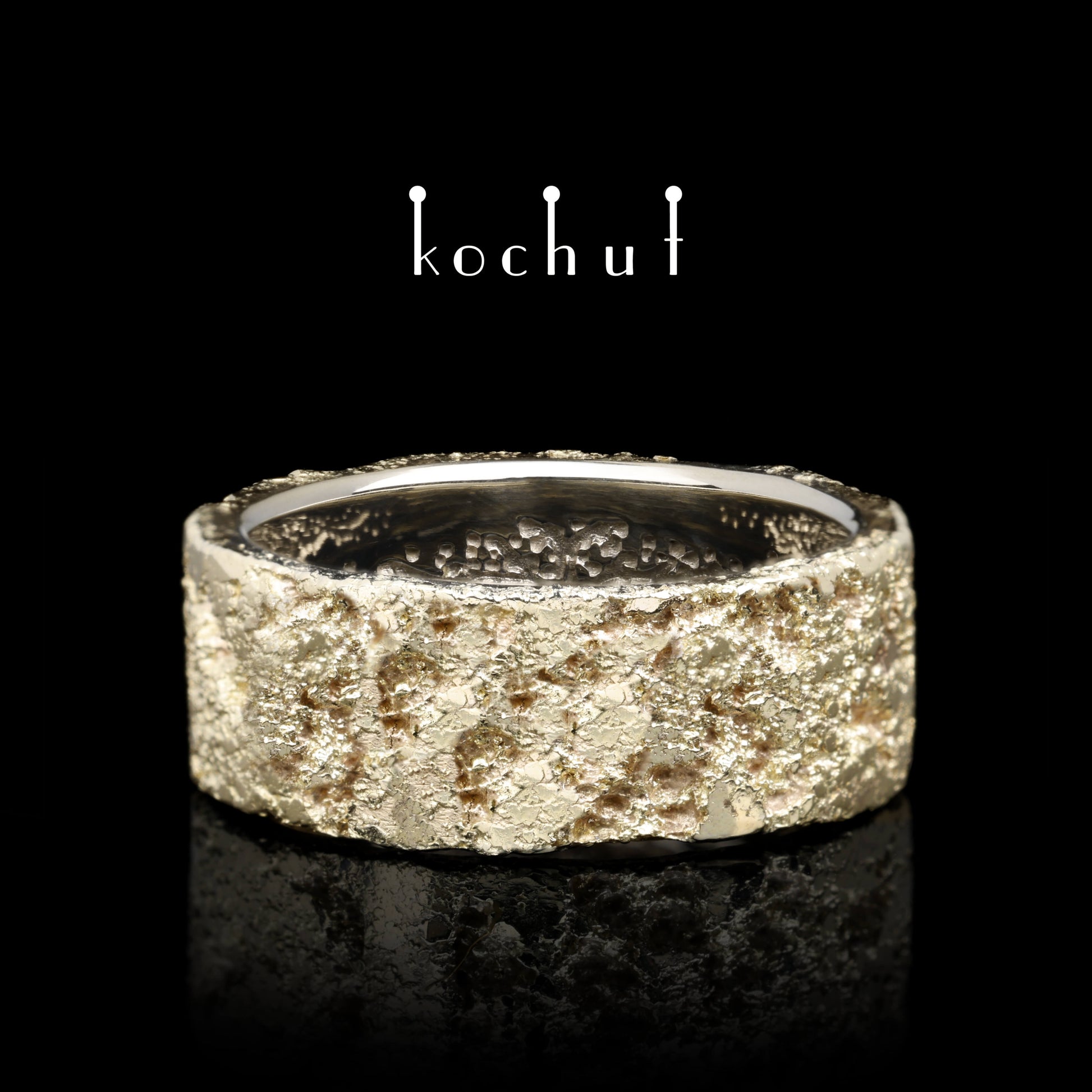 Seele und Körper mit einem Lebensbaum und Schmiedelicht — Ring aus Gelb- und Weißgold