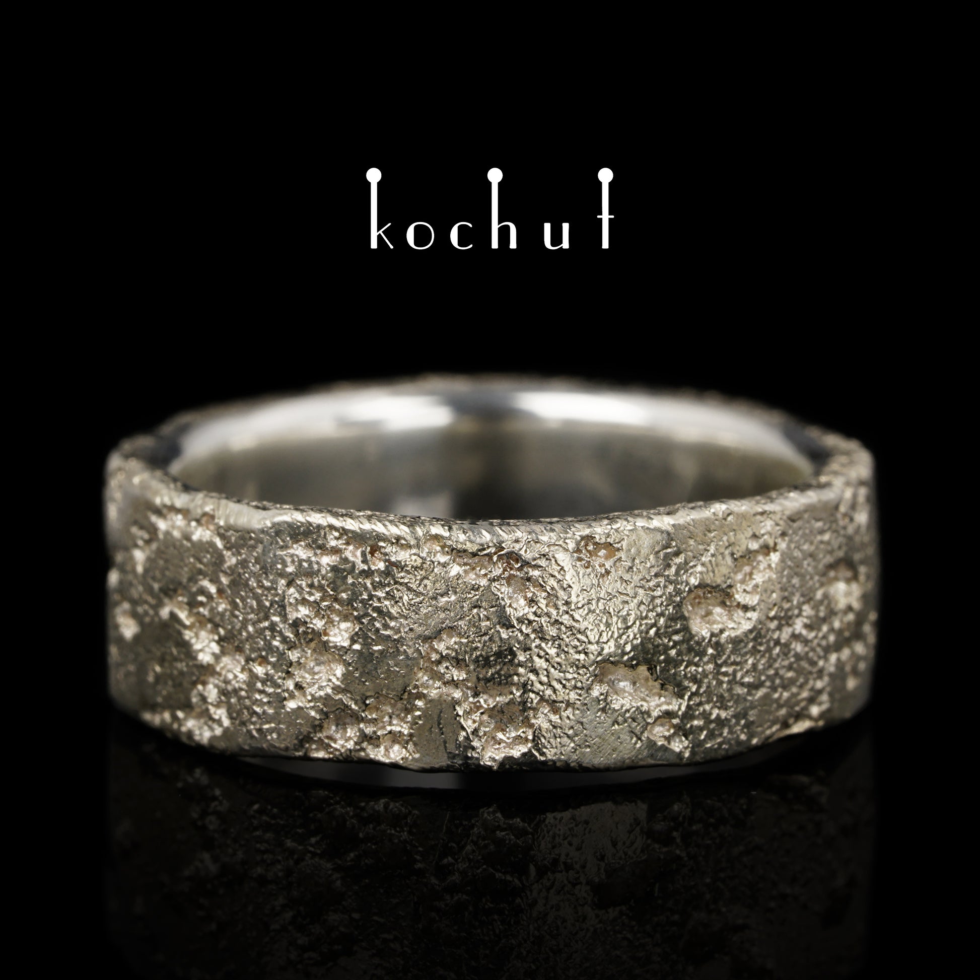 Leib und Seele mit Schmiedekunst Licht — ein silberner Ehering mit Weißgoldbeschichtung