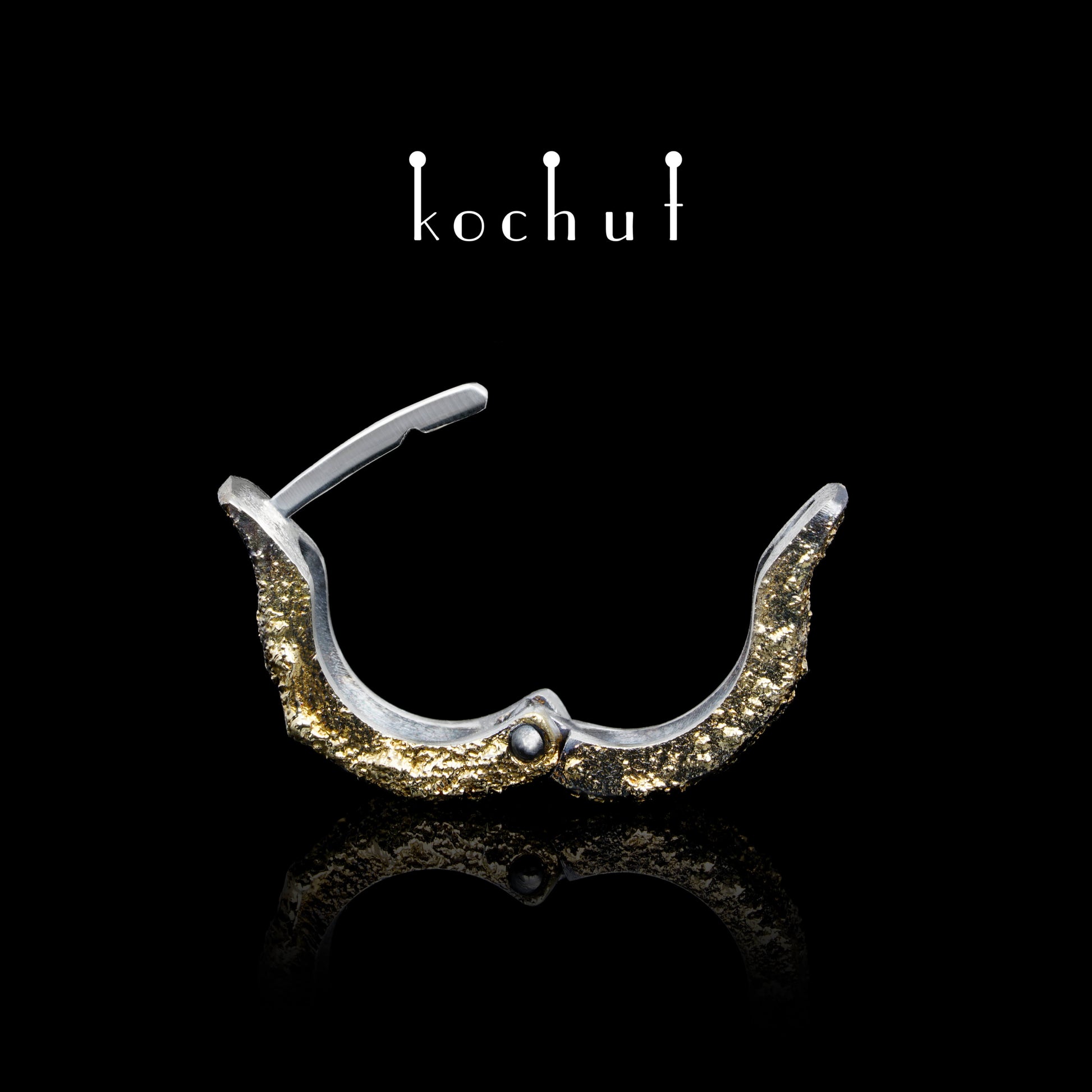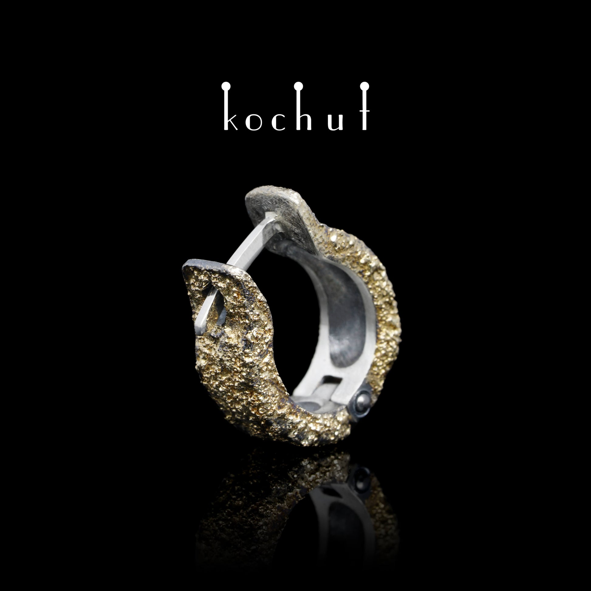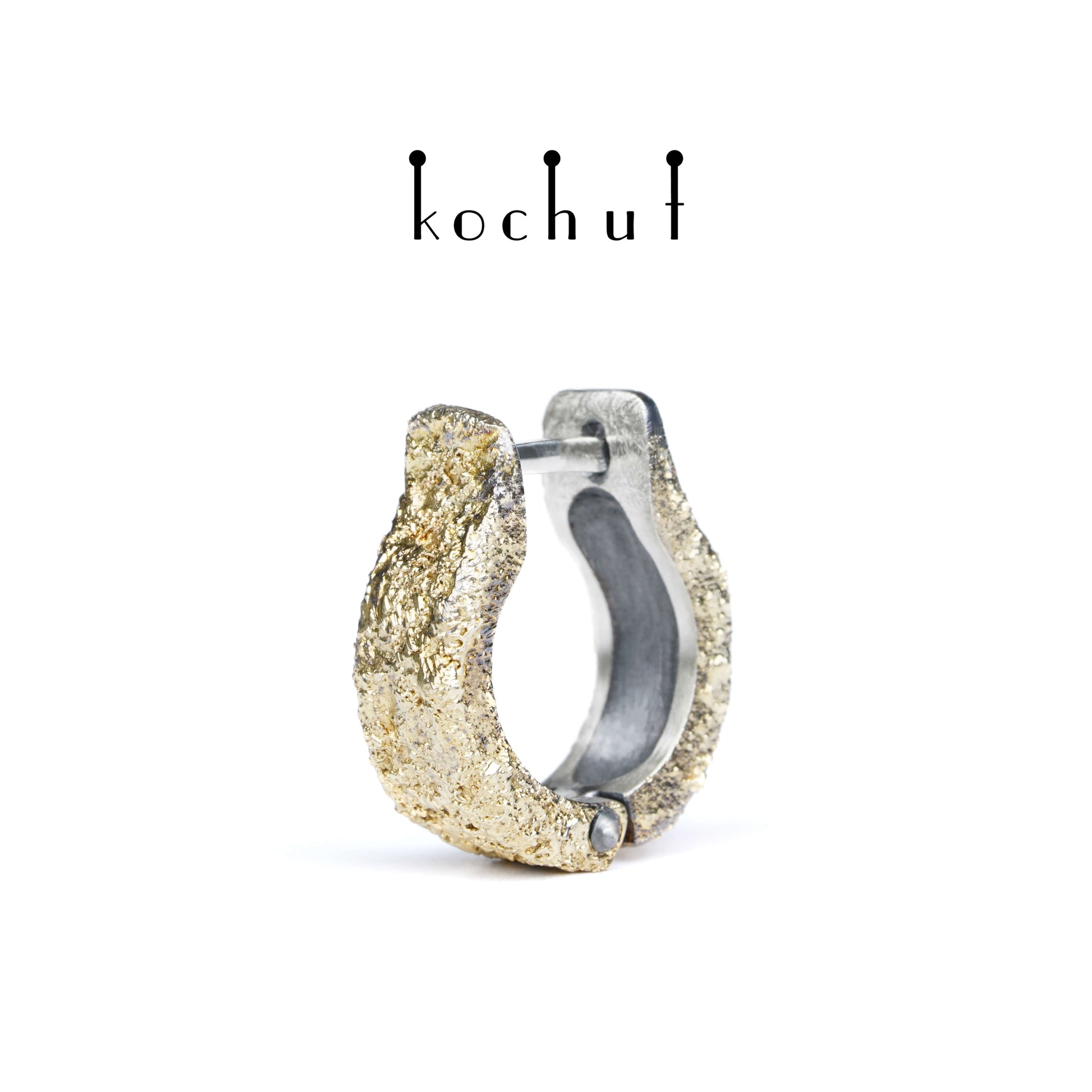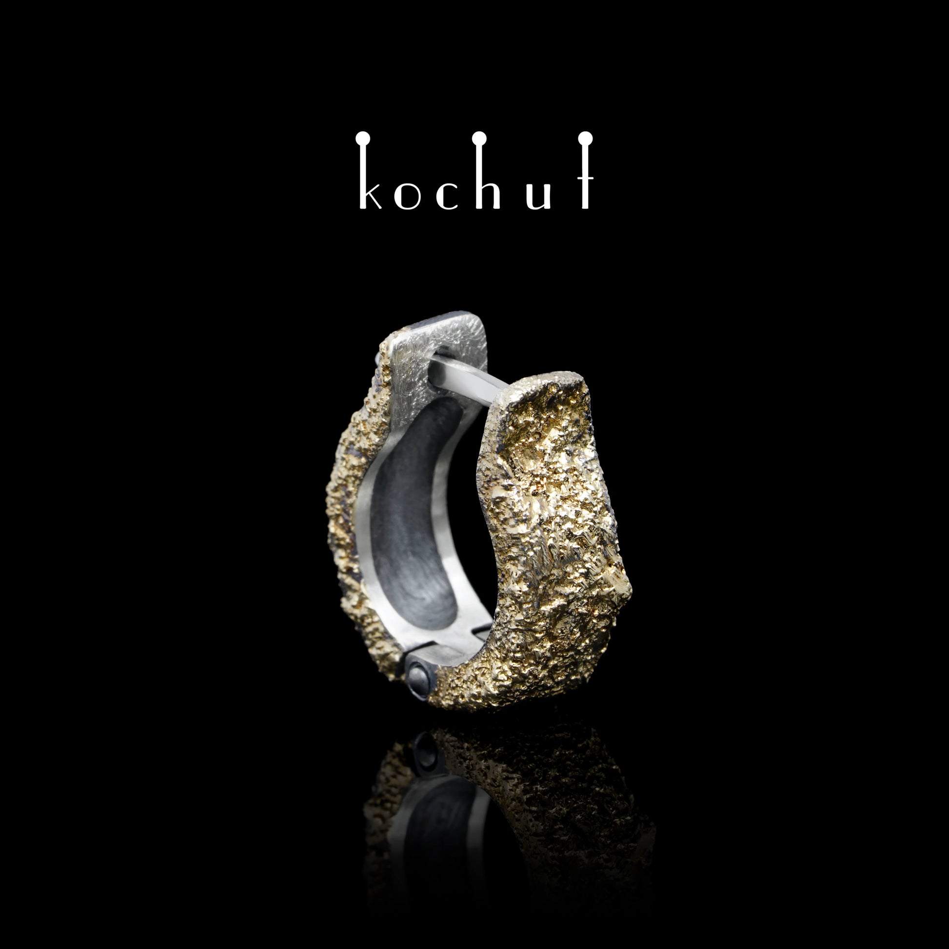 Leib und Seele — Ohrring aus oxidiertem Silber und gelbem Gold mit Oberflächenbearbeitung
