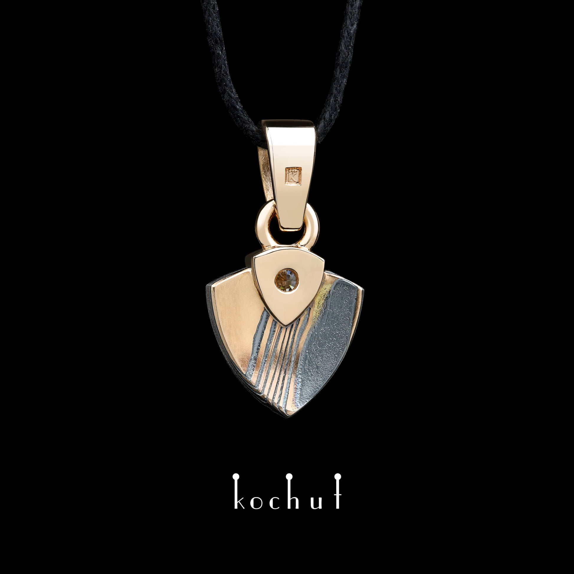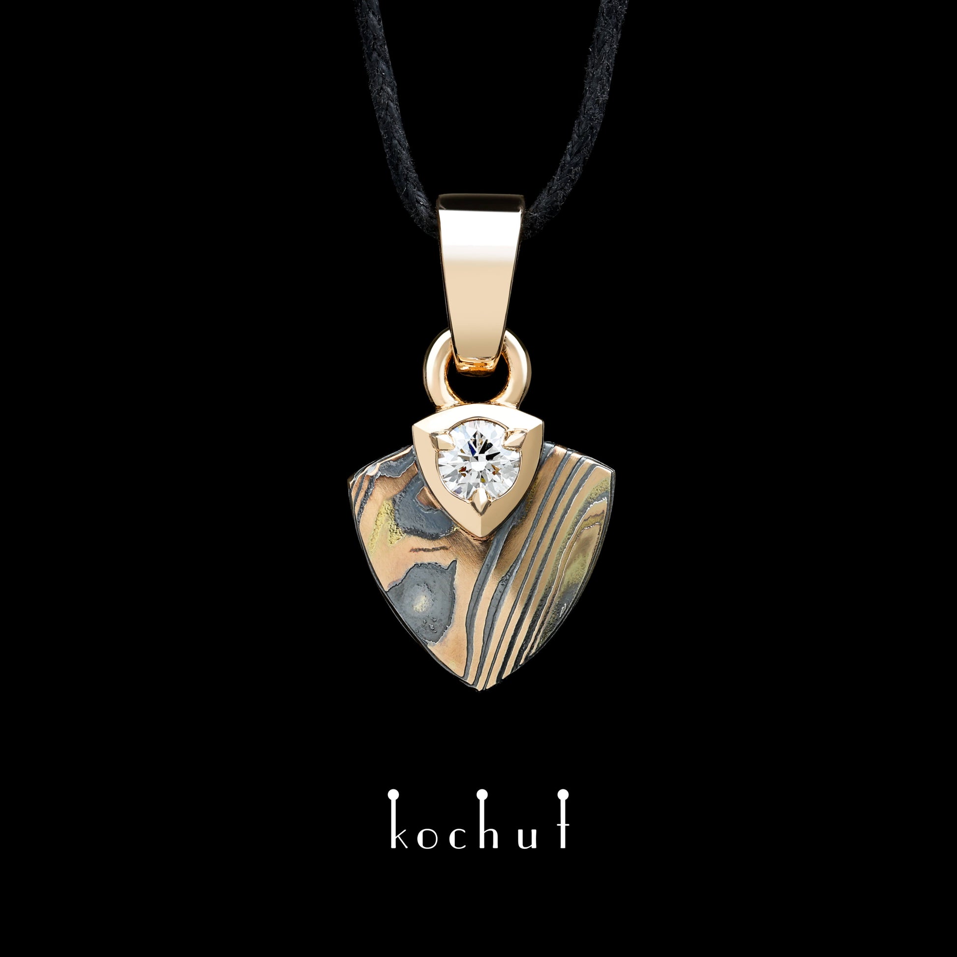 Seishi — Mokume-Anhänger aus Rotgold, oxidiertem und geätztem Silber mit Diamant