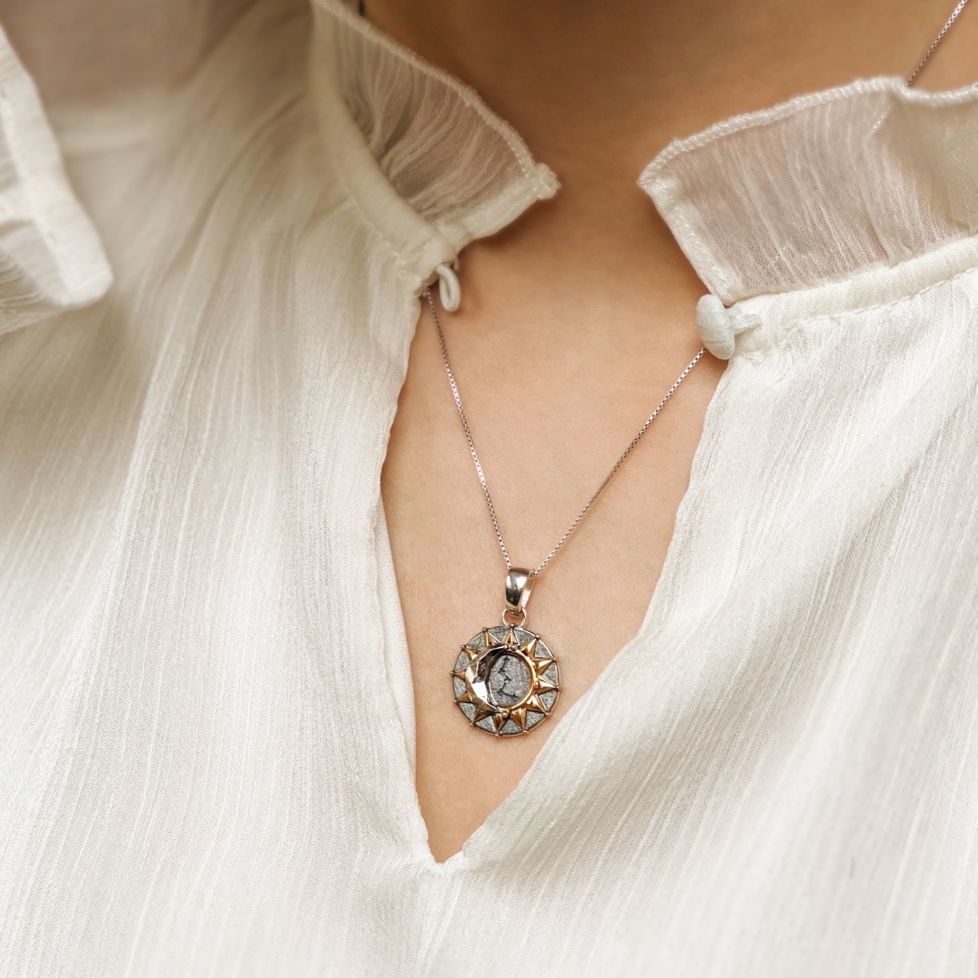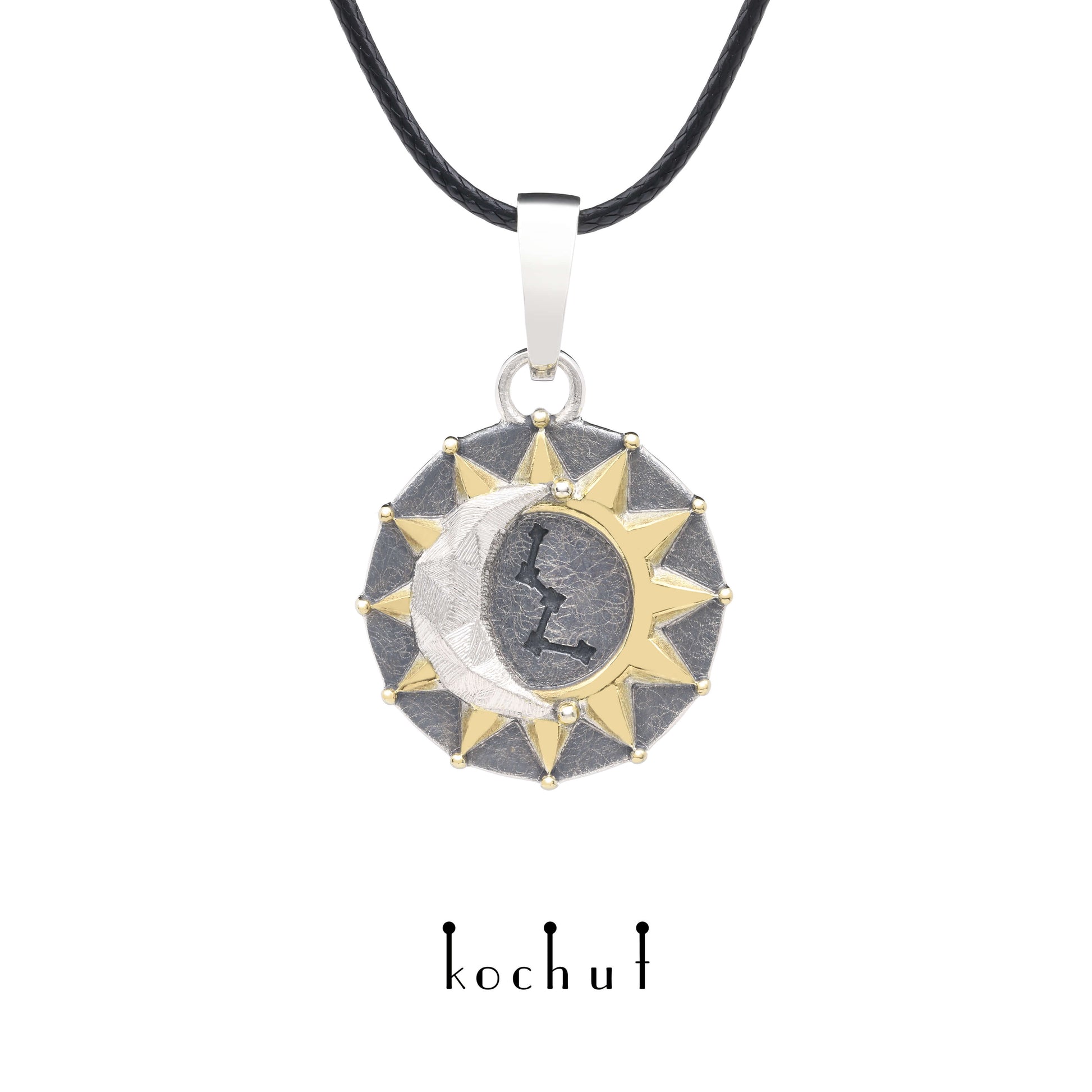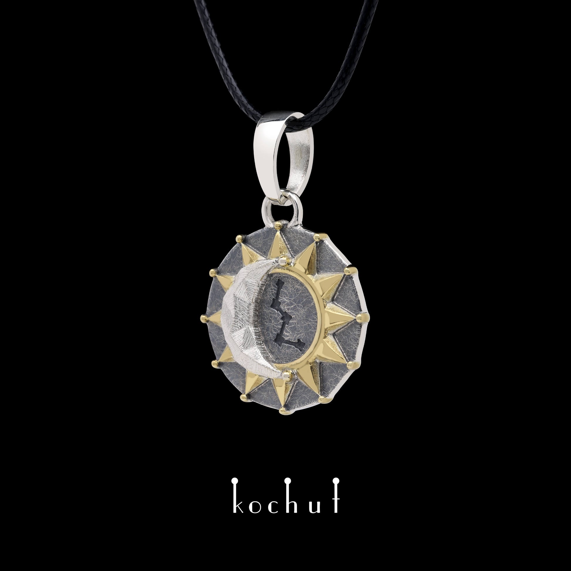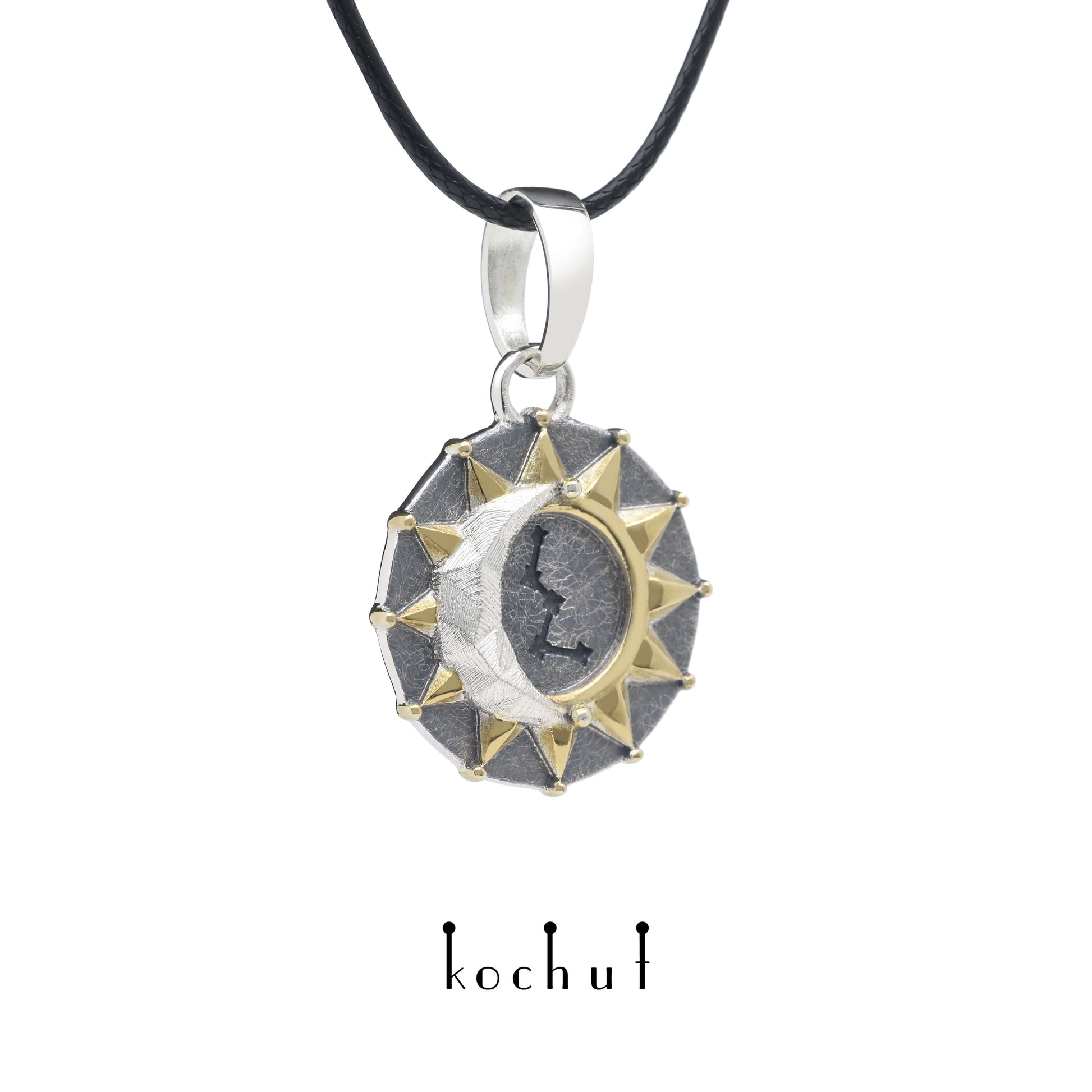 Sonne und Mond — Anhänger aus oxidiertem Silber mit Vergoldung