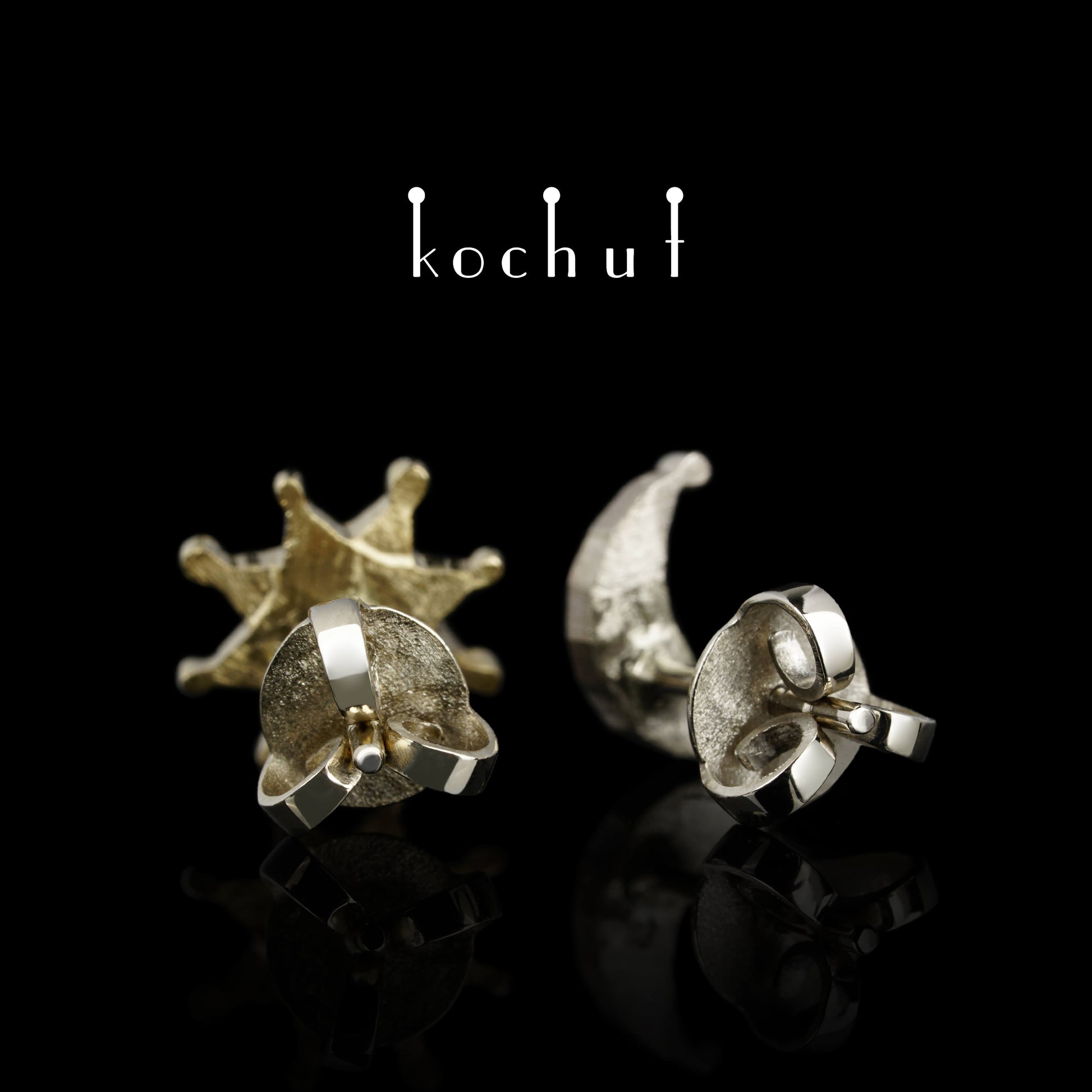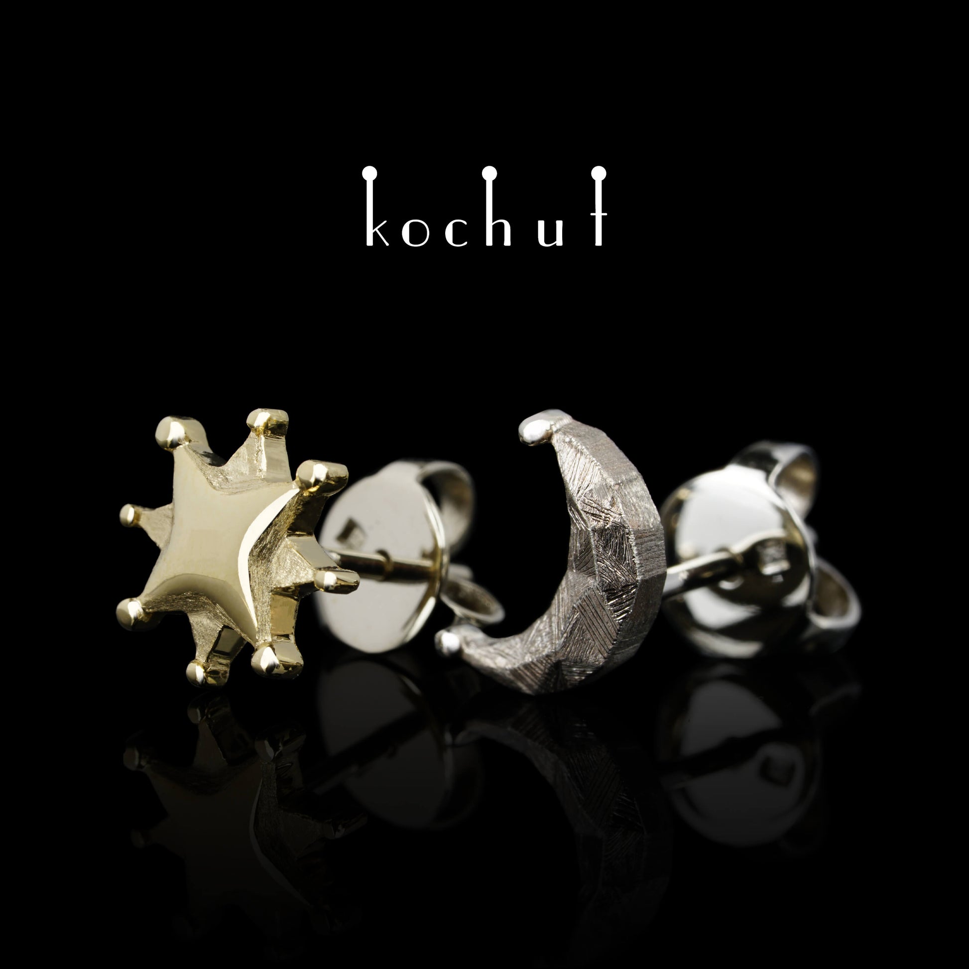 Sonne und Mond — Ohrringe aus Weiß- und Gelbgold