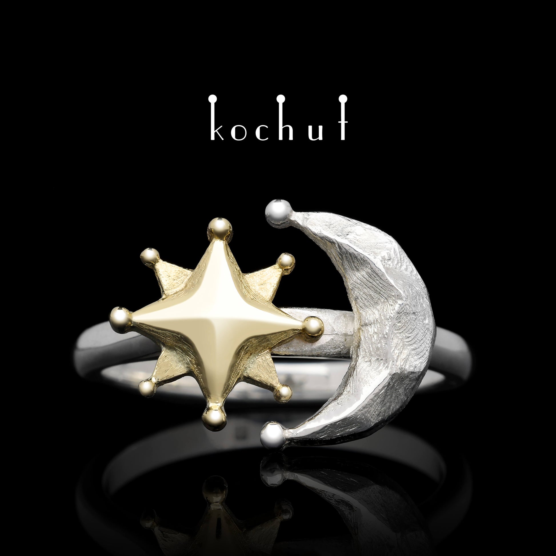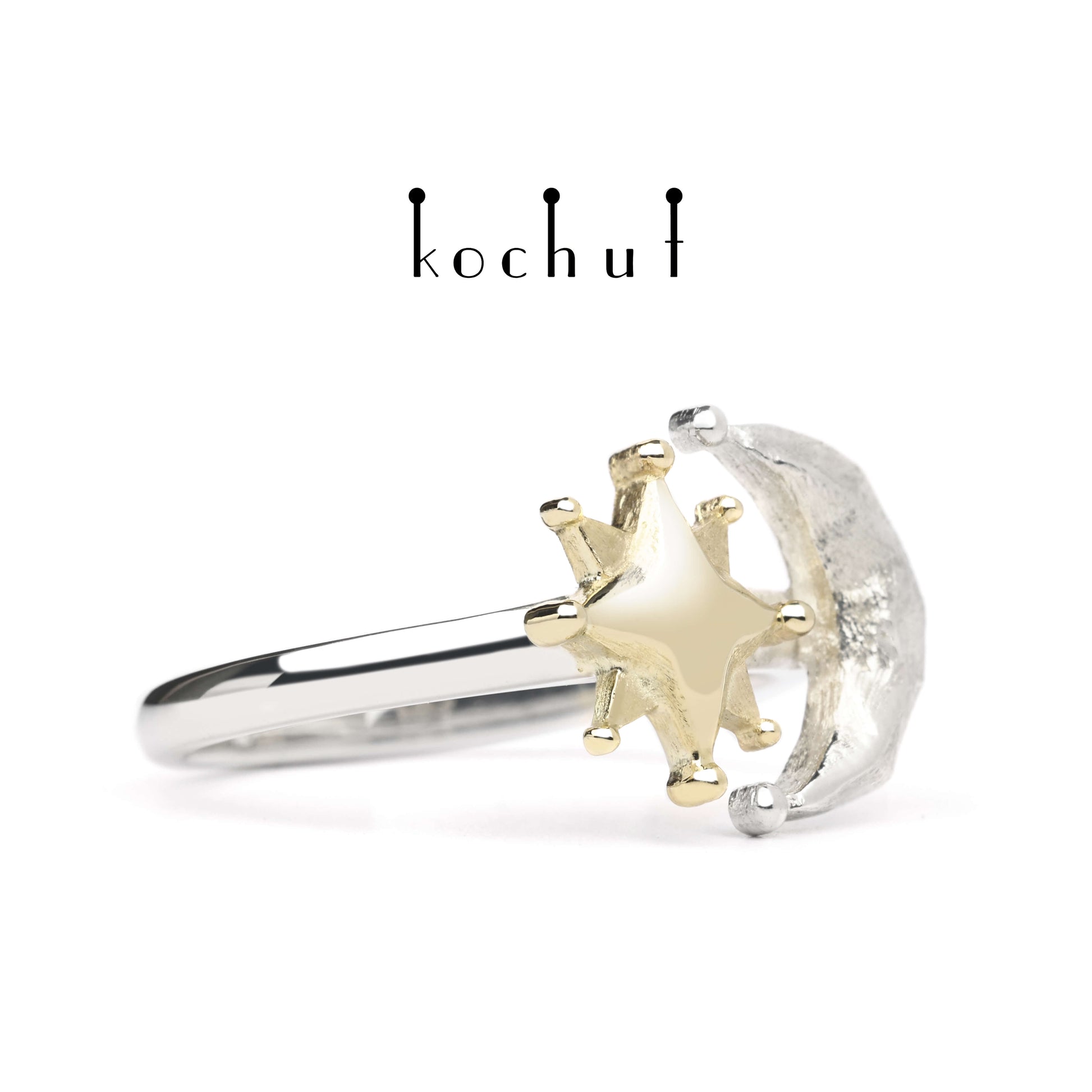 Sonne und Mond — Ring aus Gelbgold und Silber