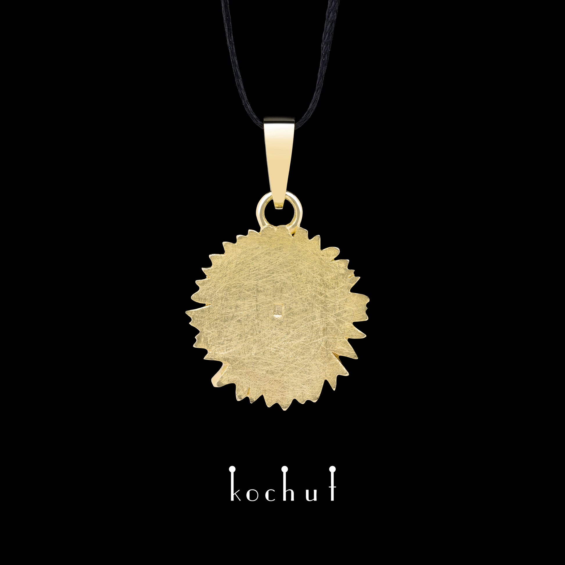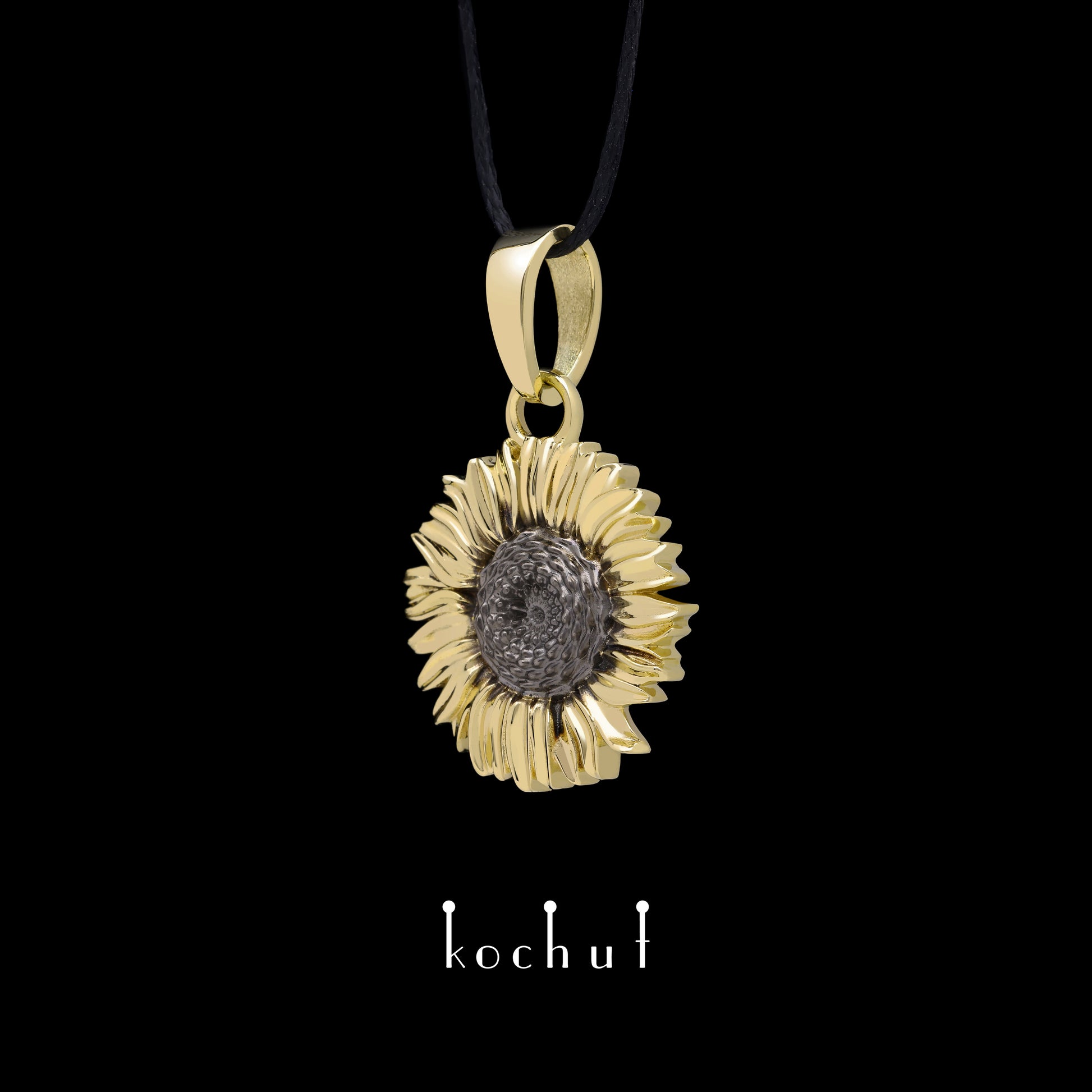 Sonnenblume — Anhänger aus Gelbgold, überzogen mit schwarzem Rhodium