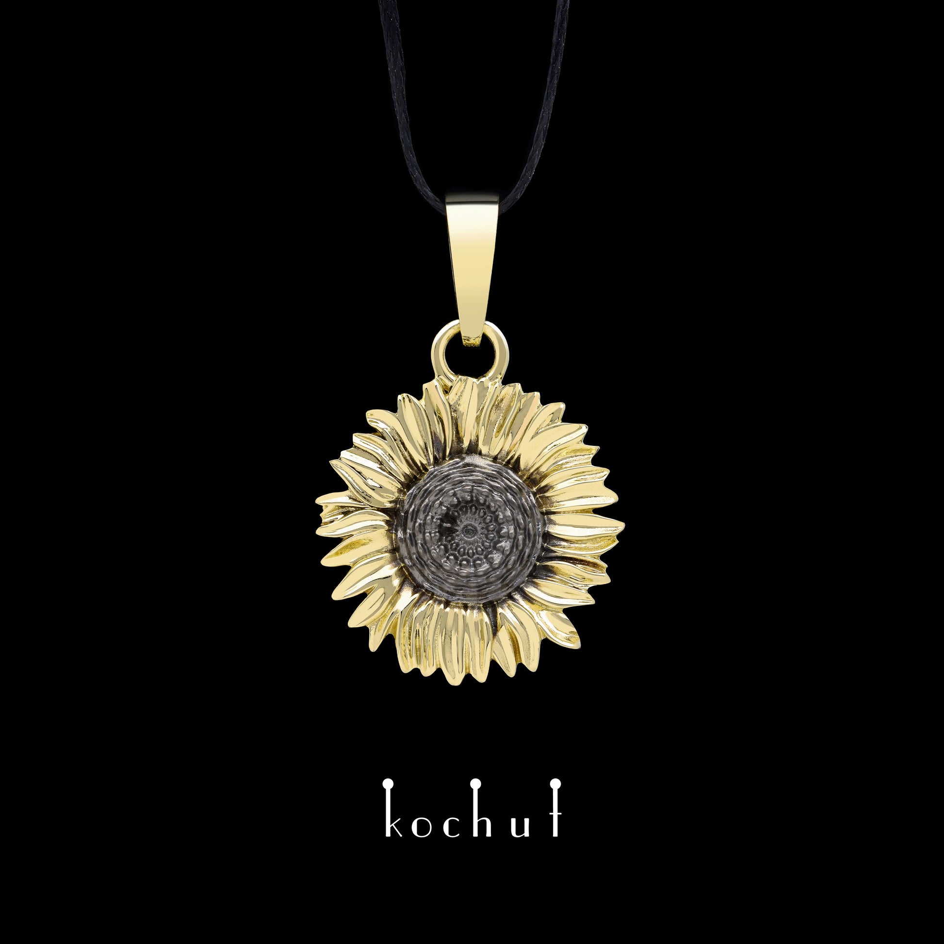 Und heute Morgen, zusammen mit Tausenden anderer Sonnen, erhob sich ein weiterer «Sonnenblume» auf ukrainischem Boden — ein Anhänger voller Wärme und dem Duft von Nektar. Aus warmem Silber gefertigt, erblüht er spektakulär in glänzendem Gold. Möchten Sie eine Offenbarungsblume über Ihr Herz tragen?