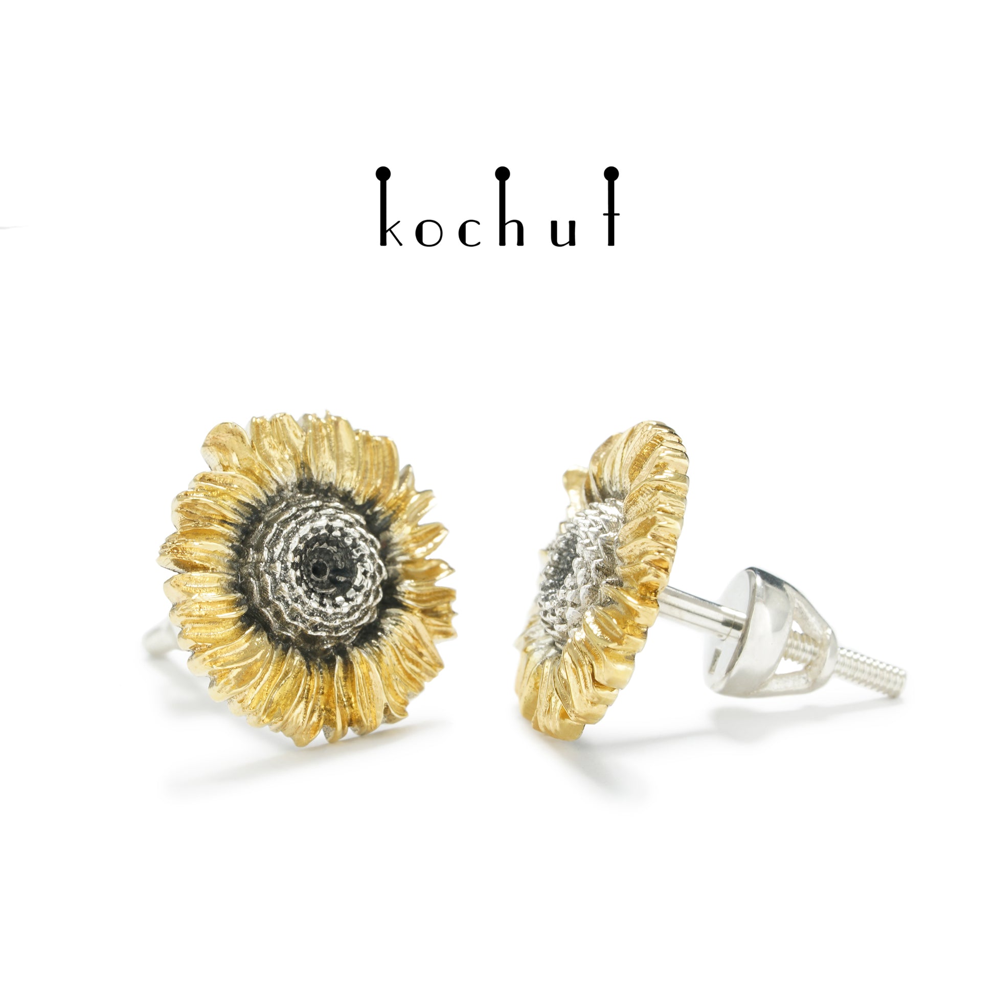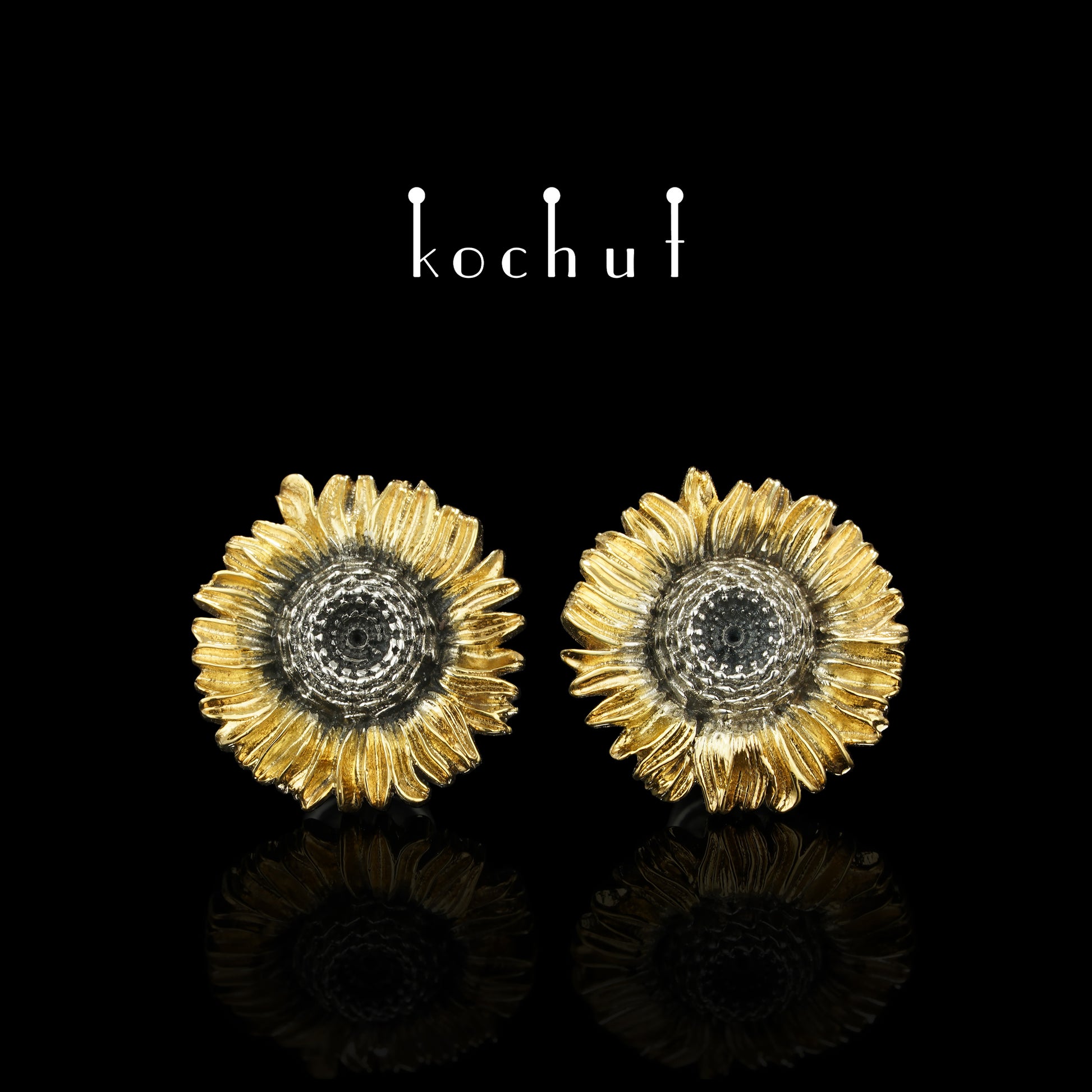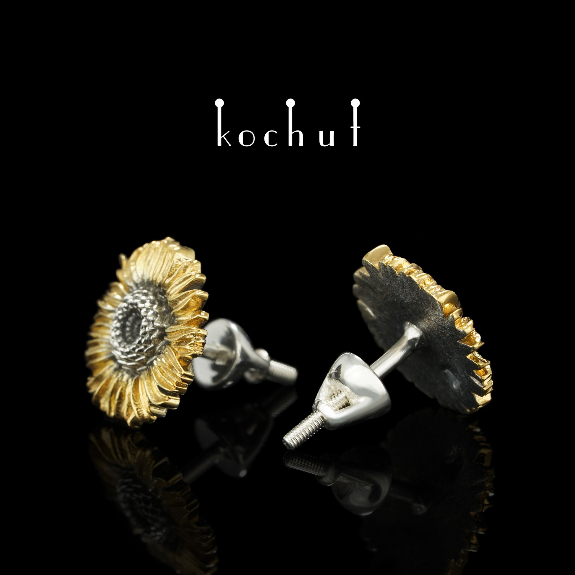 Sonnenblumen — Ohrringe aus oxidiertem Silber mit Vergoldung