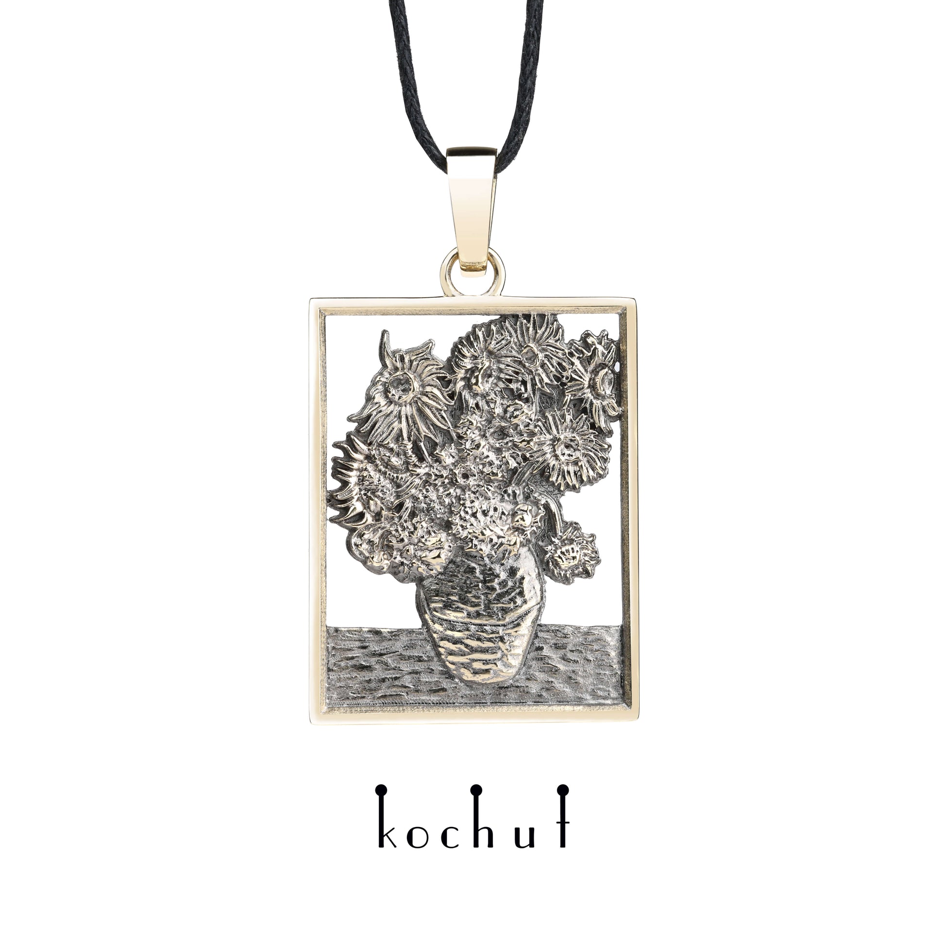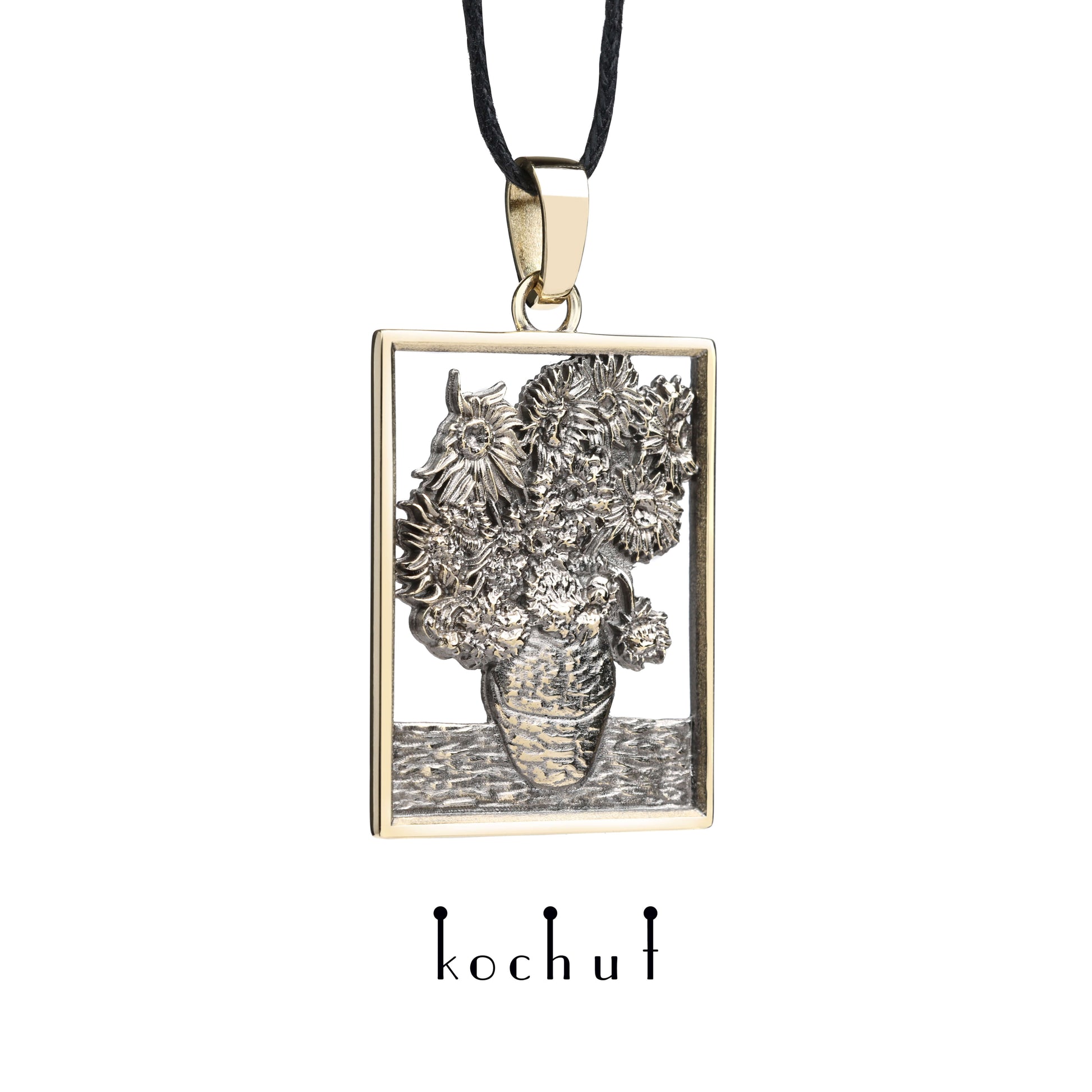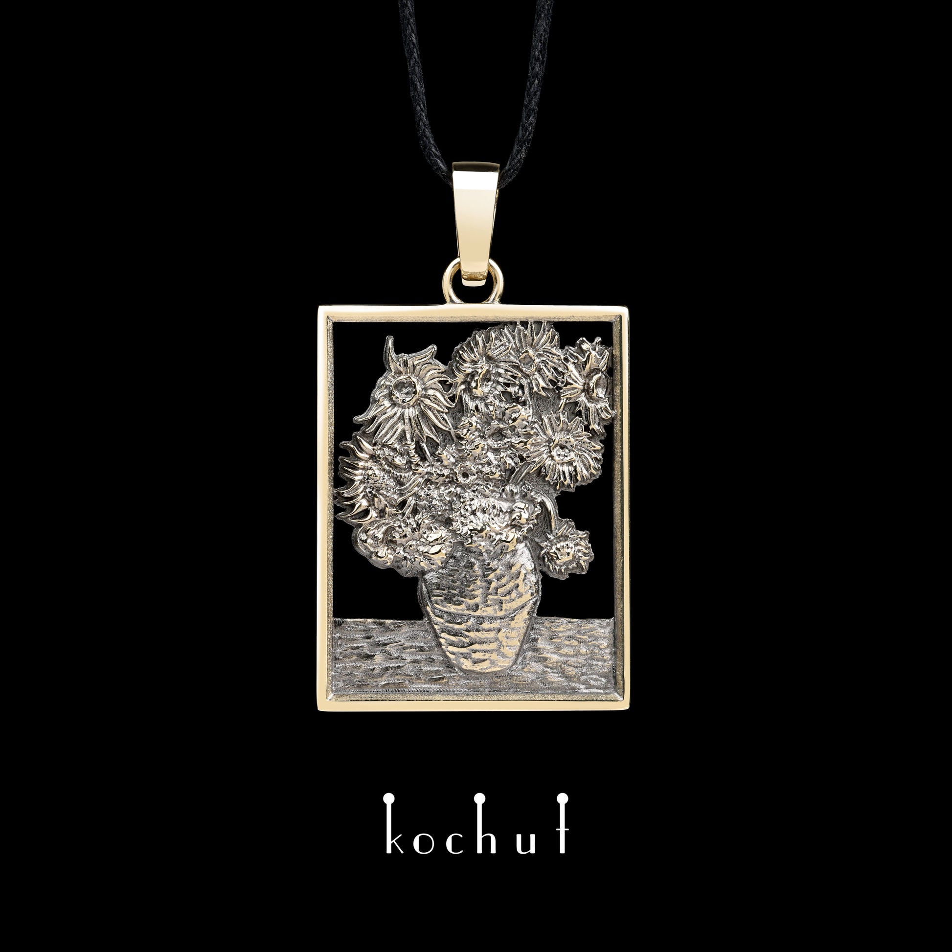 Sonnenblumen Van Gogh — Anhänger aus Gelbgold, beschichtet mit schwarzem Rhodium