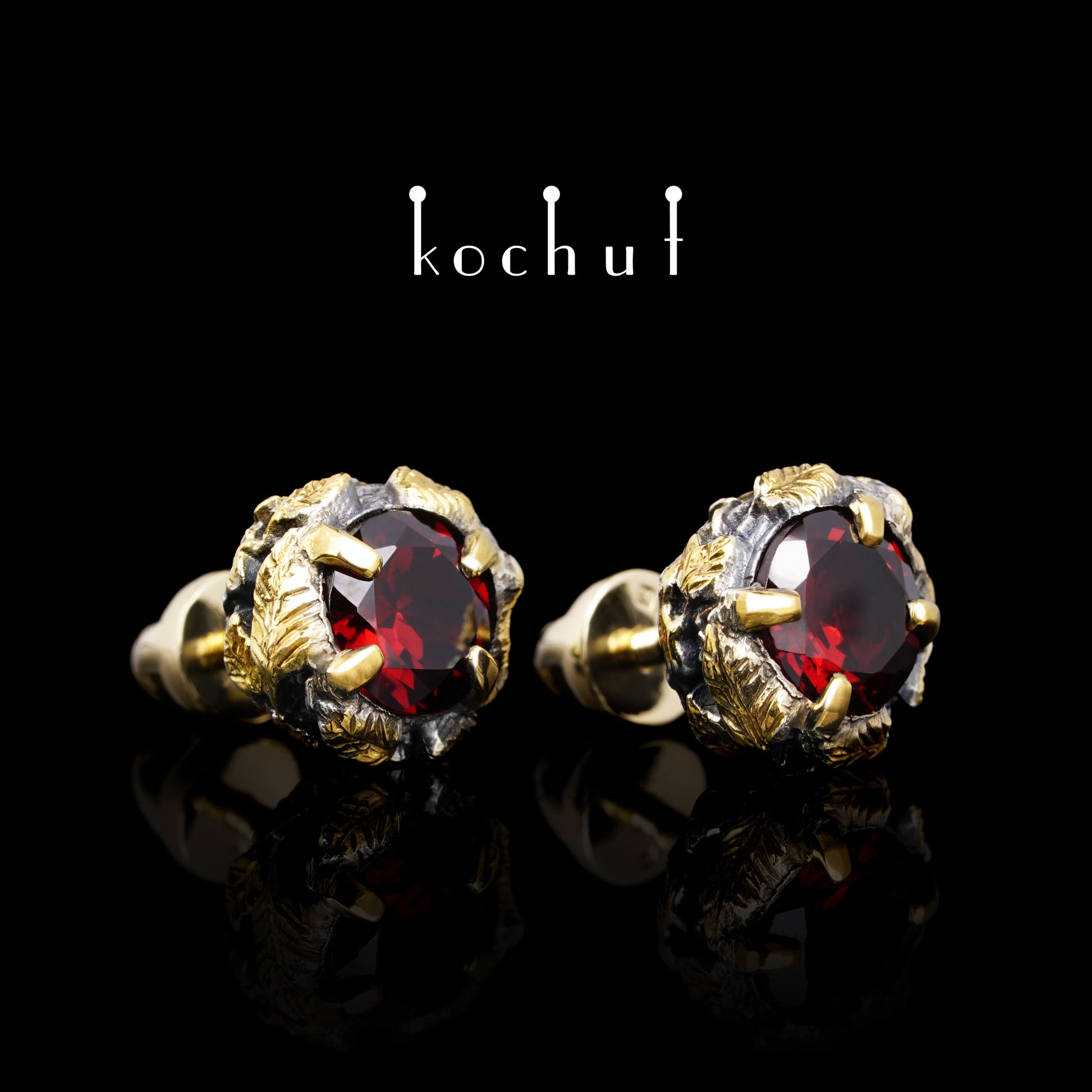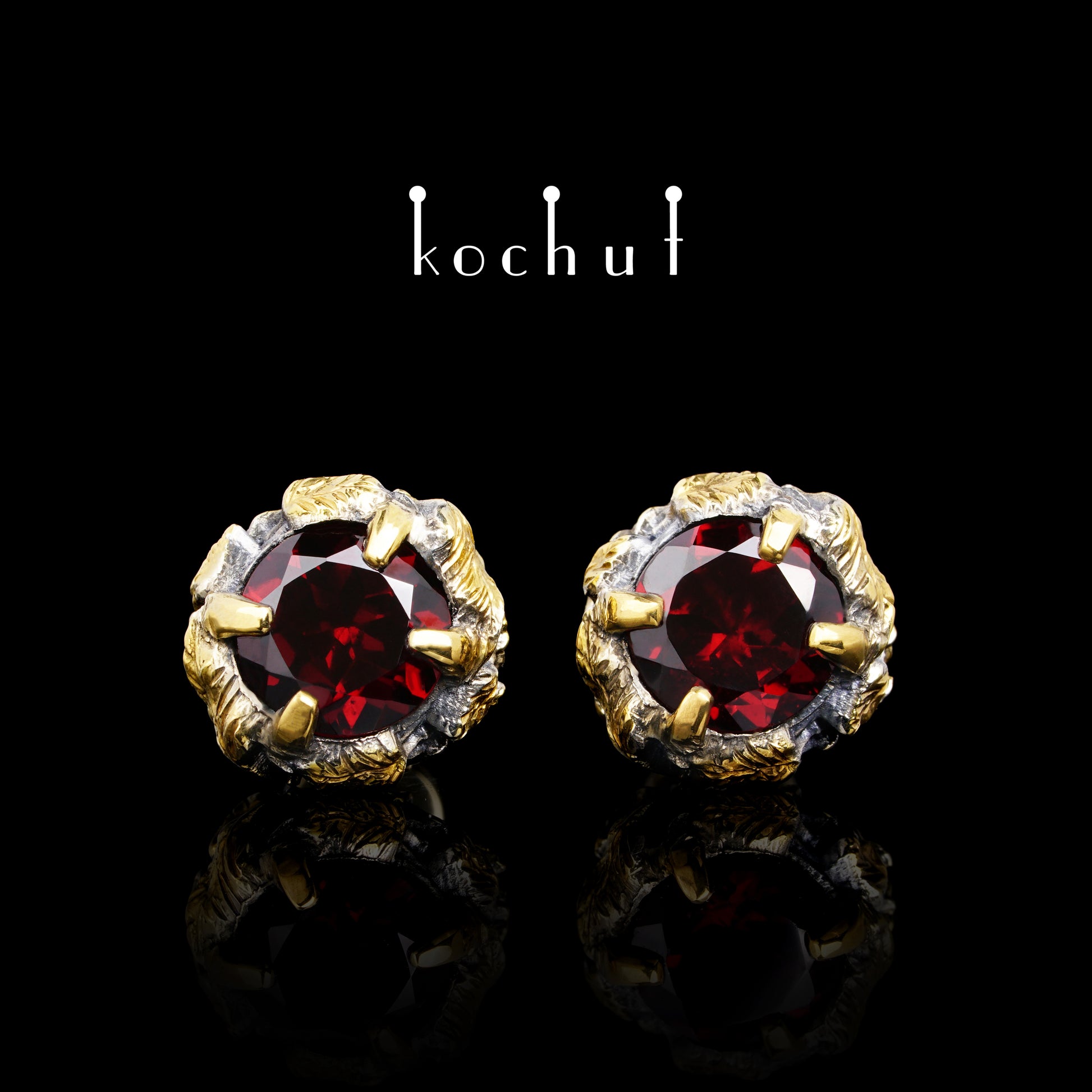 Silber, Vergoldung, rote Granate. Drehen – aus gelbem Gold.
