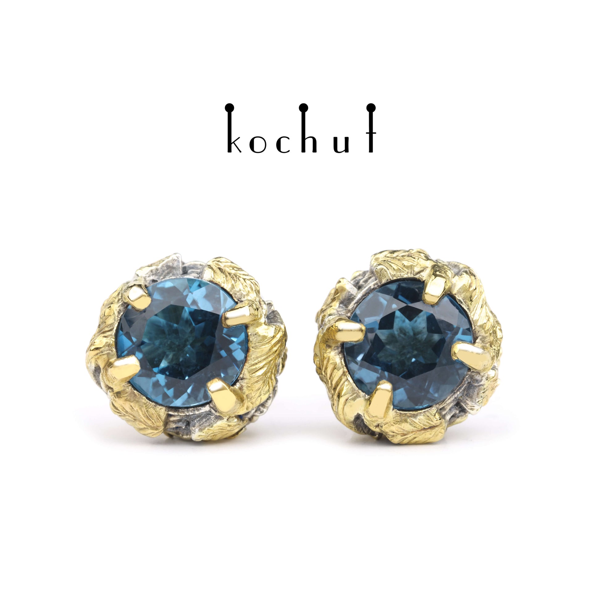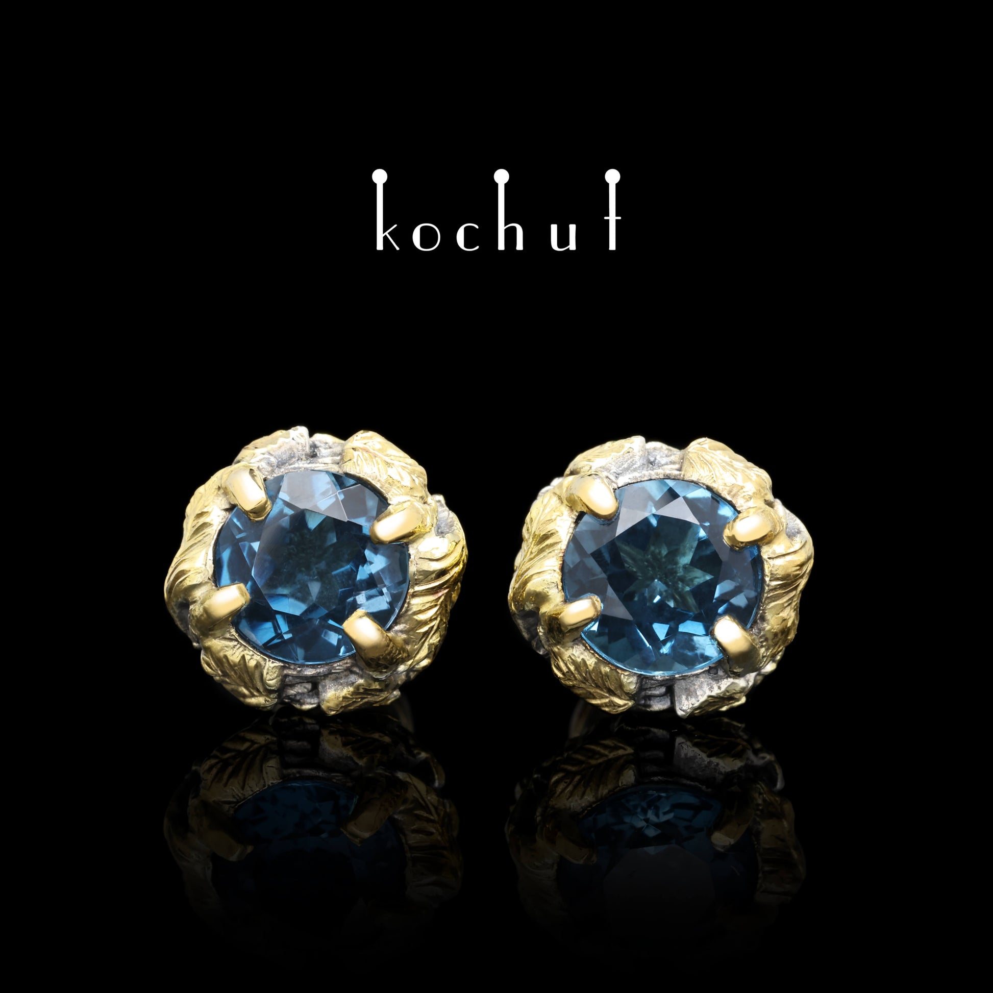 Sonniger Wald — Ohrringe aus oxidiertem Silber und Gelbgold mit Topasen und Vergoldung