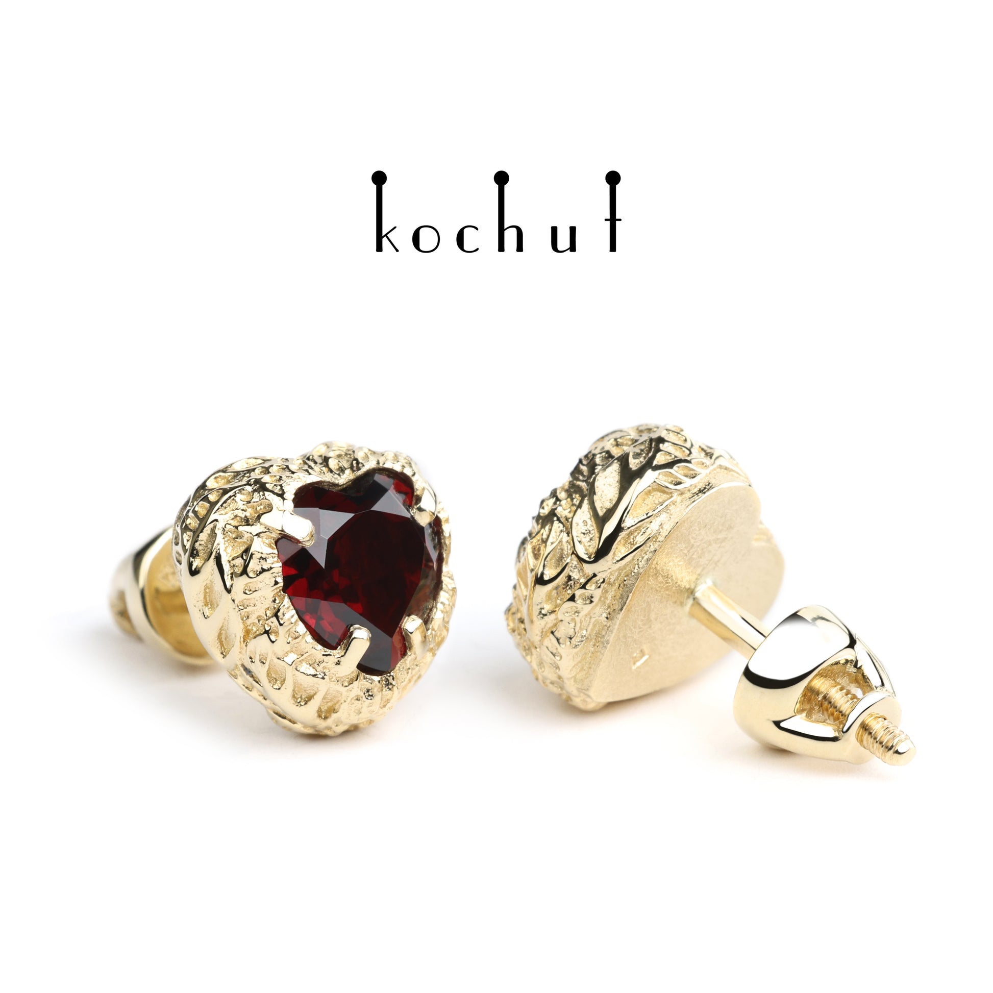 Sonniger Wald: Verliebtsein — Ohrstecker aus Gelbgold mit Granaten