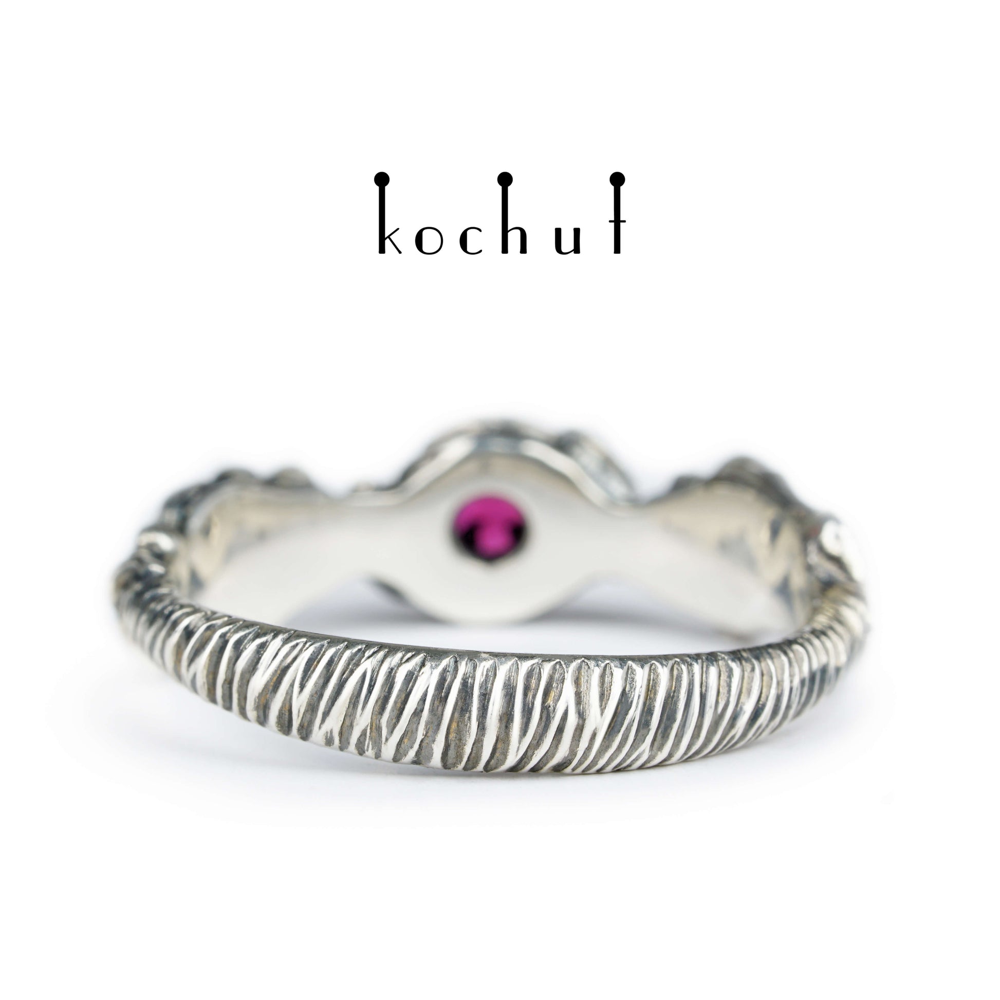 Sprossen — Ring aus oxidiertem Silber mit Rhodolith-Granat