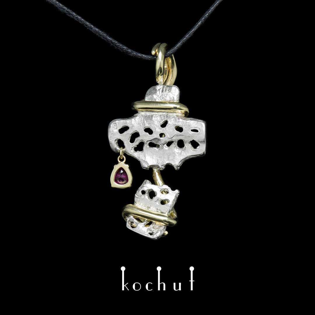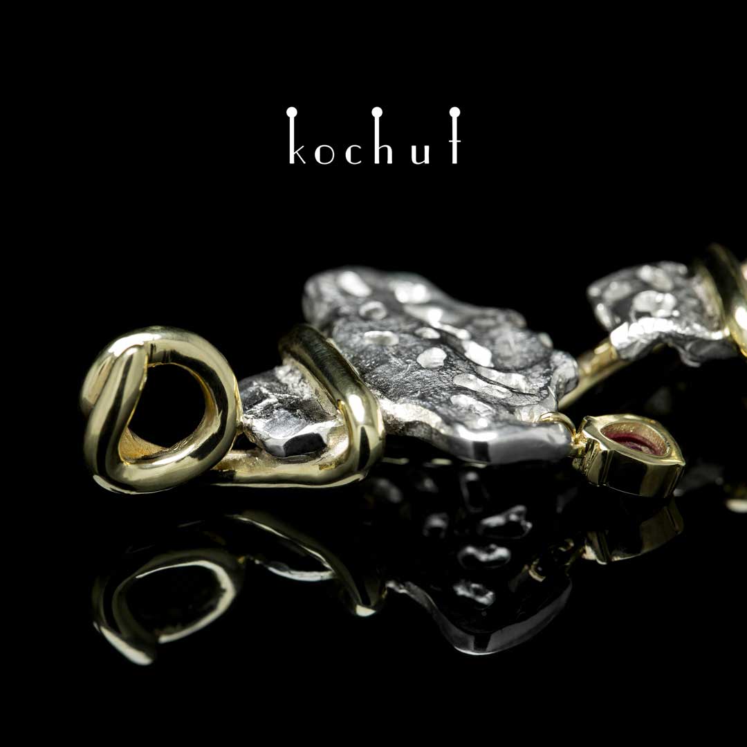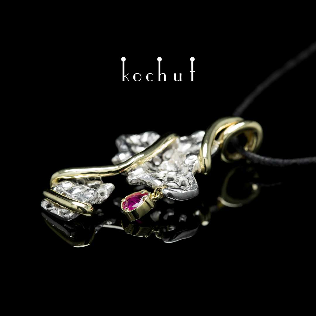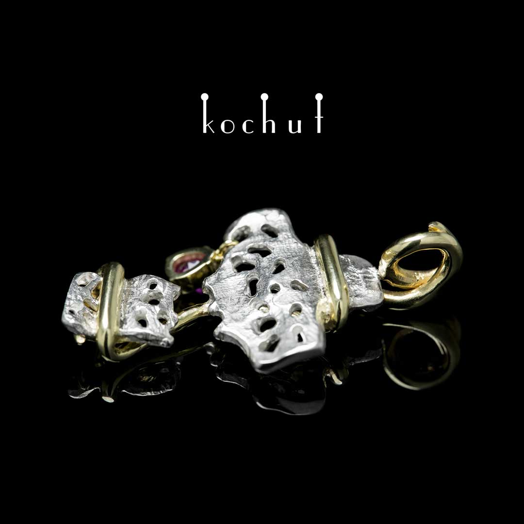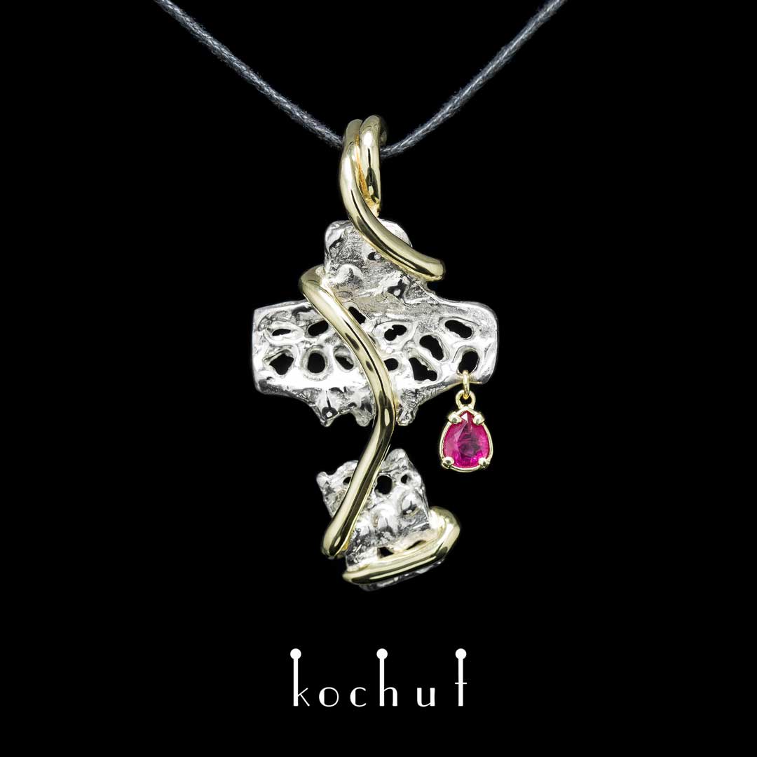 Stärke der Hoffnung — Kreuz aus Silber und Gelbgold mit Rubin