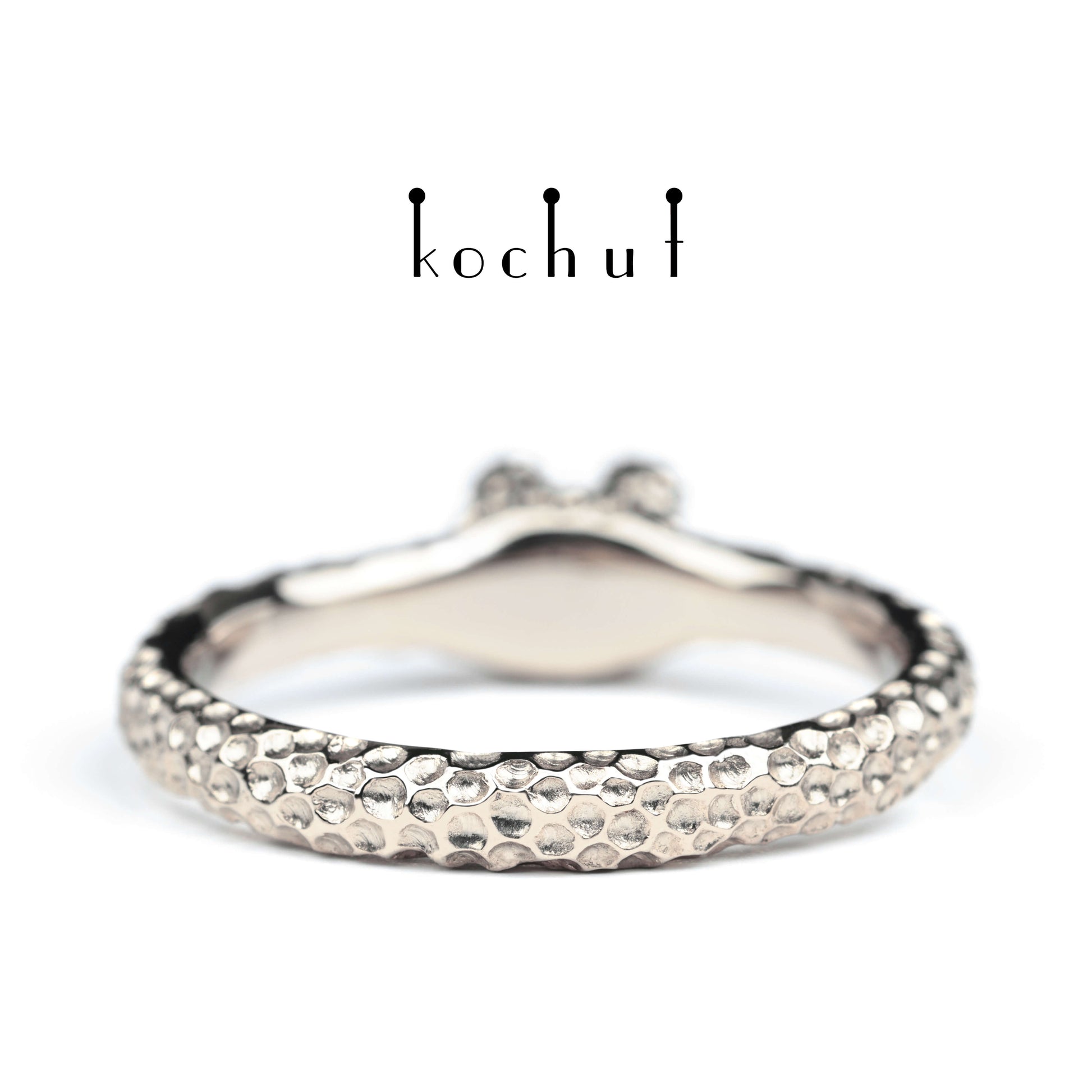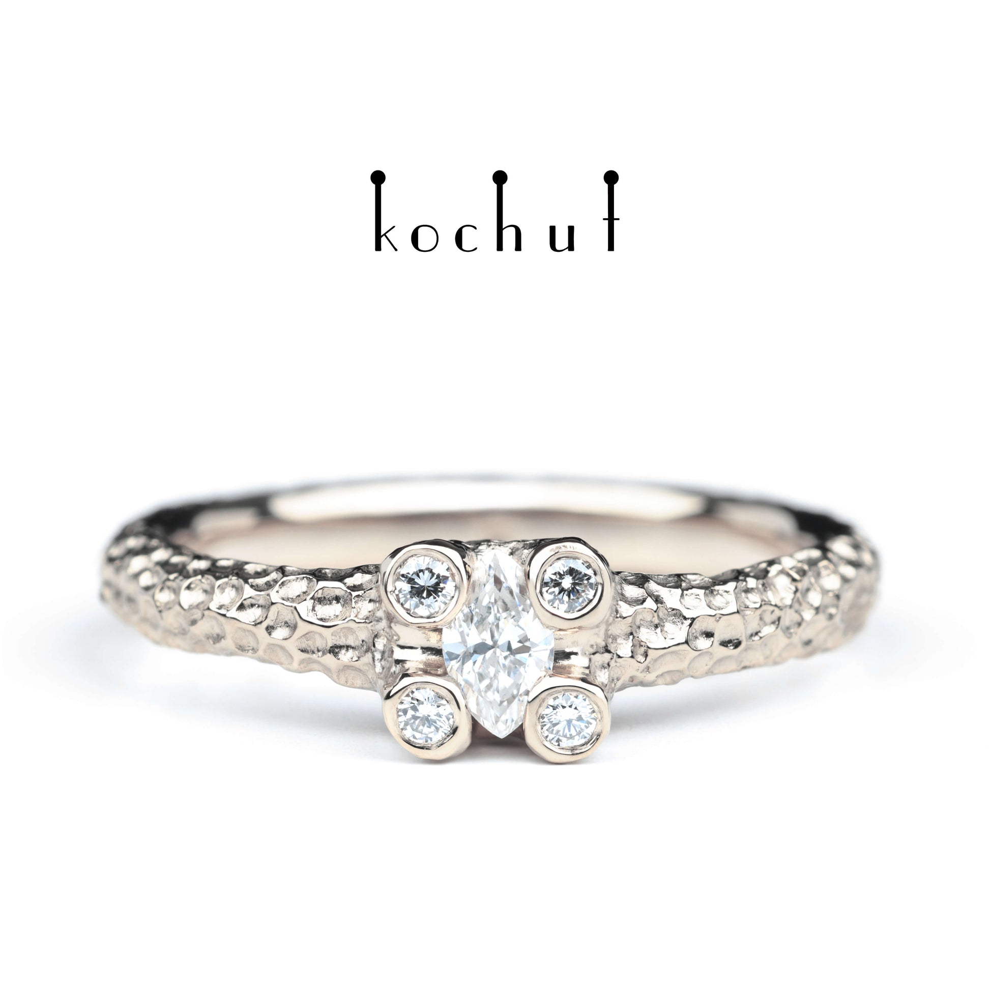 Wenn Sie in Ihren Manifestationen einzigartig sein möchten und dann auf eine unglaubliche Blume stoßen, die noch nie zuvor auf der Erde gesehen wurde. Der einzigartige 18-karätige Palladium-Gold und ein Diamant in einer nicht-standardmäßigen «Marquise»-Form schaffen ein atemberaubendes Bild vor Ihren Augen. Dieser Diamantschliff geht auf die Zeit Ludwigs XV. zurück. Es heißt, dass der französische König die Inspiration für Juweliere war, diese untypische Form zu kreieren. Er war so fasziniert von seiner Favoritin, der Marquise de Pompadour, dass er ihr einen Diamanten schenken wollte, der die bemerkenswerte Schönheit ihres Lächelns vermitteln konnte.
