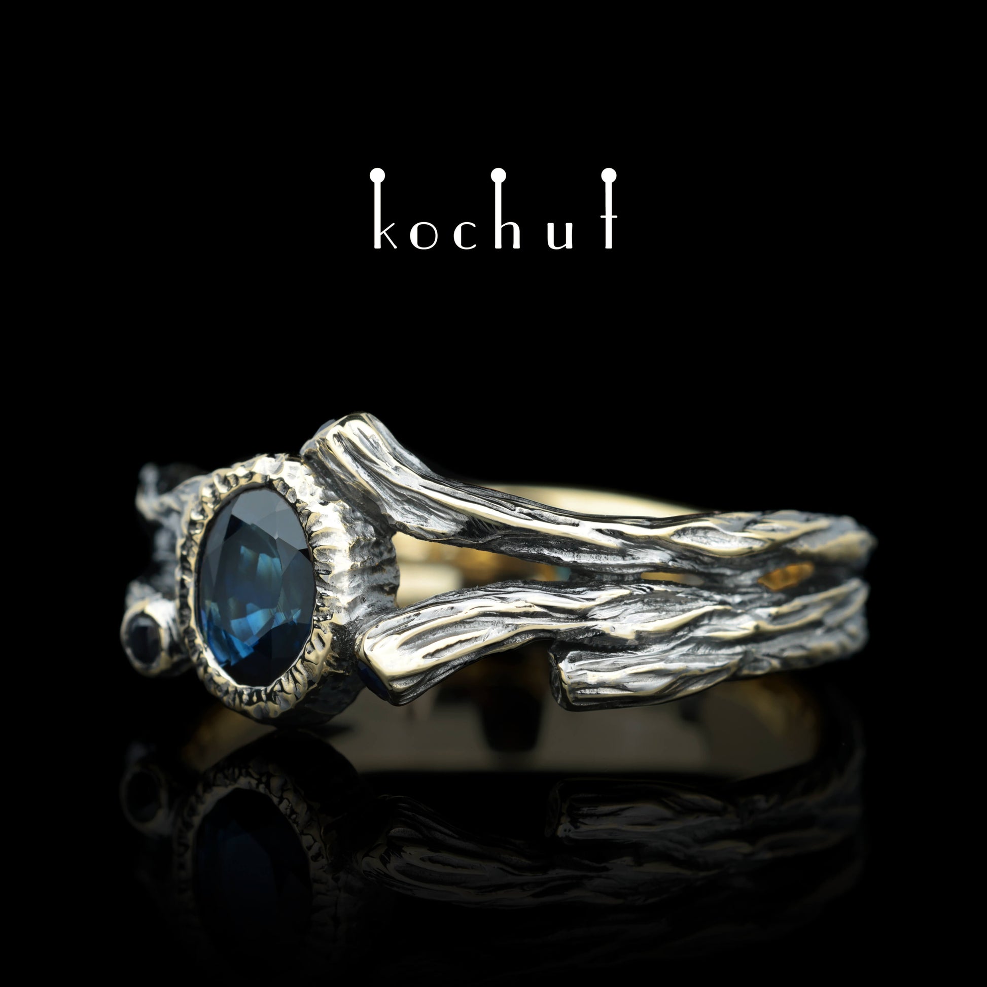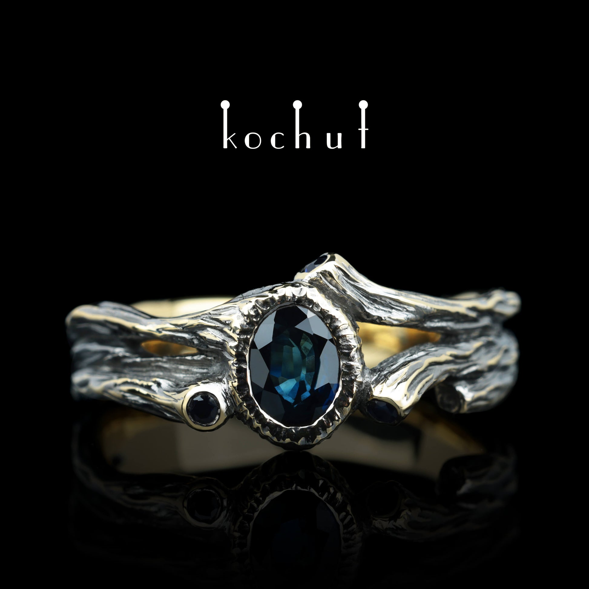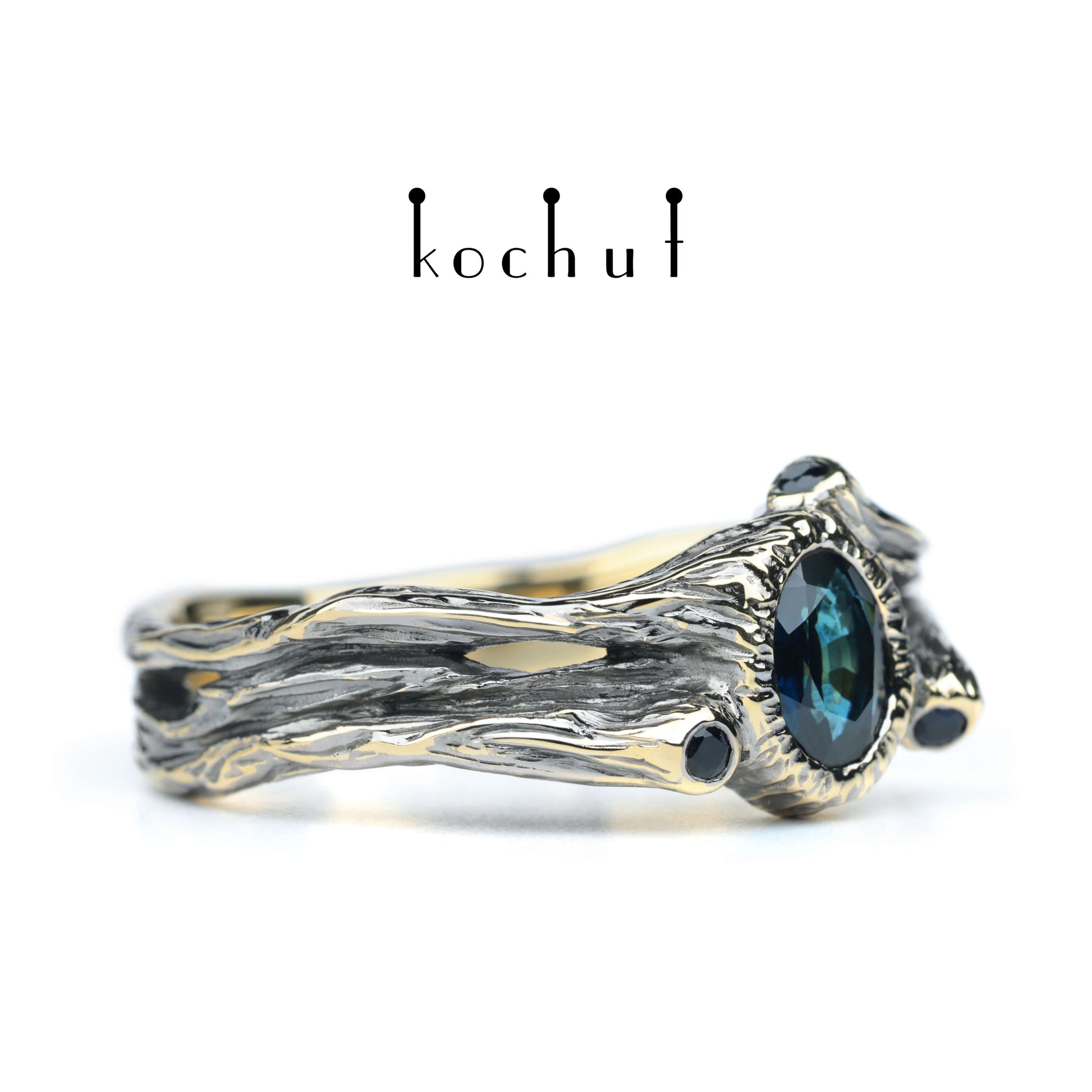 Süße Frucht — Ring aus Gelbgold mit Saphiren, überzogen mit schwarzem Rhodium