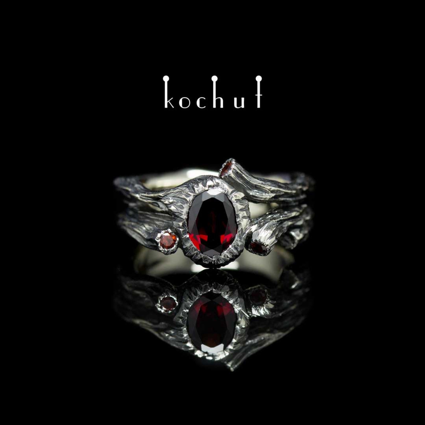 Süße Frucht — Ring aus Weißgold und roten Granaten, beschichtet mit schwarzem Rhodium