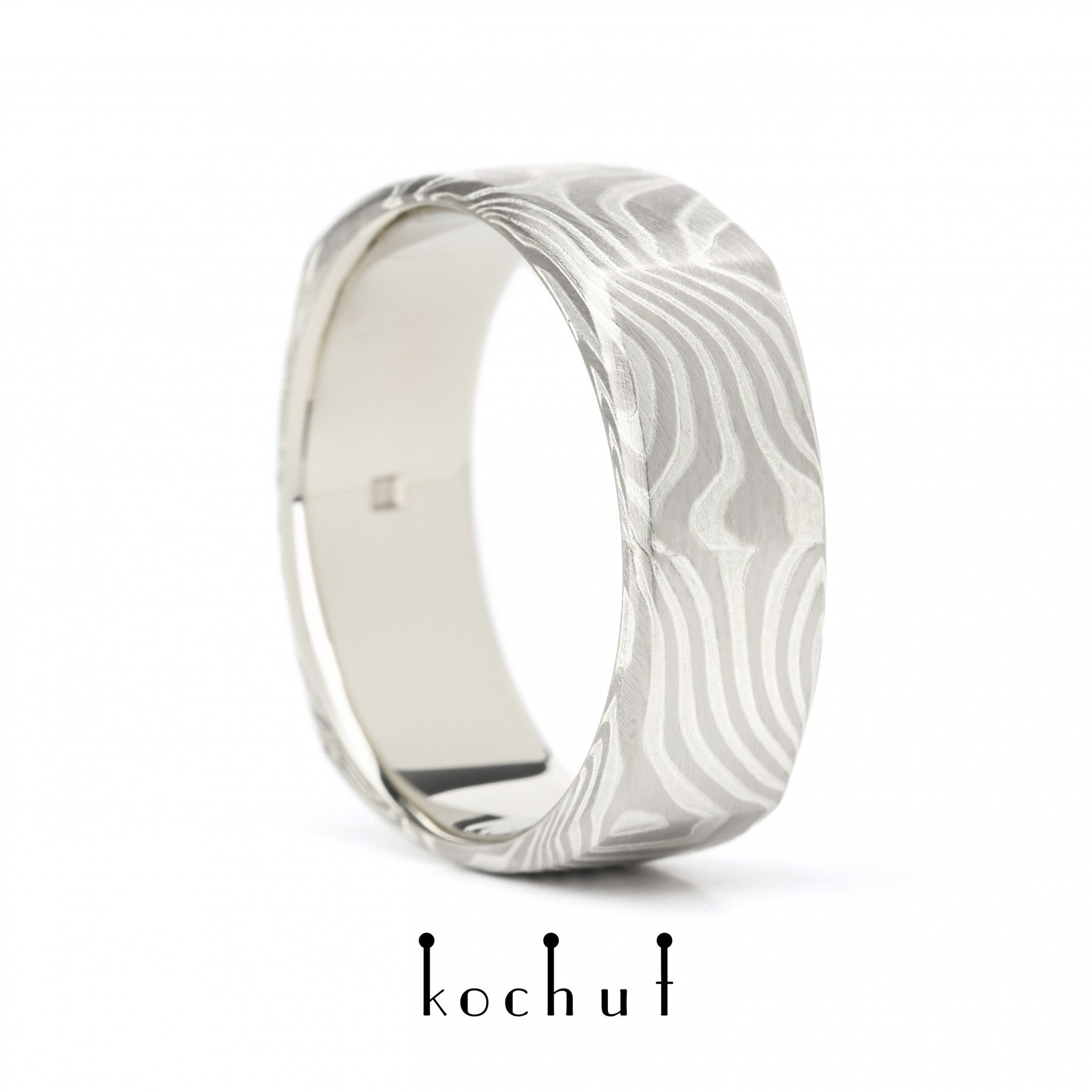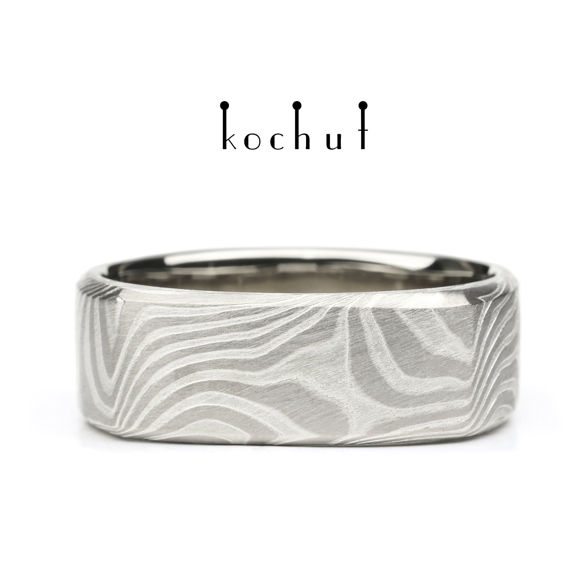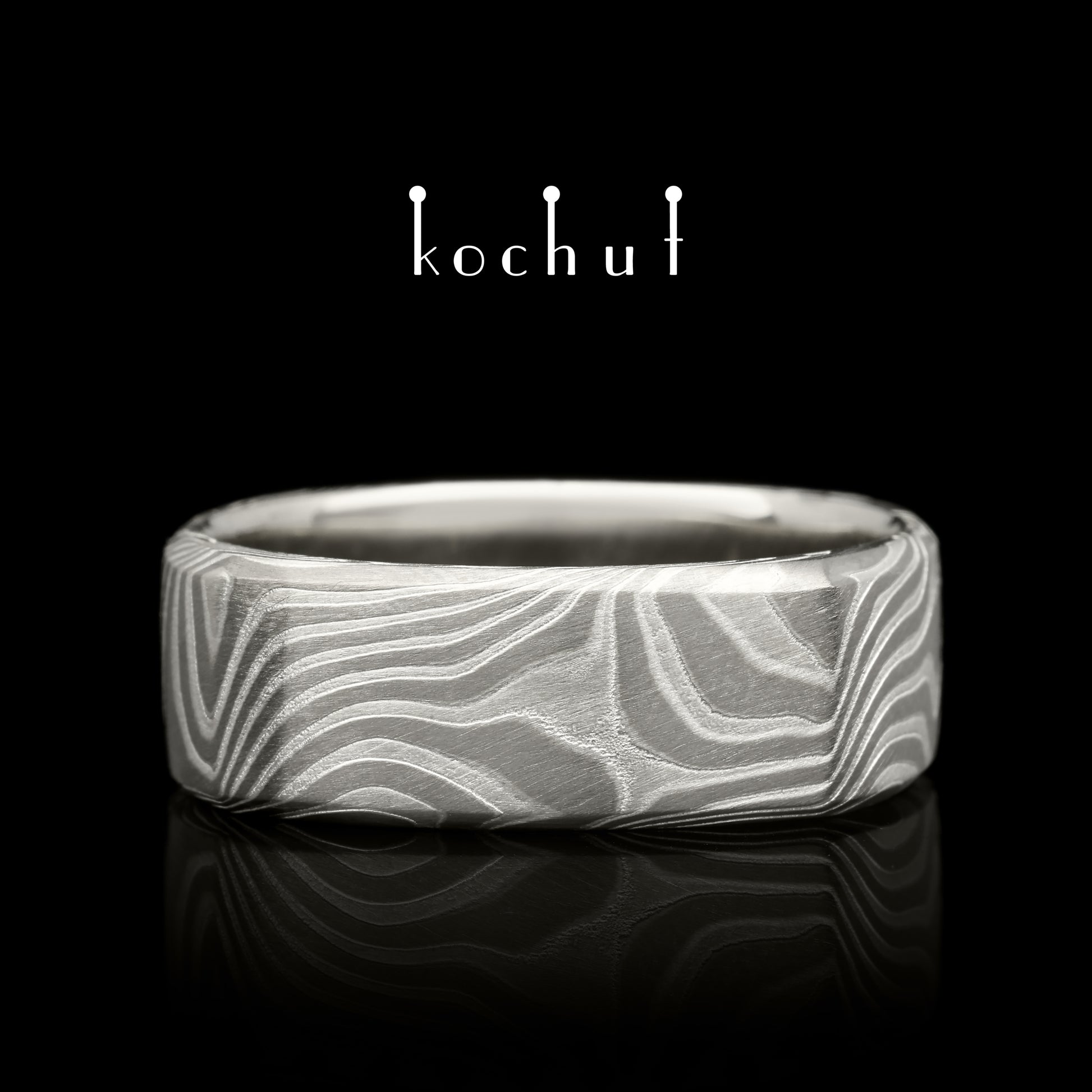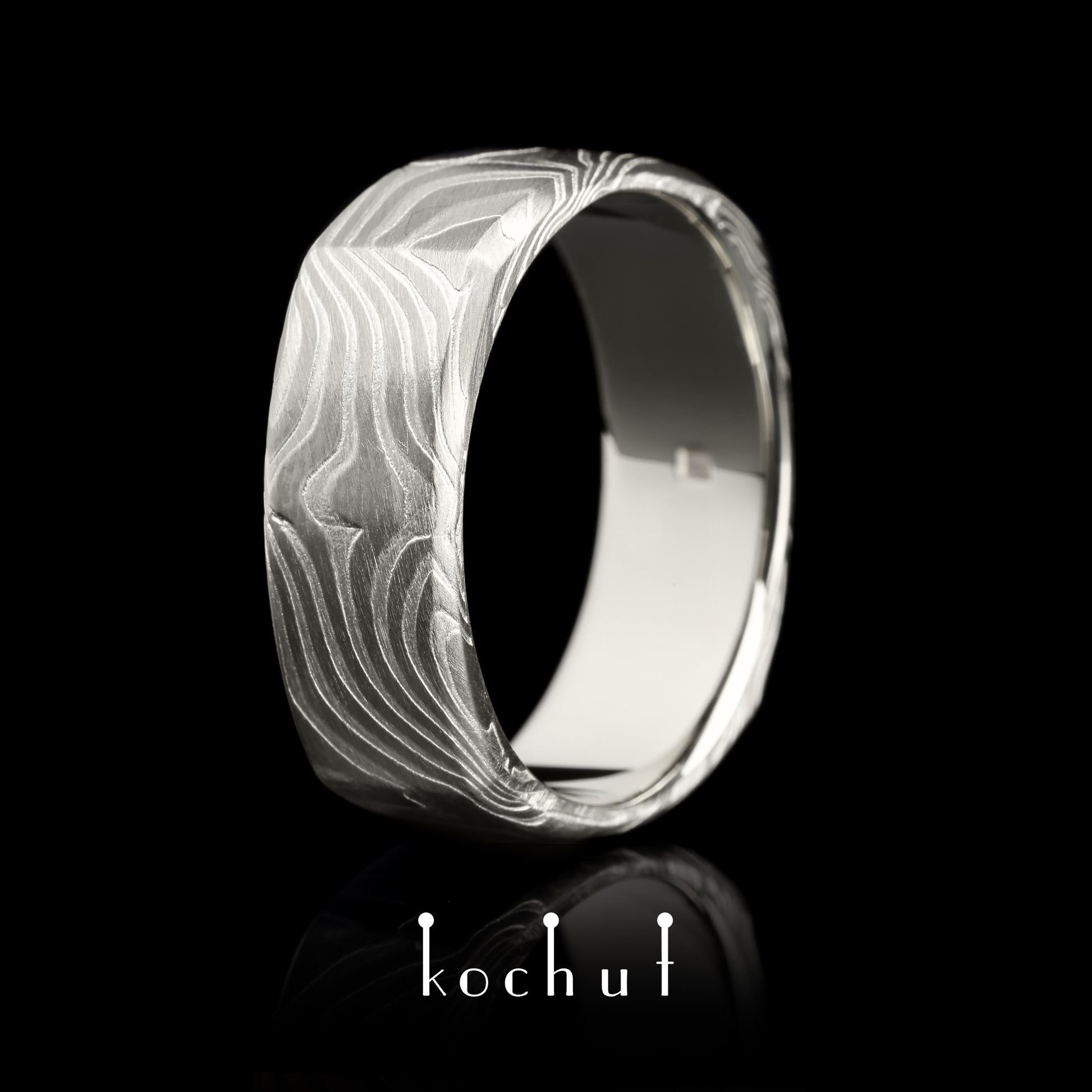 Tenno — Mokume-Ring aus Palladium-Gold, Weißgold und graviertem Silber