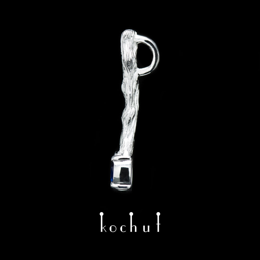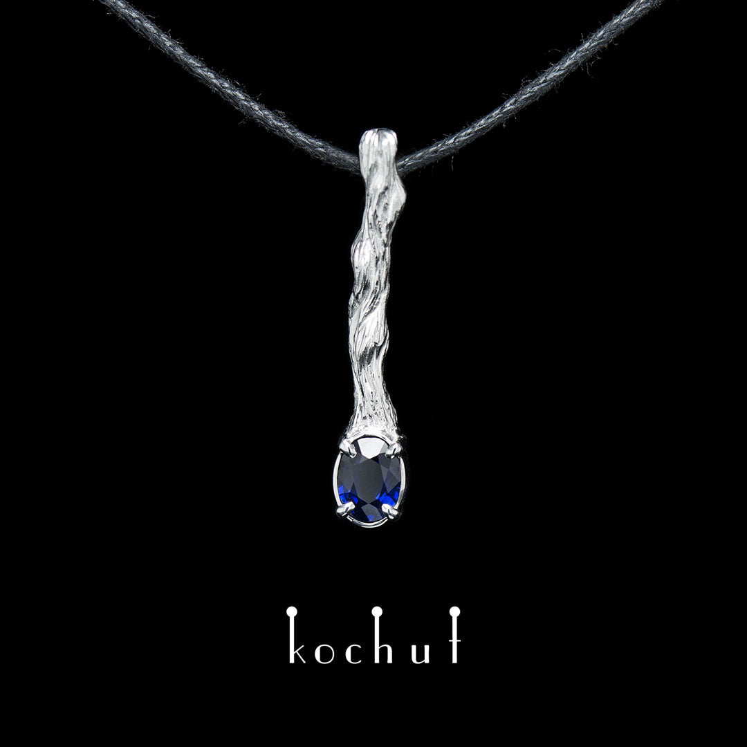 Zweig Fruit — Anhänger aus Weißgold und Saphir, überzogen mit weißem Rhodium