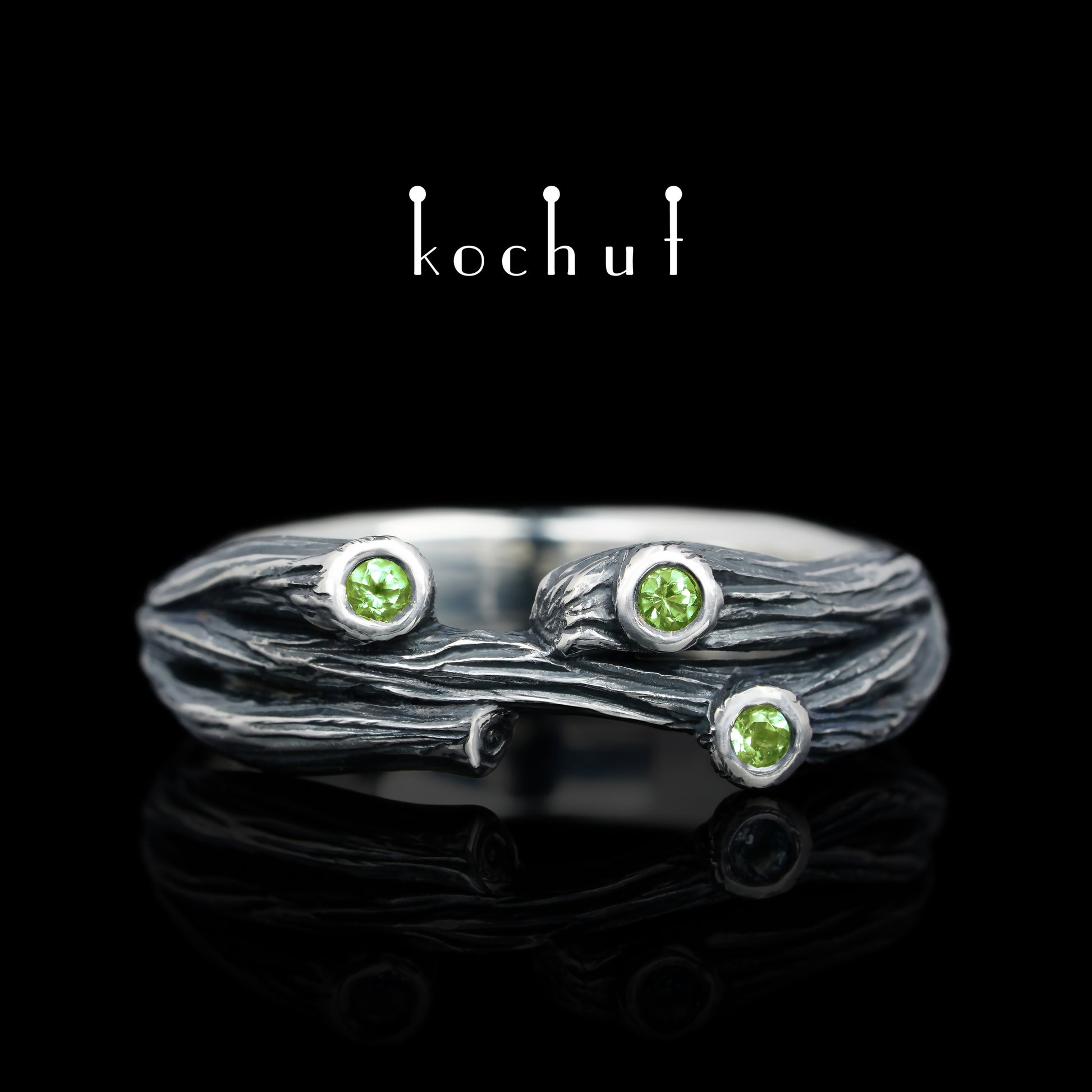 Zweig: Revival — Ring aus oxidiertem Silber mit Chrysolithen
