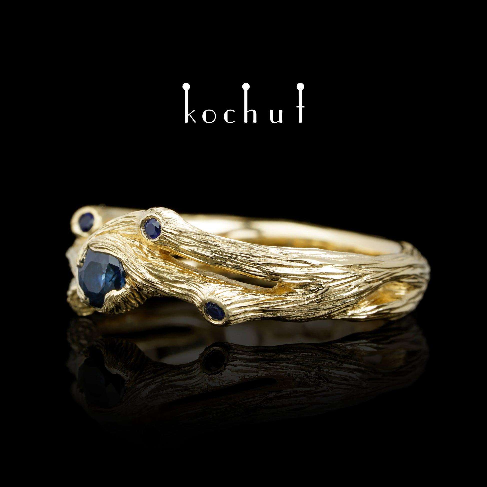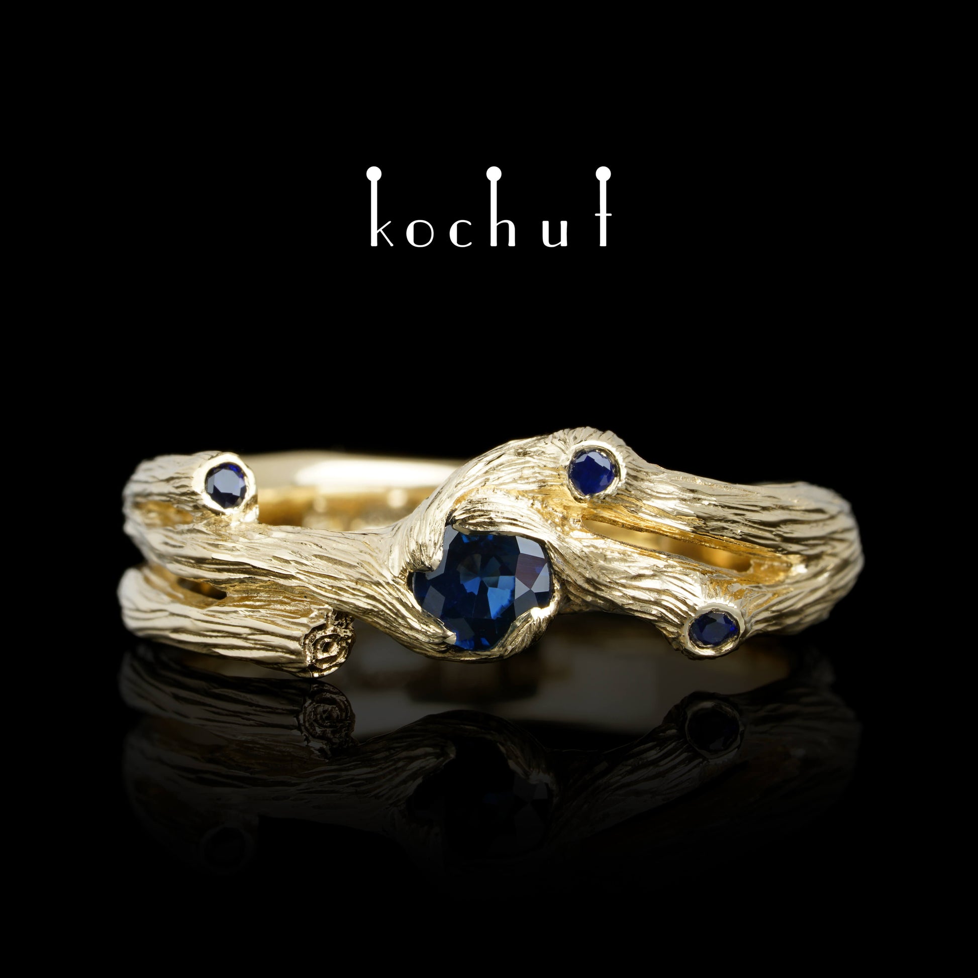 Zweig — Ring aus Gelbgold mit Saphiren