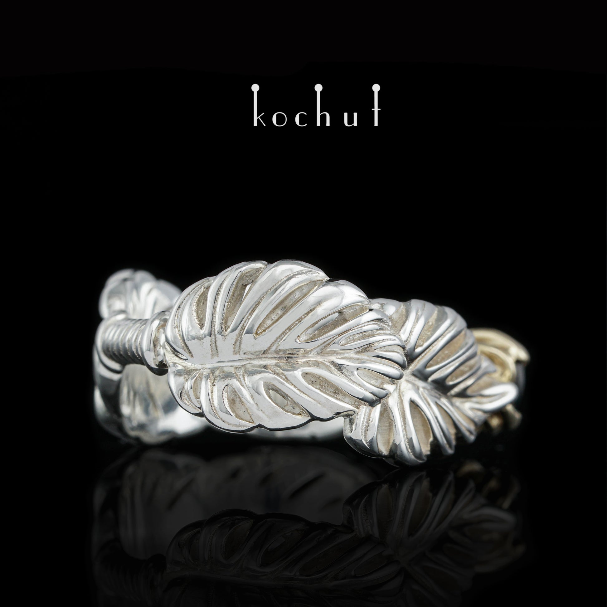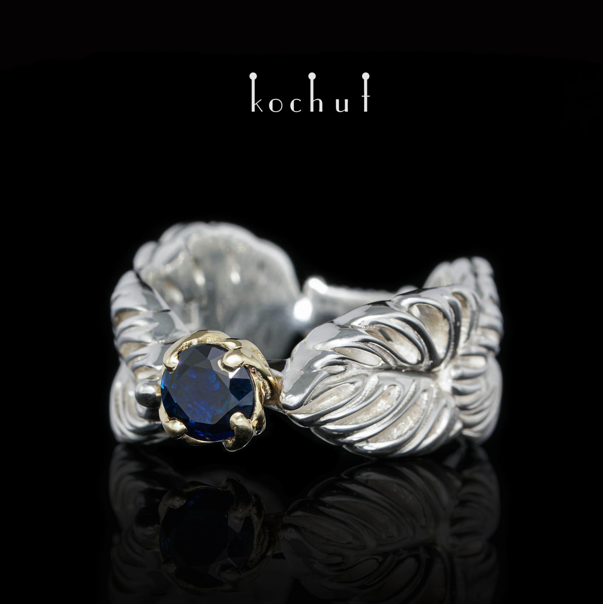 Umarmung der Liane — Ring aus Gelbgold und Silber mit Saphir