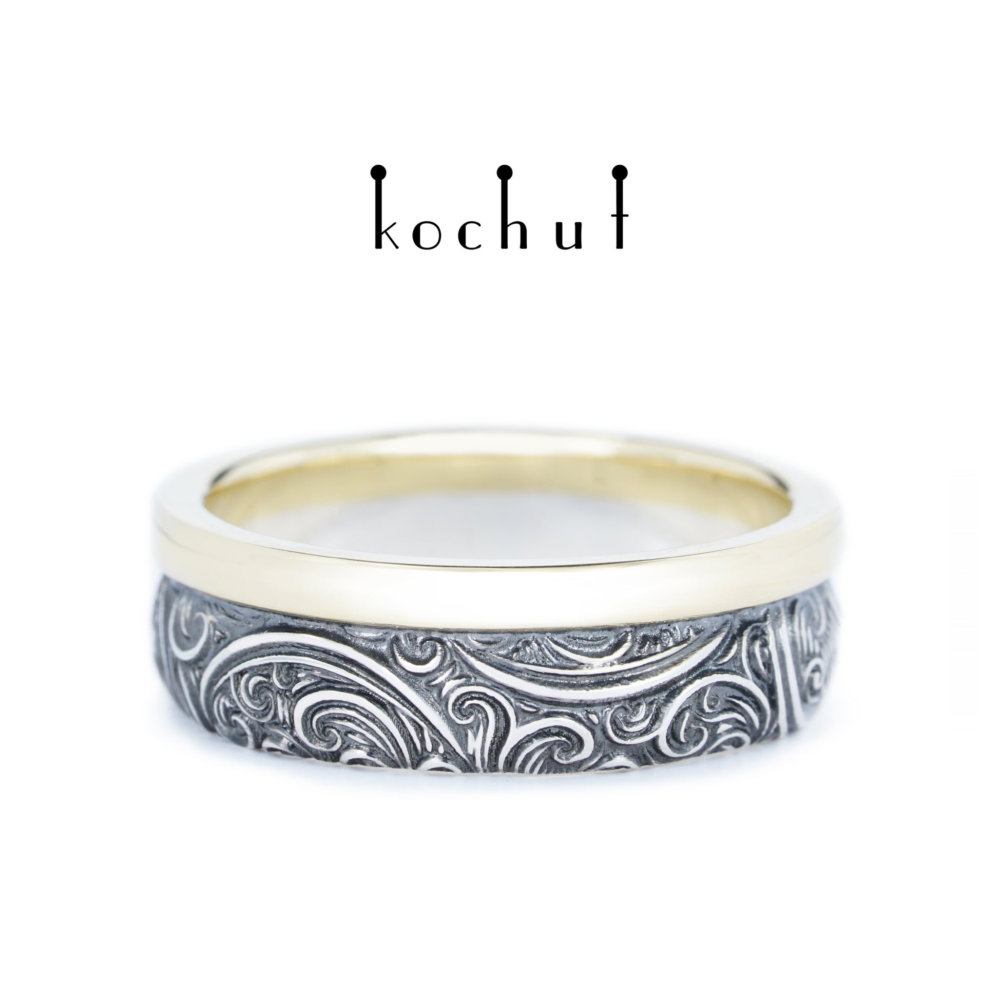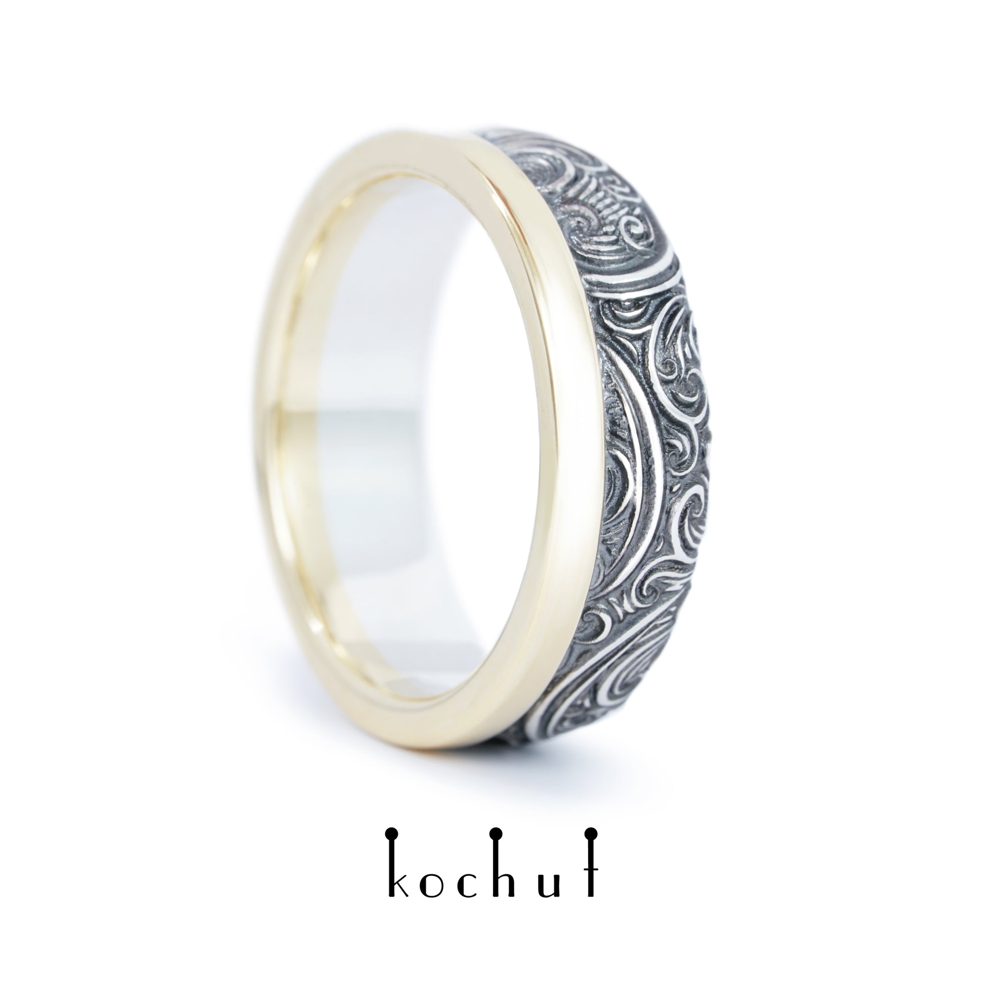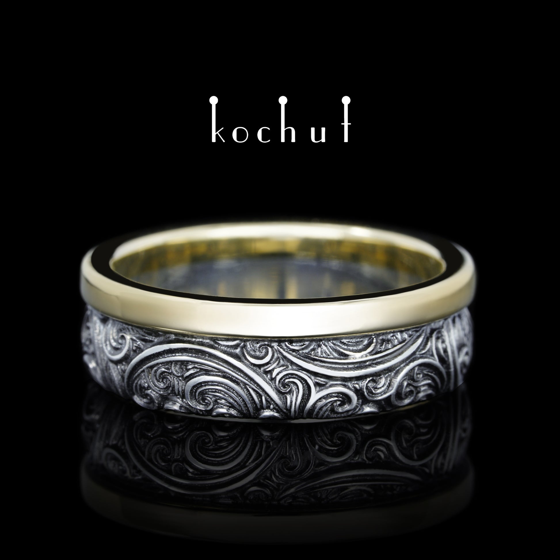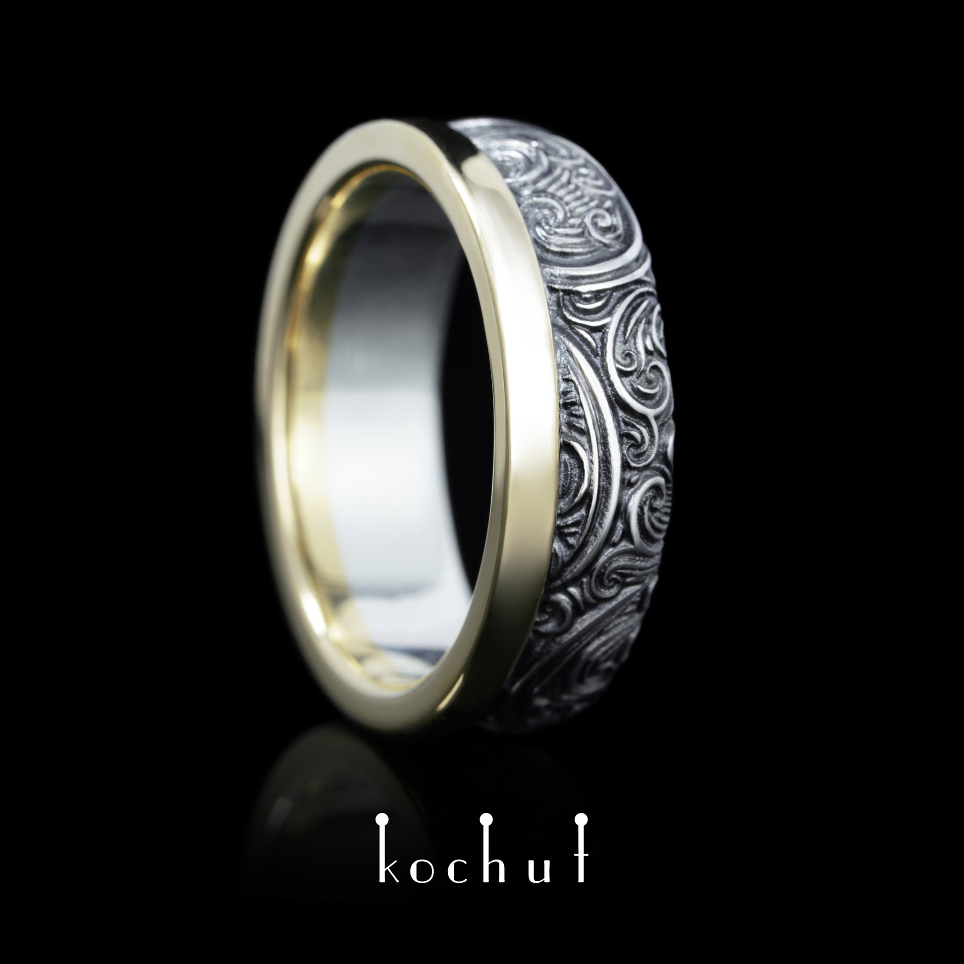 Unbesiegbarkeit der Gefühle— Ehering aus Silber, Gelbgold mit schwarzem Rhodium