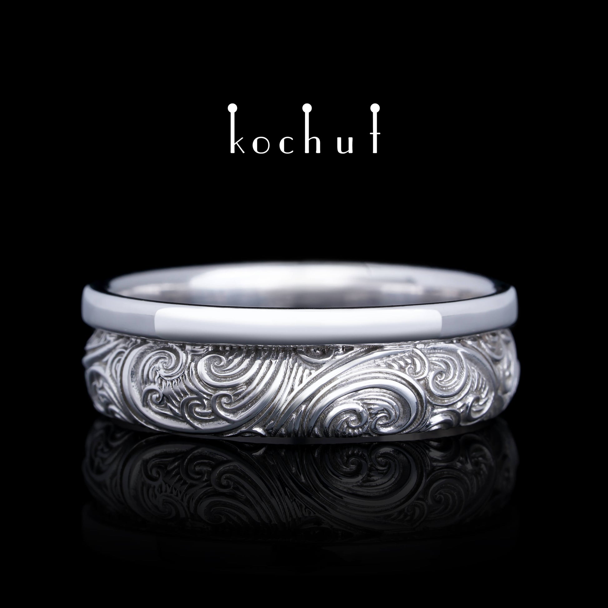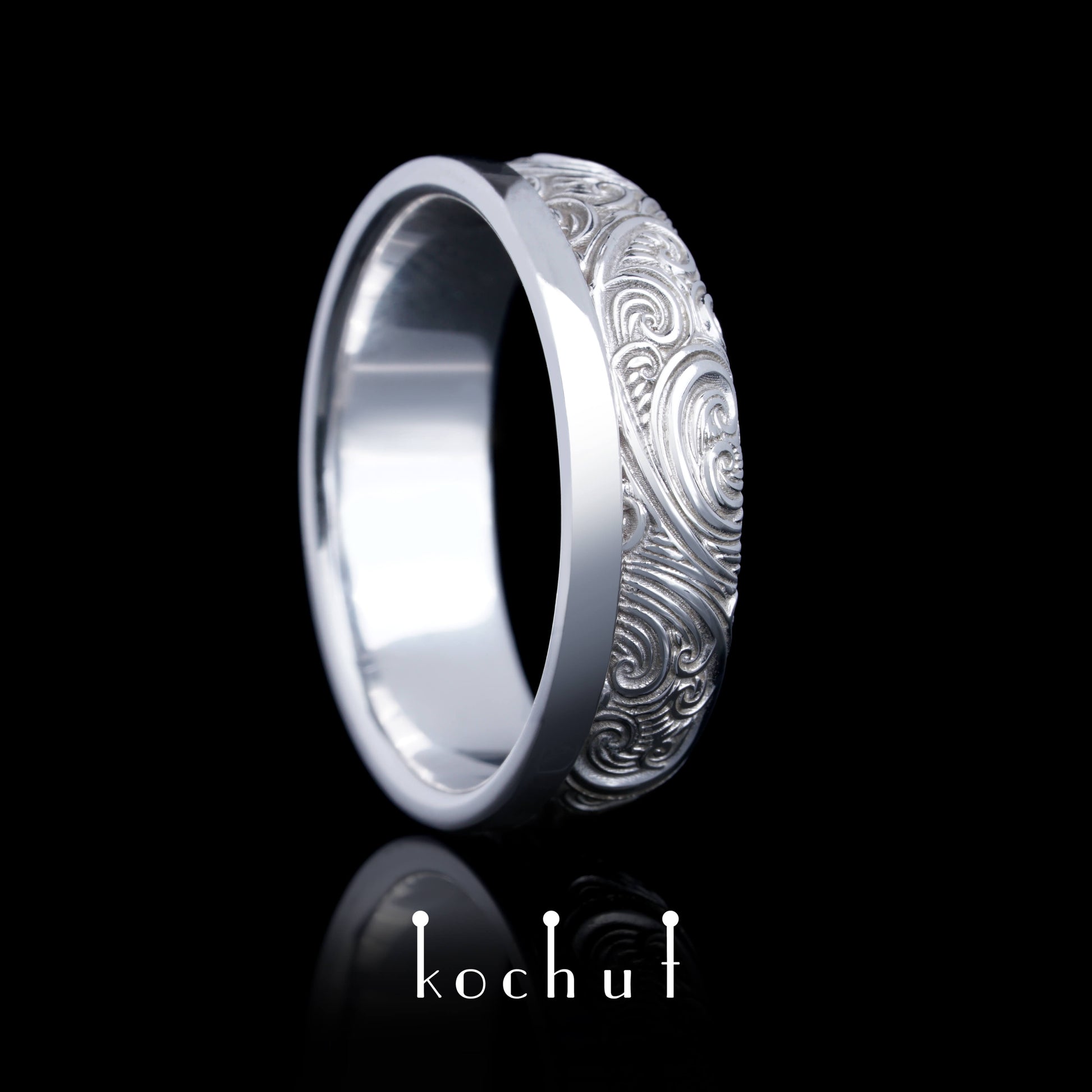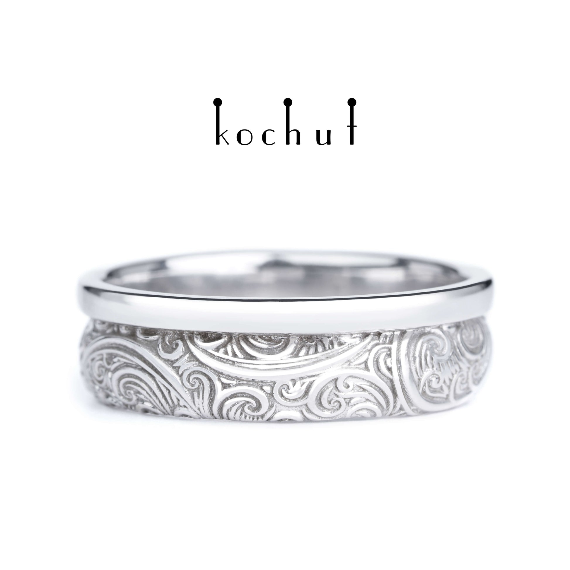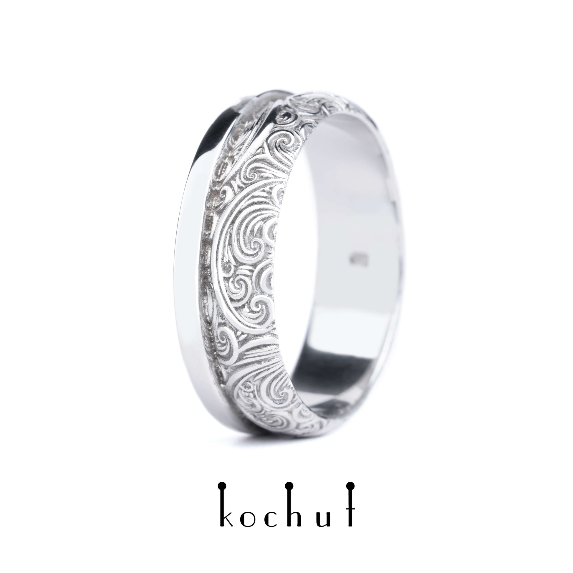 Unbesiegbarkeit der Gefühle — Ehering aus Weißgold, platiert mit weißem Rhodium