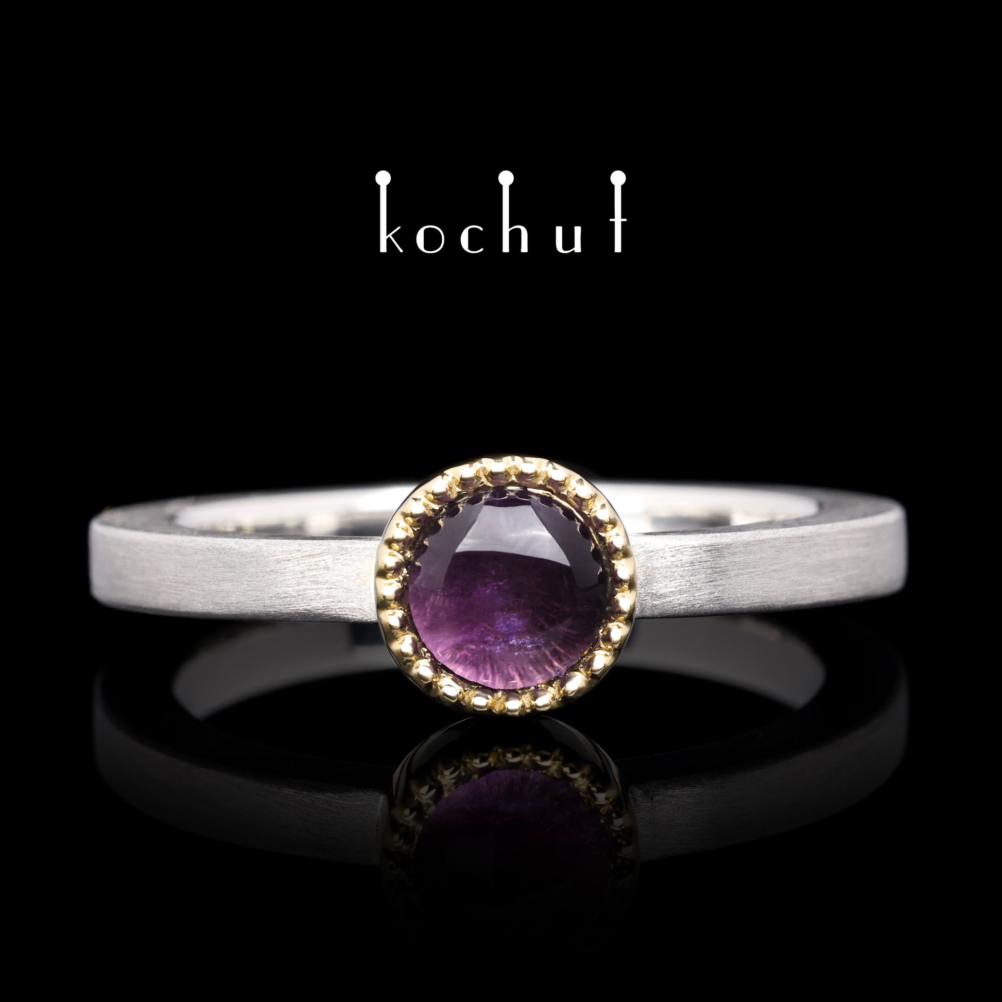 Venus — ein Ring aus Silber, Gelbgold und Amethyst